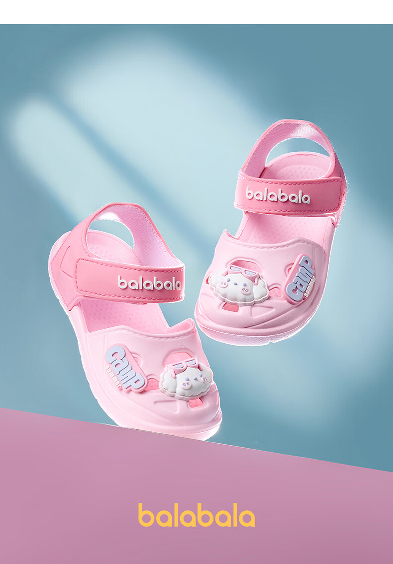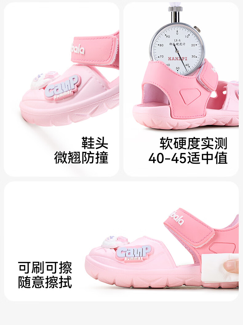 Balabala children's sandals, boys' summer toe-toe clogs, girls and children's wear-resistant beach shoes, soft-soled comfortable home shoes, pink 21, inner length 13cm, suitable for feet 12.5-13.2cm long