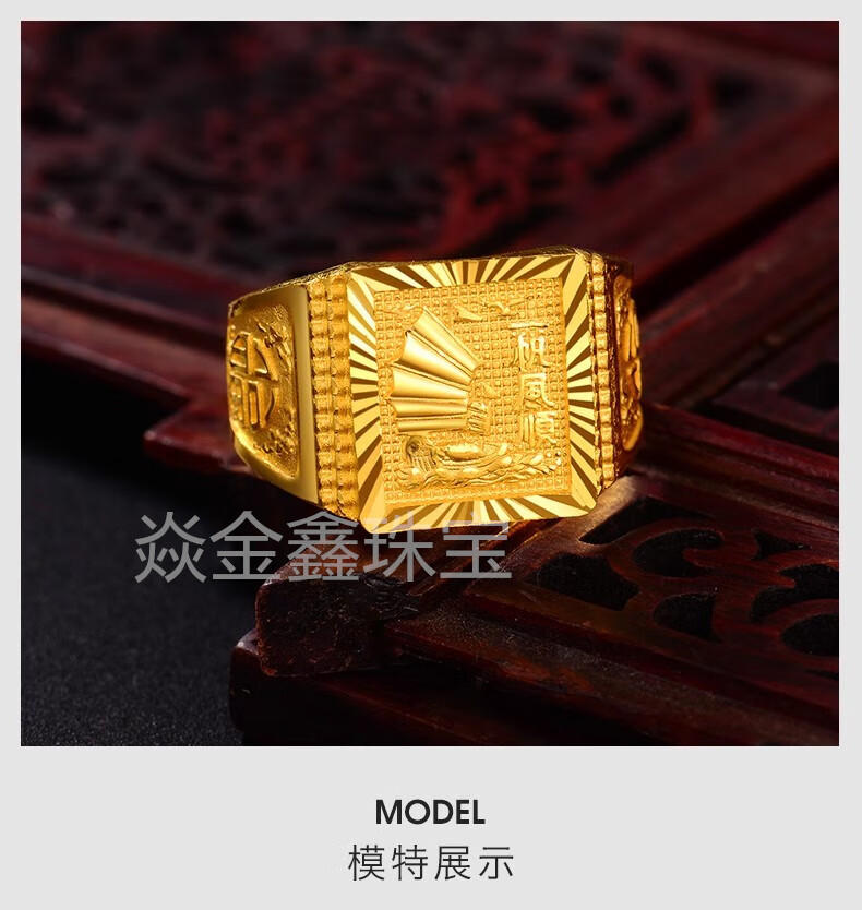 Yan Jinxin Gold Smooth Sailing Ring 999 Pure Gold Packed with Pure Silver, Attractive and Versatile Men's Adjustable Gold Packed Silver Ring for Gifts Smooth Sail Ring Ring Packed with 2 Grams of Gold