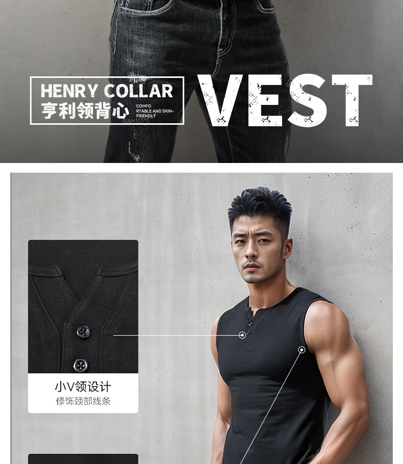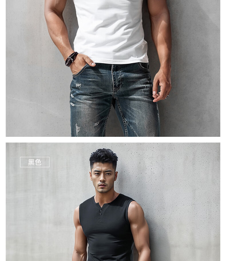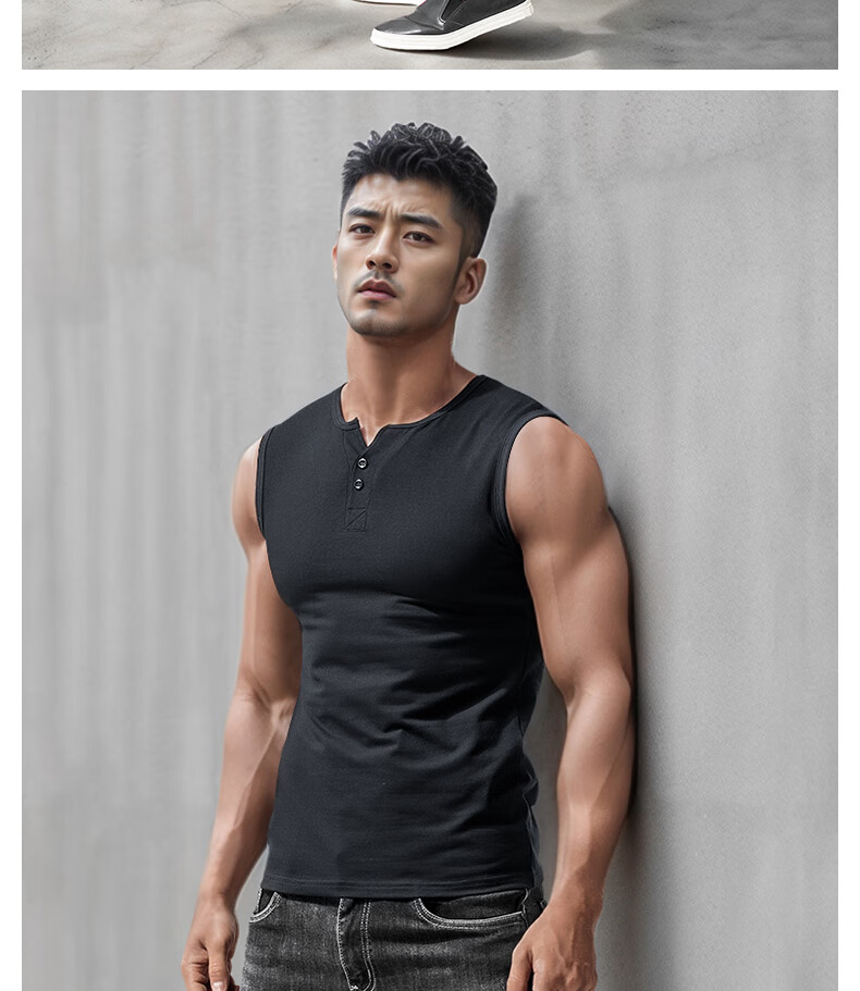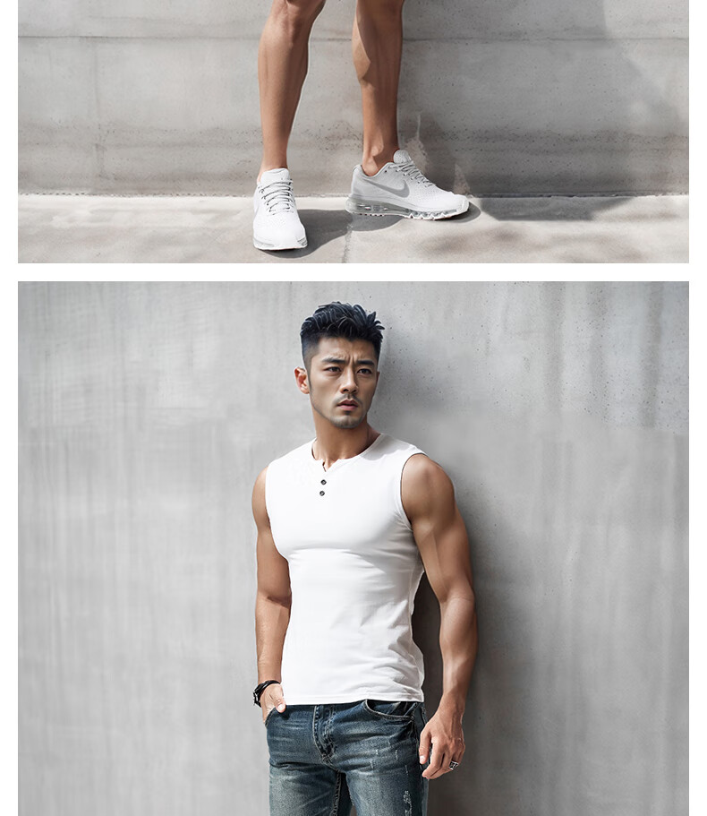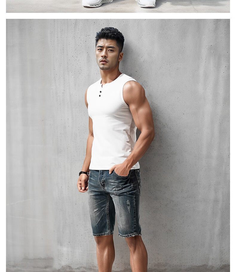 Enlightenment Henry collar sleeveless t-shirt men's broad shoulder vest solid color cotton bottoming tight slim sports waistcoat summer Henry shirt white M (100-125Jin Jin equals 0.5kg) slim