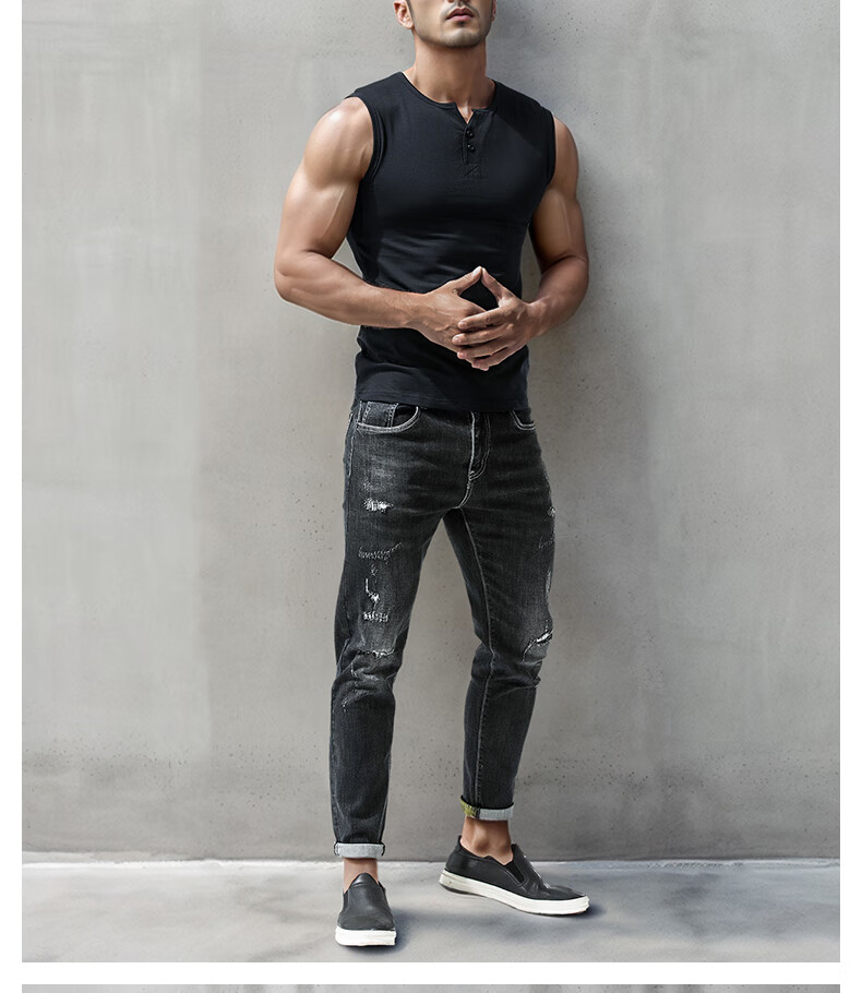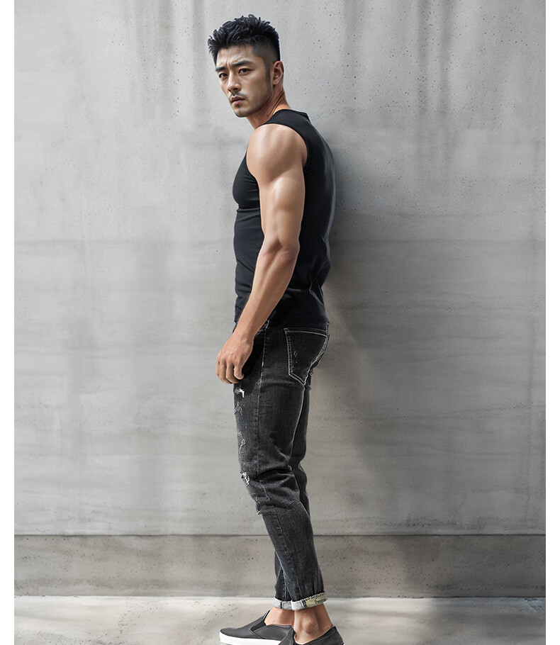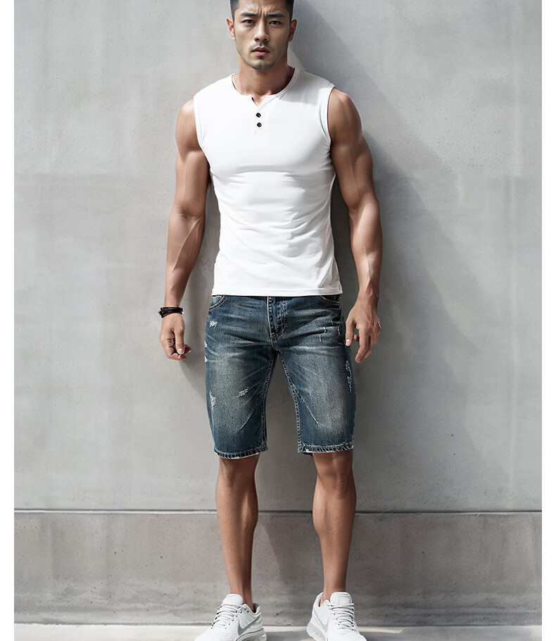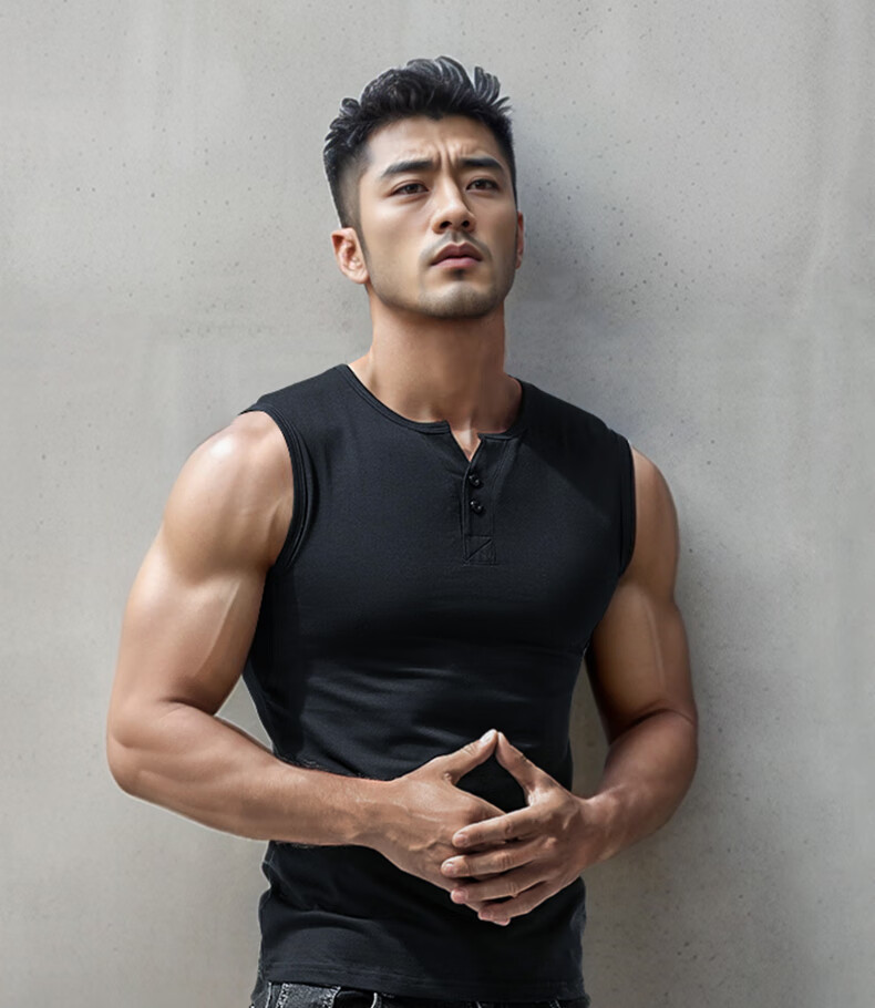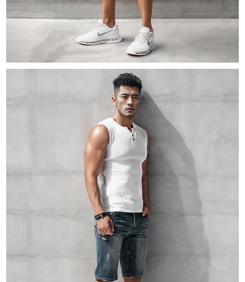 Enlightenment Henry collar sleeveless t-shirt men's broad shoulder vest solid color cotton bottoming tight slim sports waistcoat summer Henry shirt white M (100-125Jin Jin equals 0.5kg) slim
