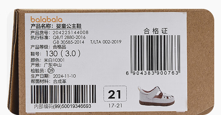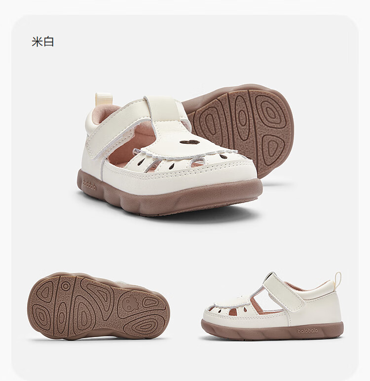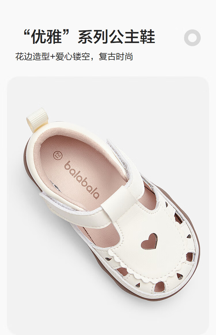 Balabala baby shoes non-slip girls princess shoes 2025 summer new shoes off-white 10301 17 170mm