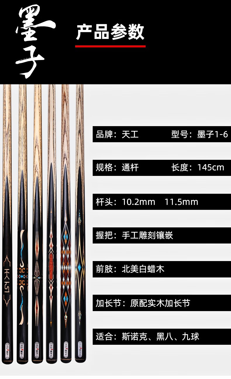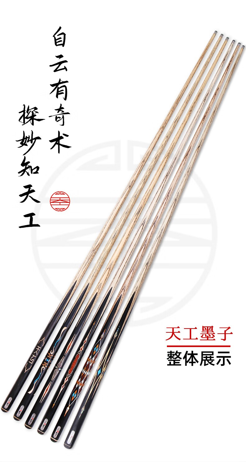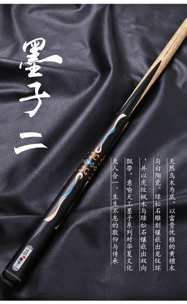 Hengyi Tiangong Mozi 12 12345 billiard cue small head commoner Chinese black 8-9 ball table cue one-piece solid wood paint-free Tiangong Mozi 1 original aluminum alloy pole box set