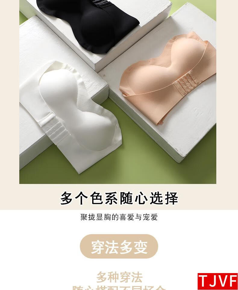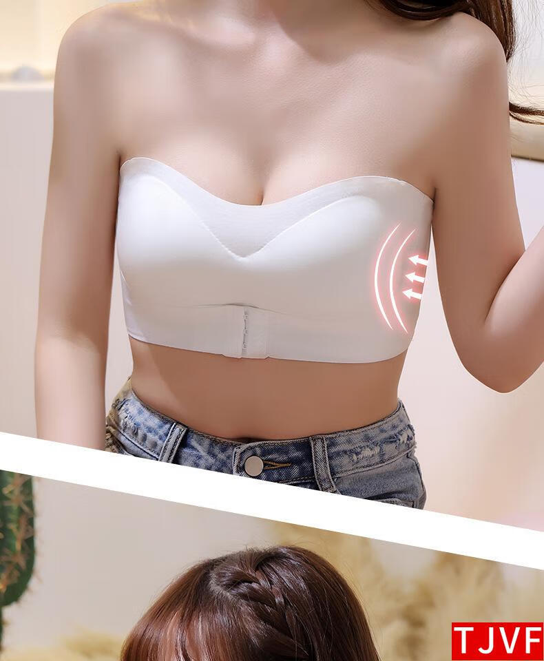 TJVF Large Size Strapless Underwear Women's Thin Large Breasts Show Small Gather Anti-Sagging Anti-Slip Bandeau Beautiful Back Bra Summer White XL 125-140Jin Jin equals 0.5 kg 883