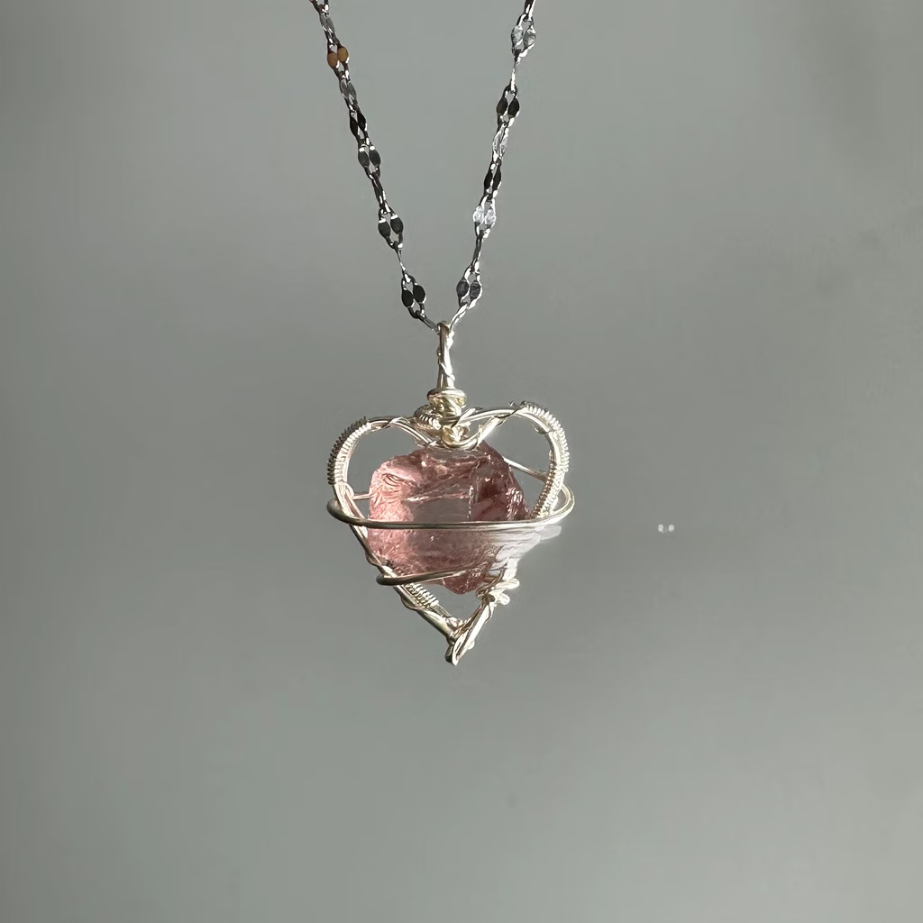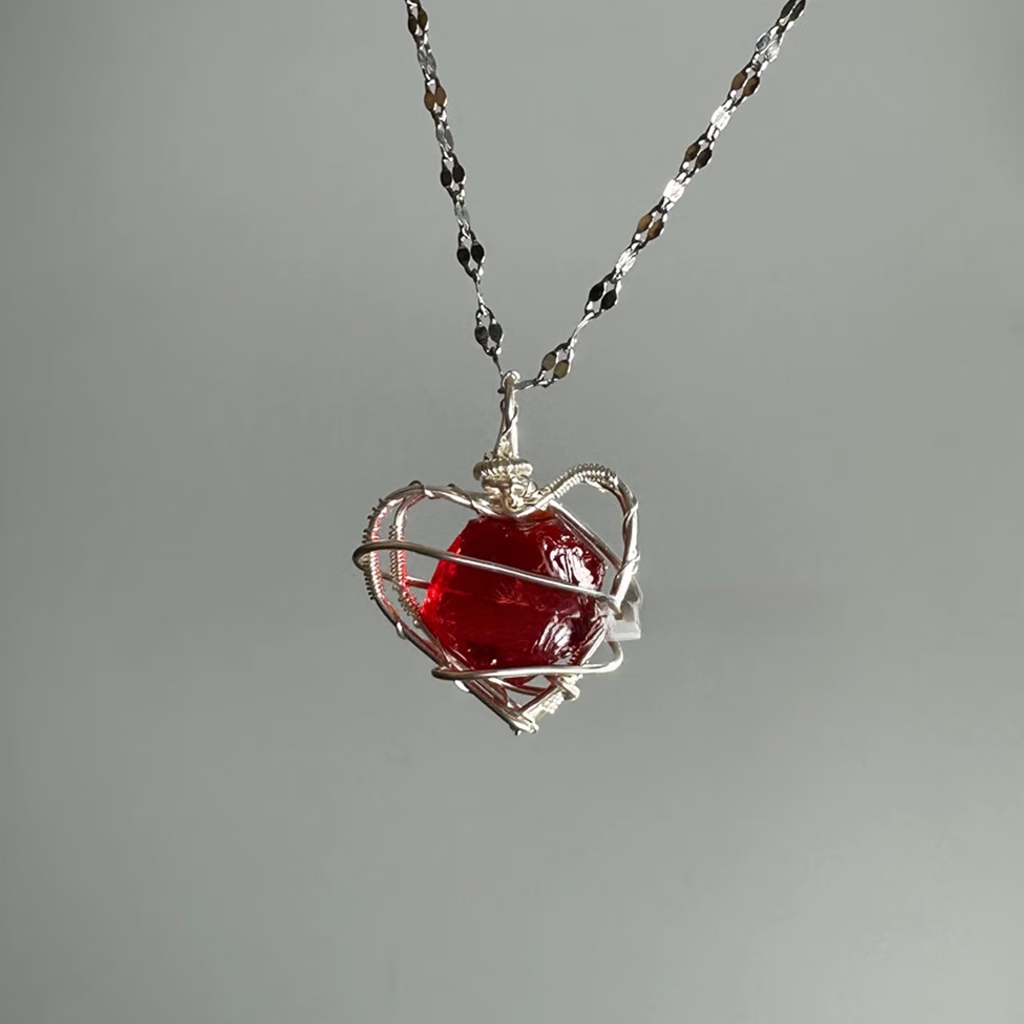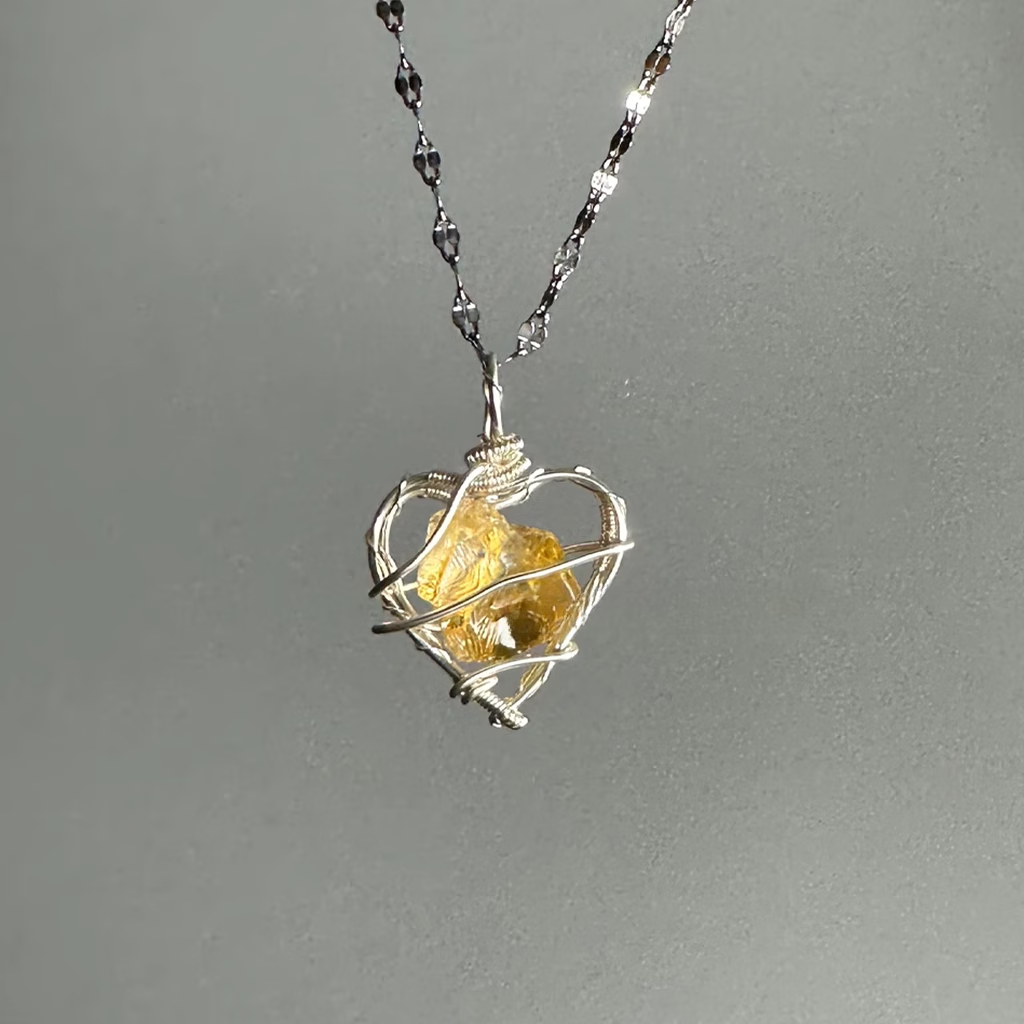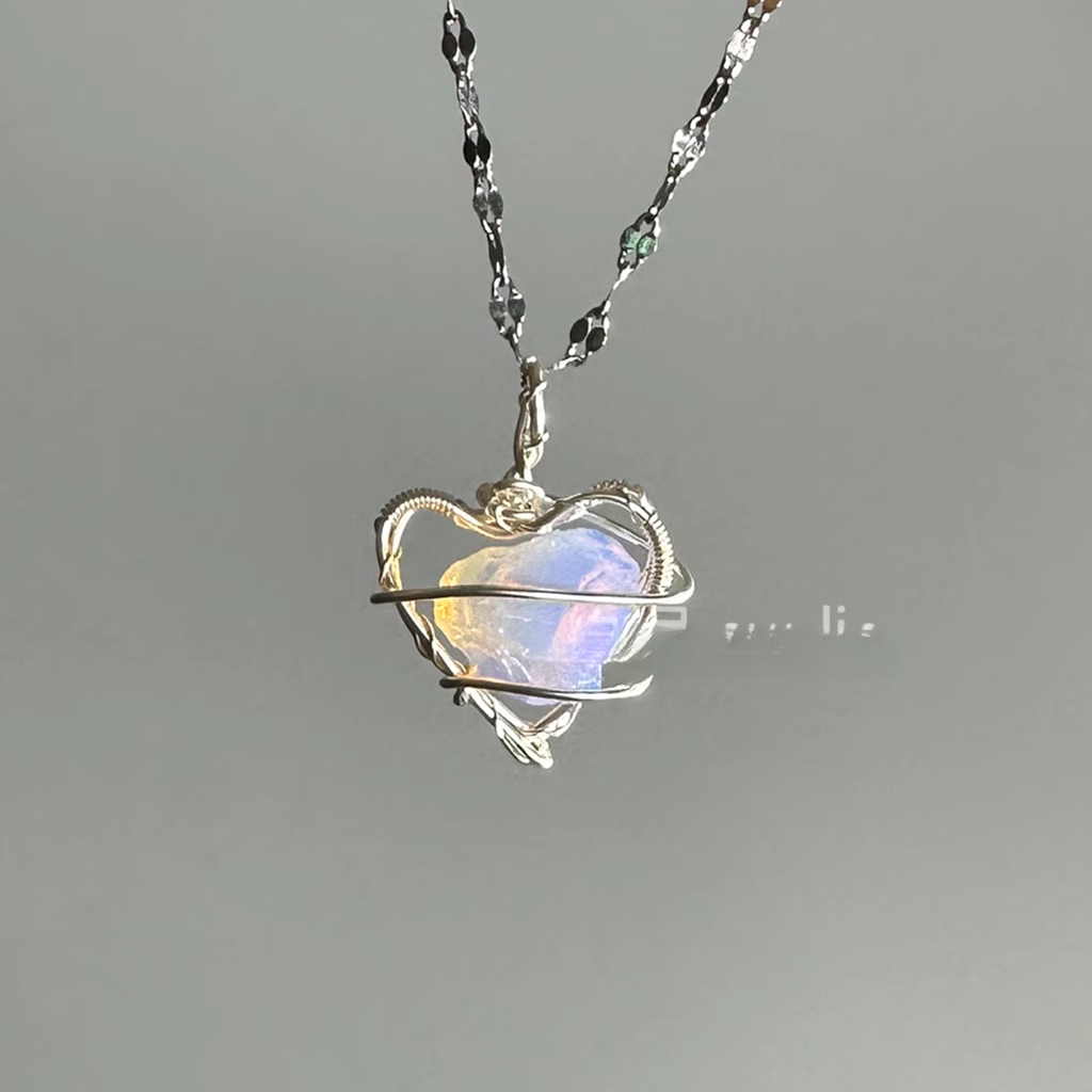 Aquamarine Pendant Daytime Original Design Raw Stone Love Necklace Female Niche Clavicle Chain Handmade Heart Shaped Aquamarine (+ Chain)