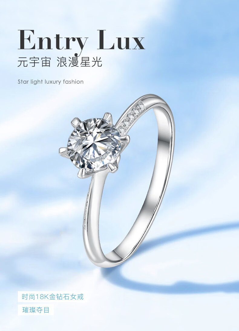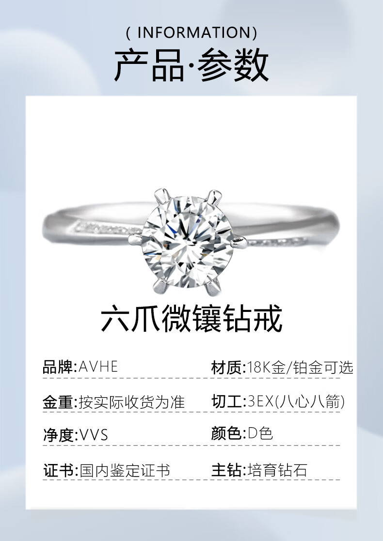 AVHE white 18k gold diamond ring laboratory-certified cultured diamond ring 1 carat six-claw wedding gift Chinese Valentine's Day customized platinum-1 carat cultured diamond D/VVS/3EX-IGI