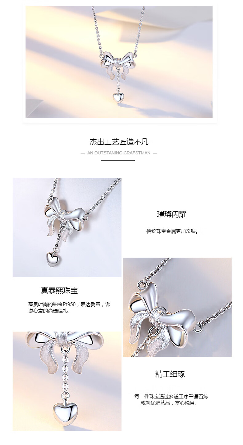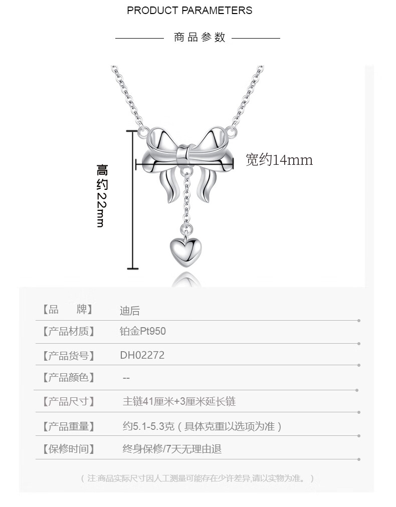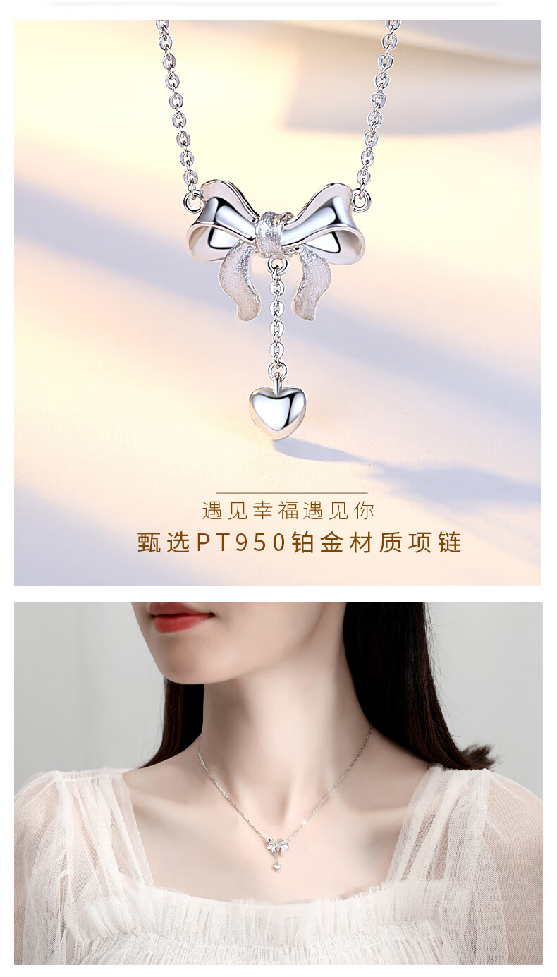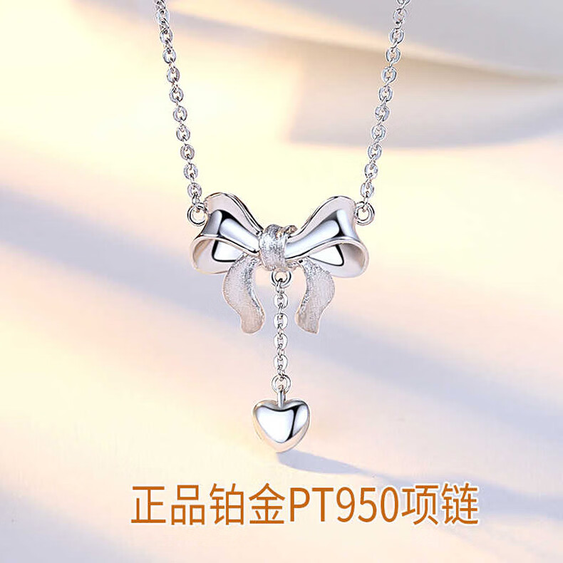 Dihou PT950 platinum bow clavicle necklace for girls platinum fugitive princess light luxury niche gift to girlfriend and wife PT950 platinum bow necklace for women - free engraving