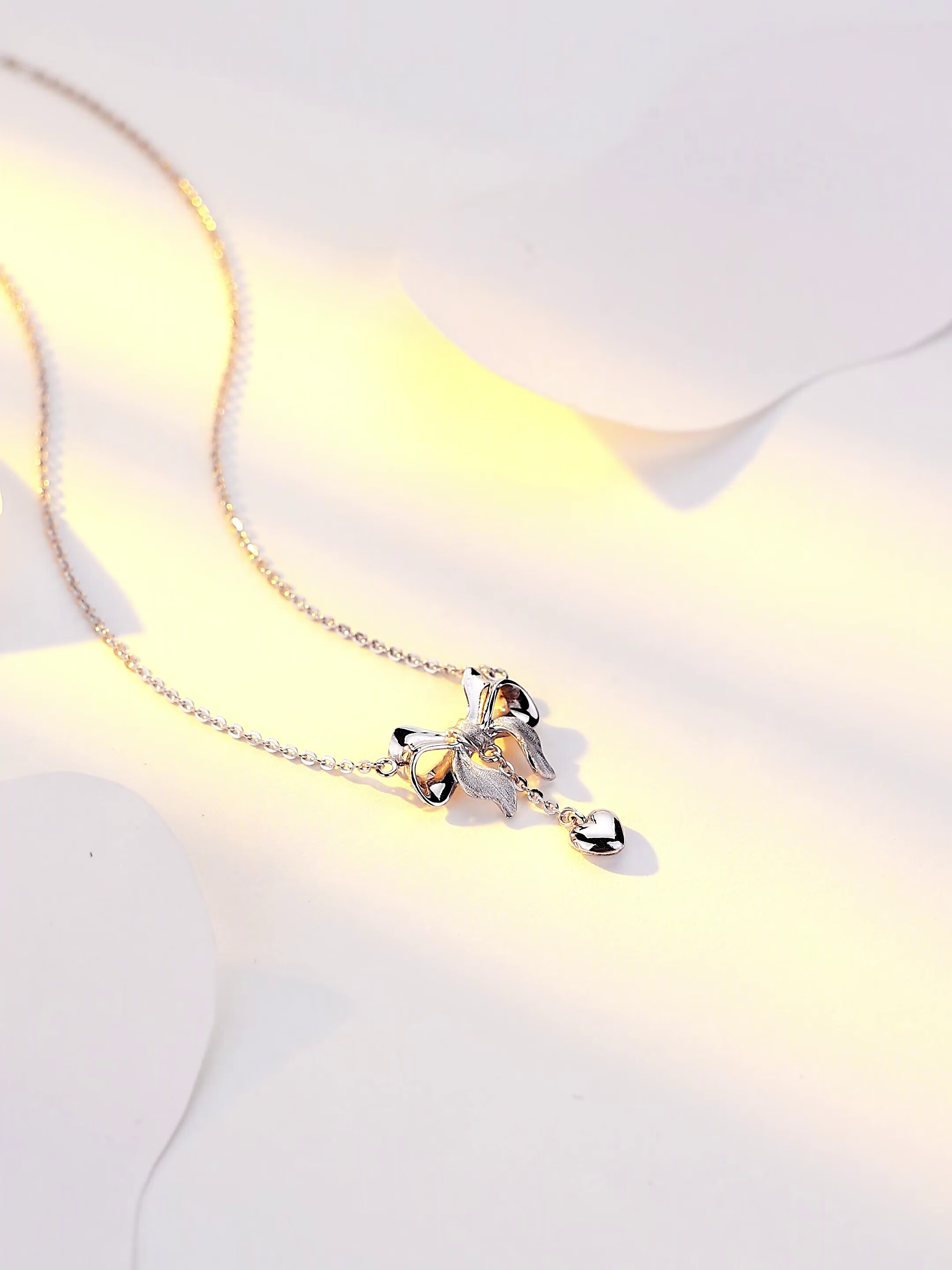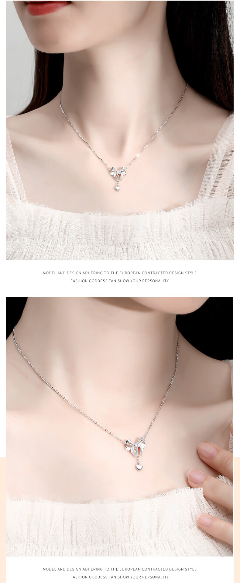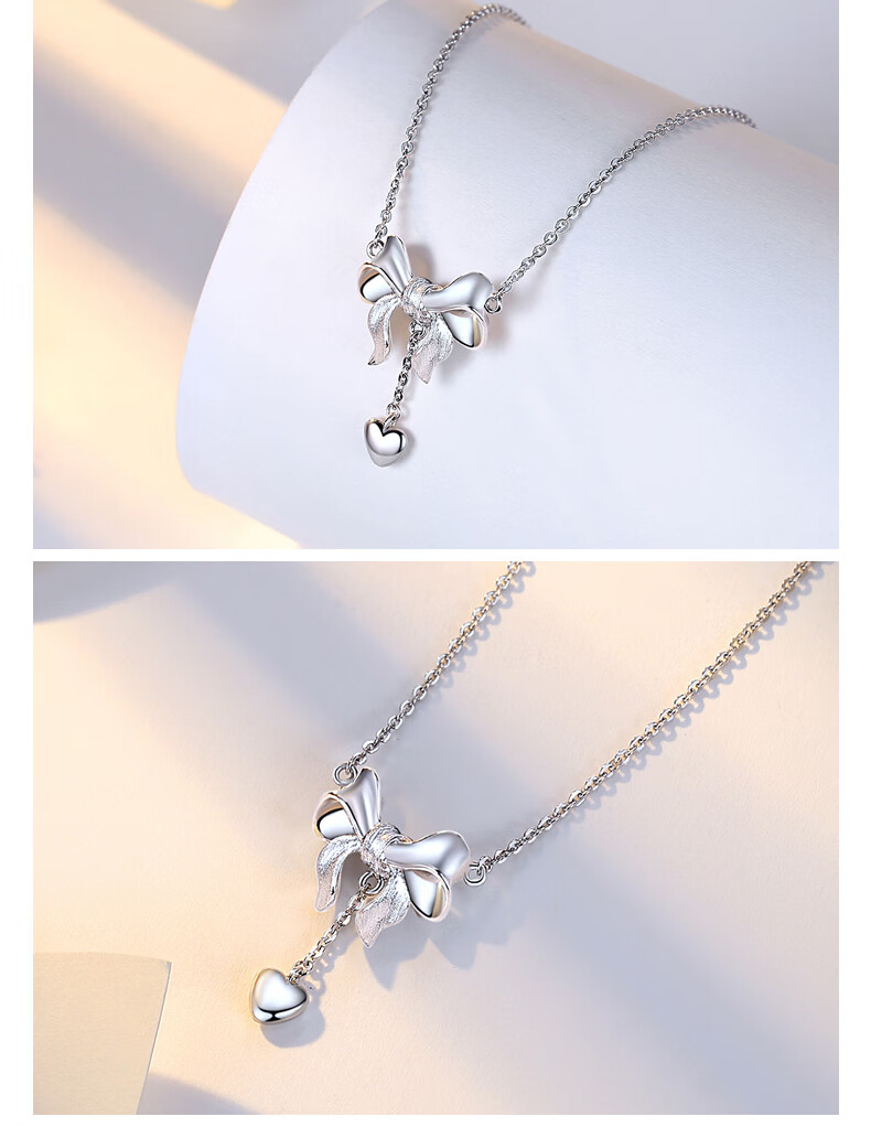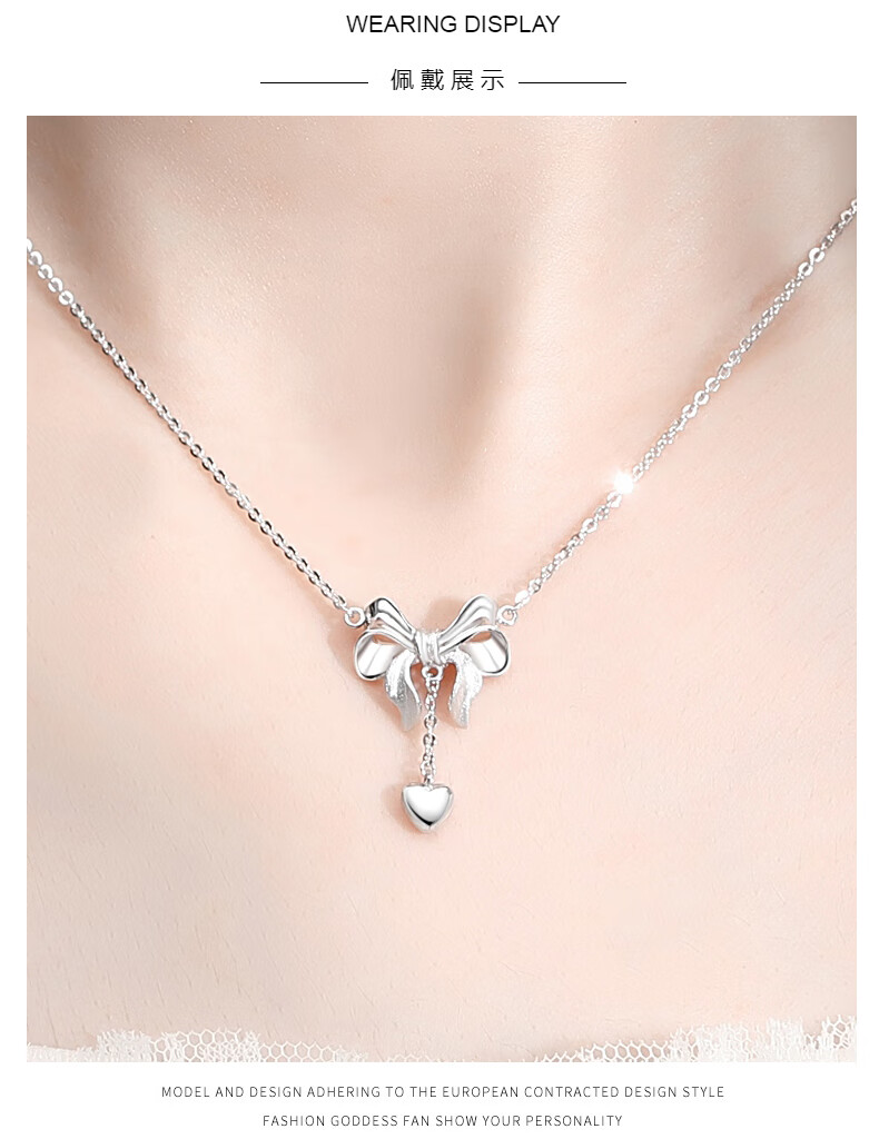 Dihou PT950 platinum bow clavicle necklace for girls platinum fugitive princess light luxury niche gift to girlfriend and wife PT950 platinum bow necklace for women - free engraving