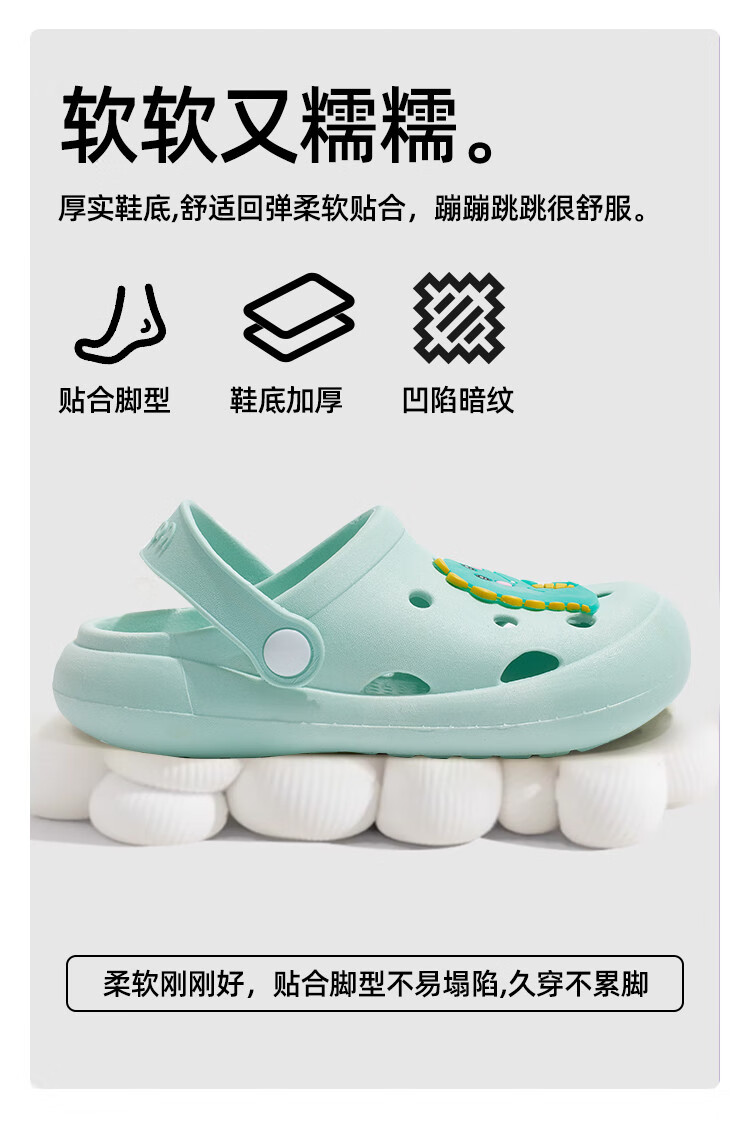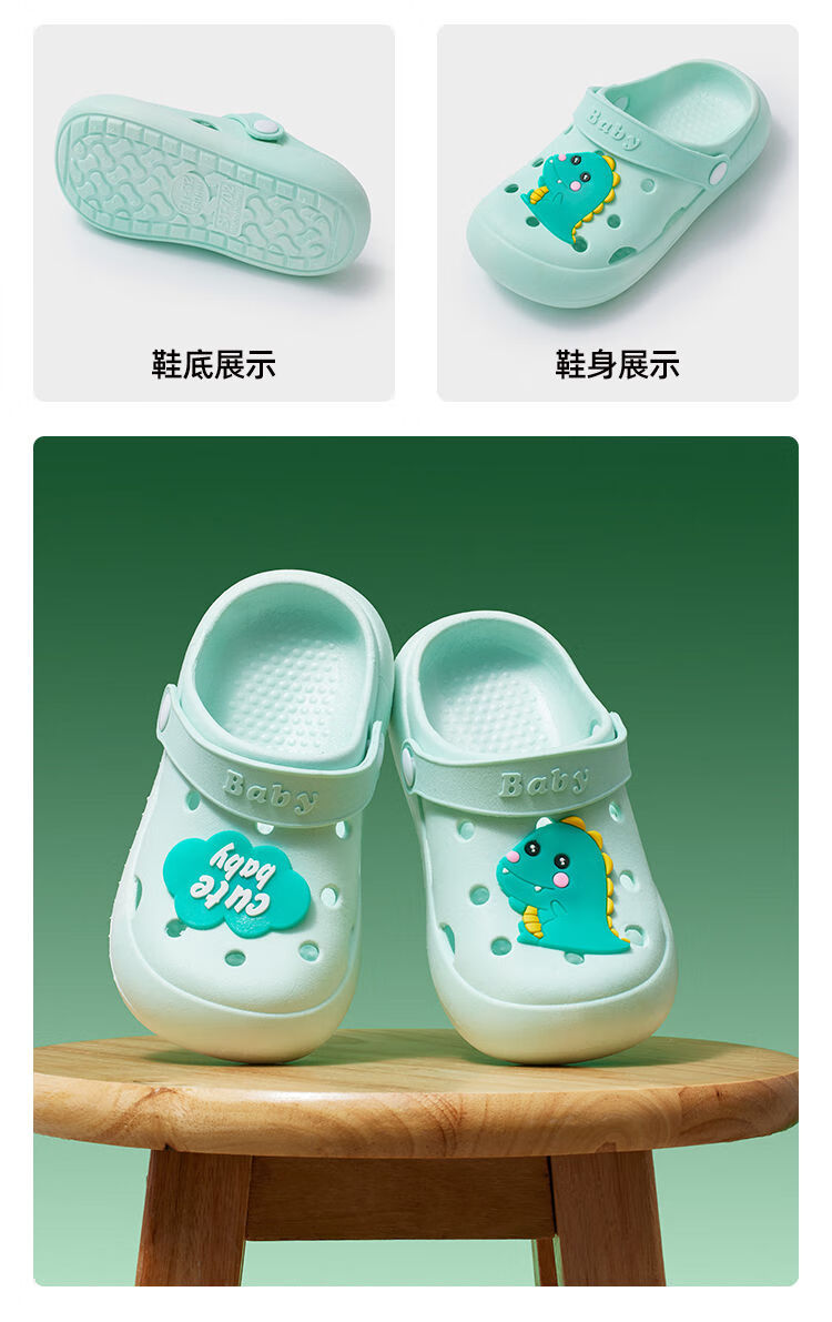 JOYNCLEON Children's Sandals and Slippers for Summer Indoor Non-Slip Girls and Boys Croc Shoes for Babies and Baby Showers Green Size 25/26 (Inner Length 15cm, Foot Length 14-15cm)