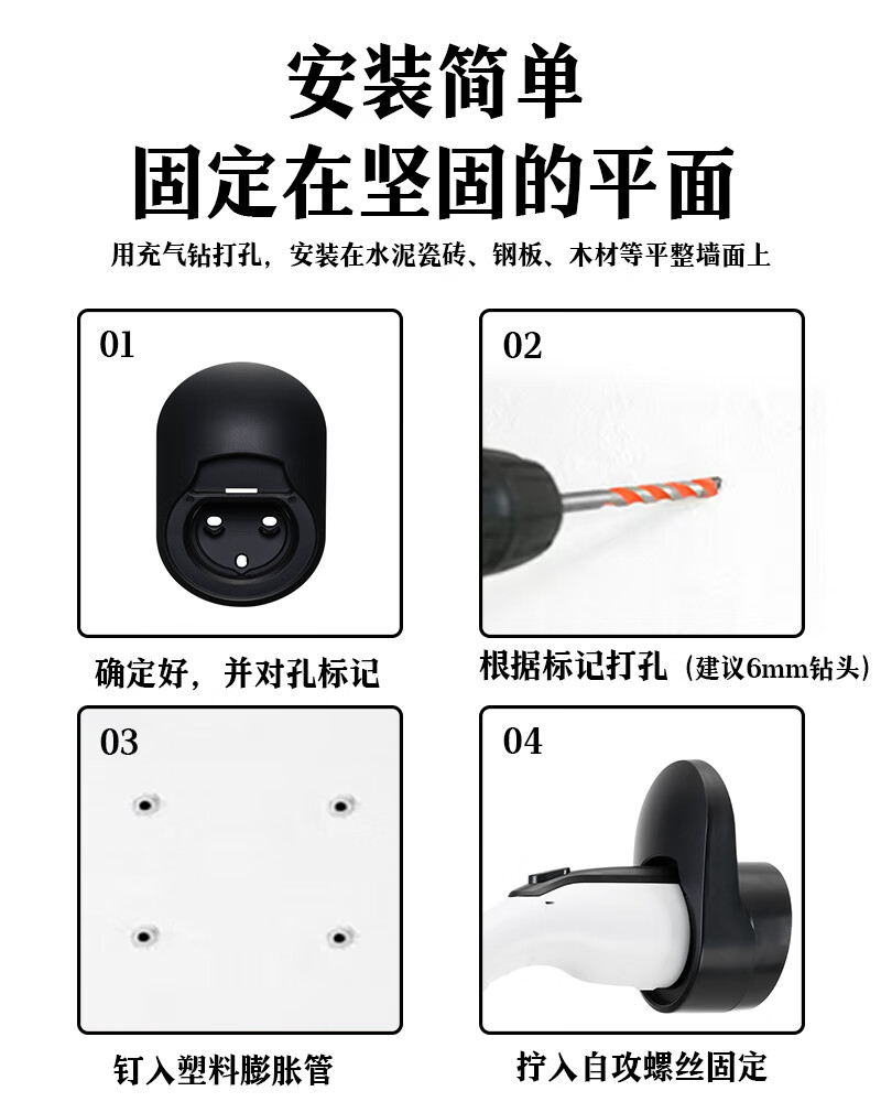 Gongma electric vehicle charging pile gun head lock hanger waterproof and dustproof portable lifting hook winder holder black