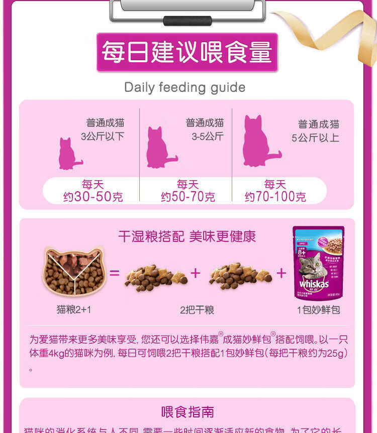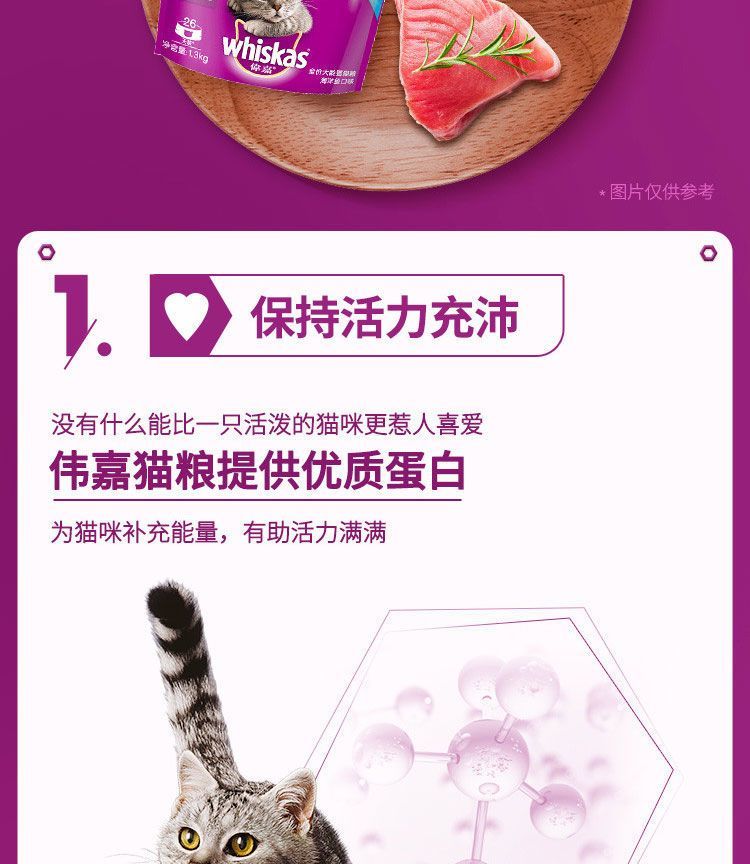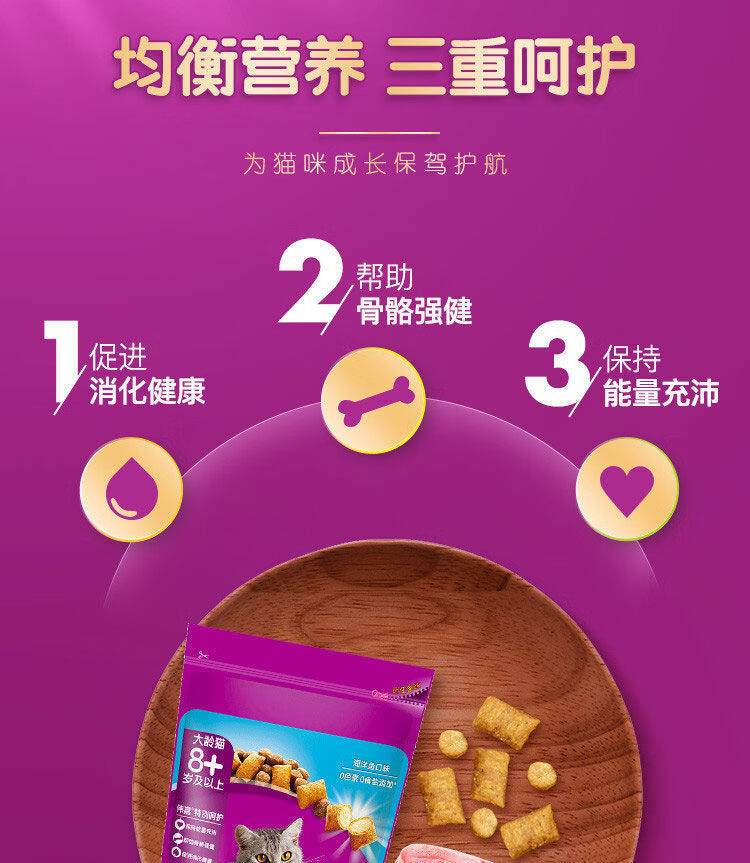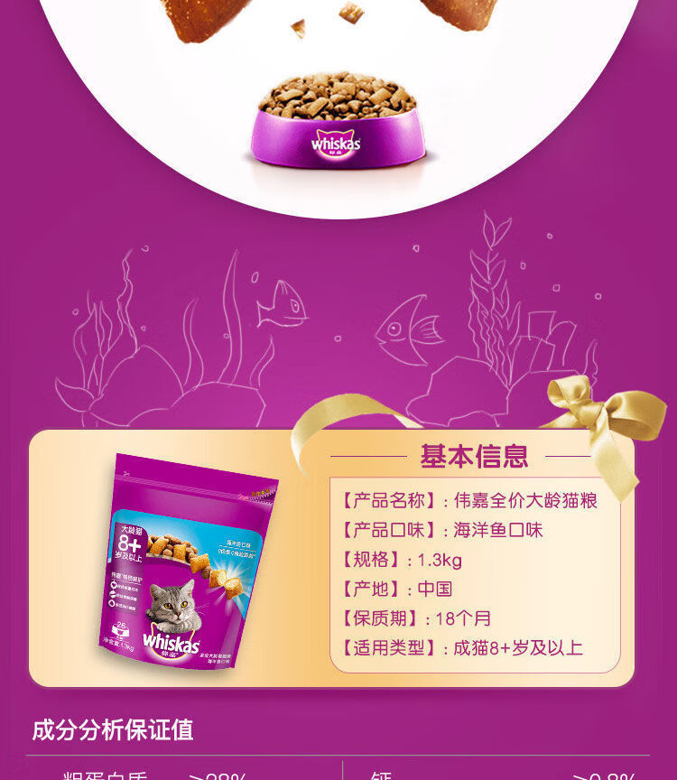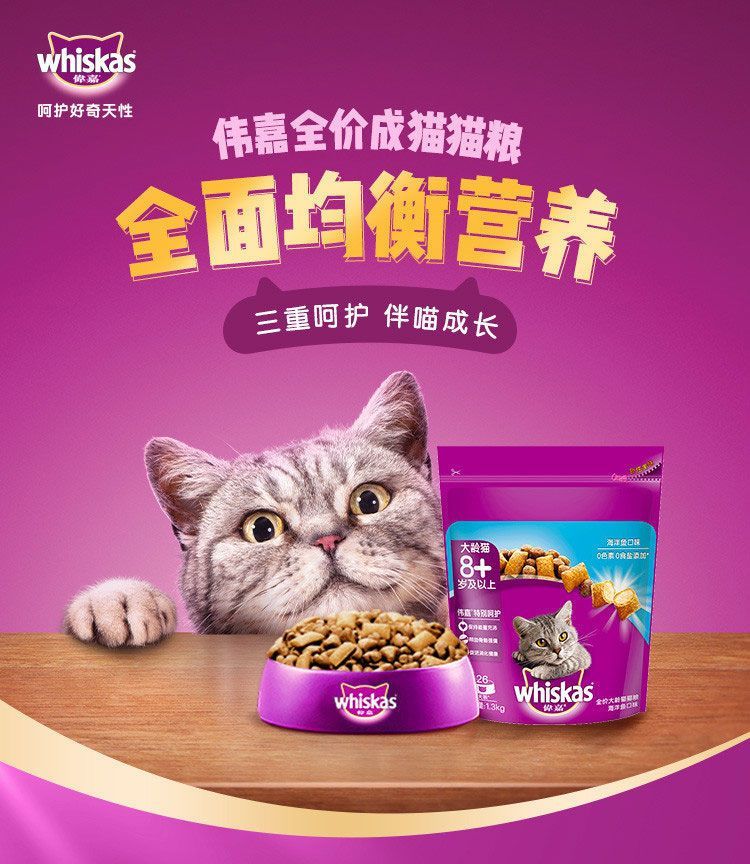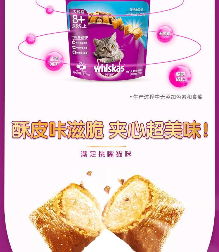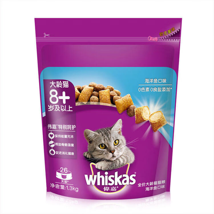 Whiskas cat food, adult cat ocean fish flavor, 8 years old and above, senior cat food 1.3kg, full price cat food, older cats, ocean fish flavor 1.3kg, 5 bags