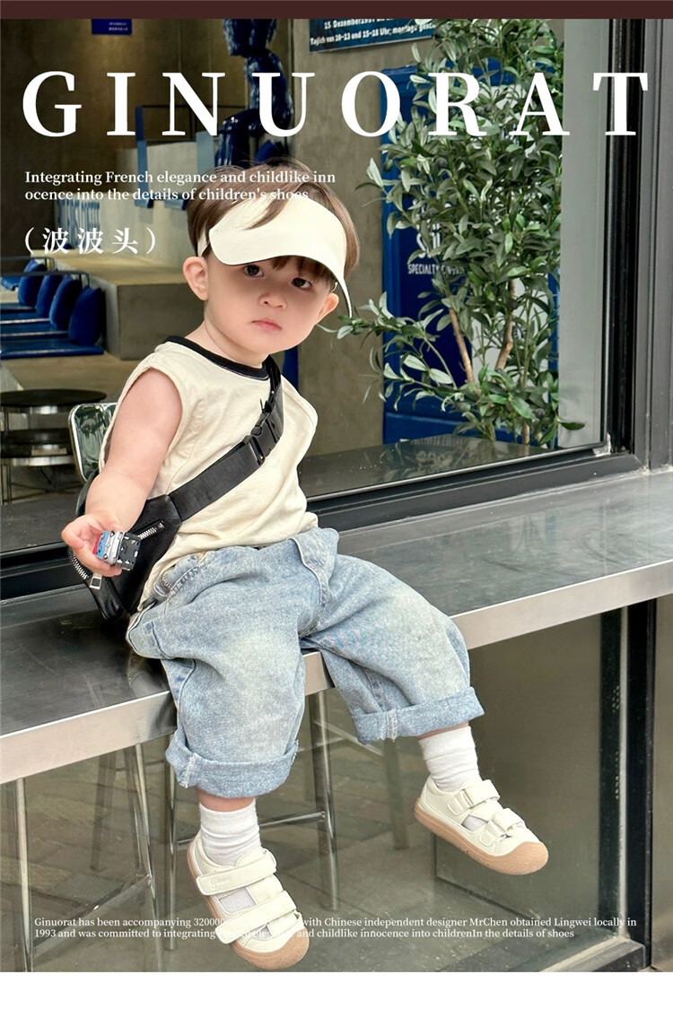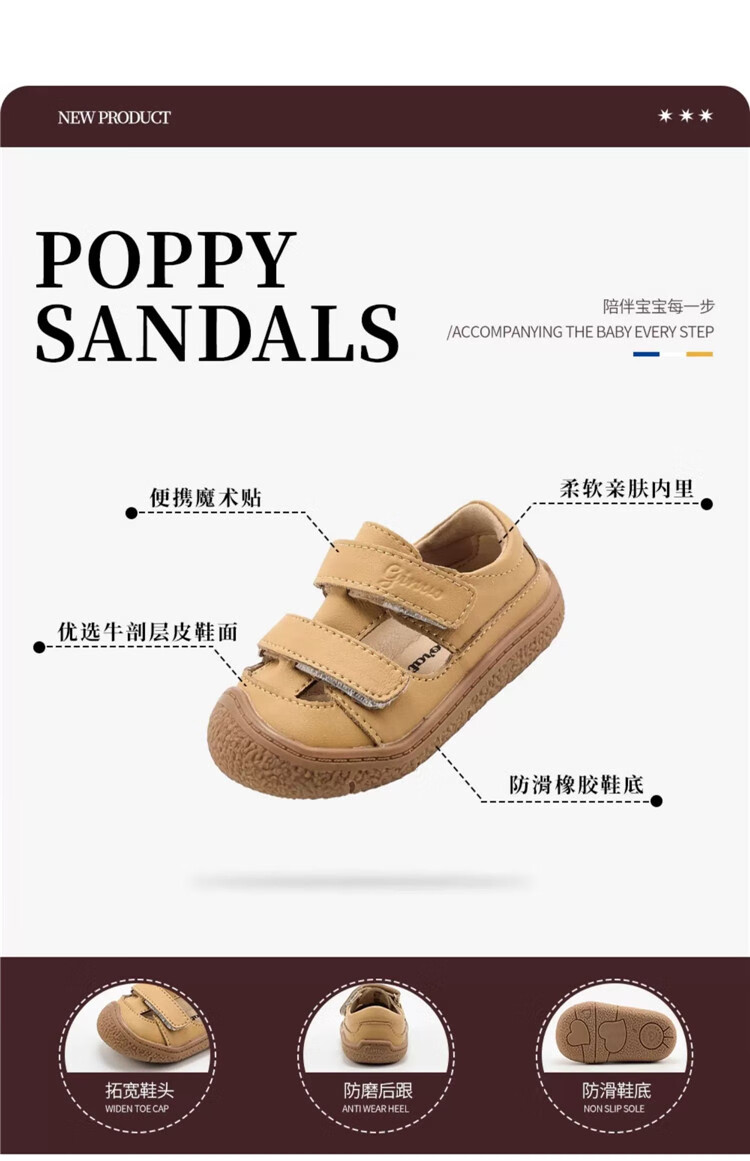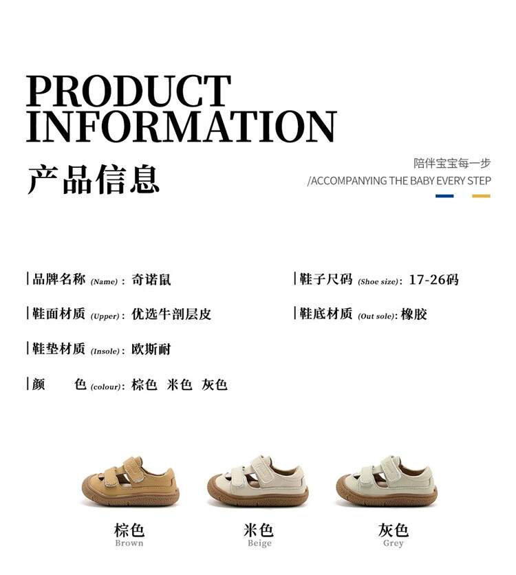 Chino Mouse Genuine Leather Children's Sandals Sports Boys Summer New Style Infant Girls 1-3 Years Old Functional Shoes Baotou Gray Size 26 (Suitable for Feet Length 15.1-15.6cm)