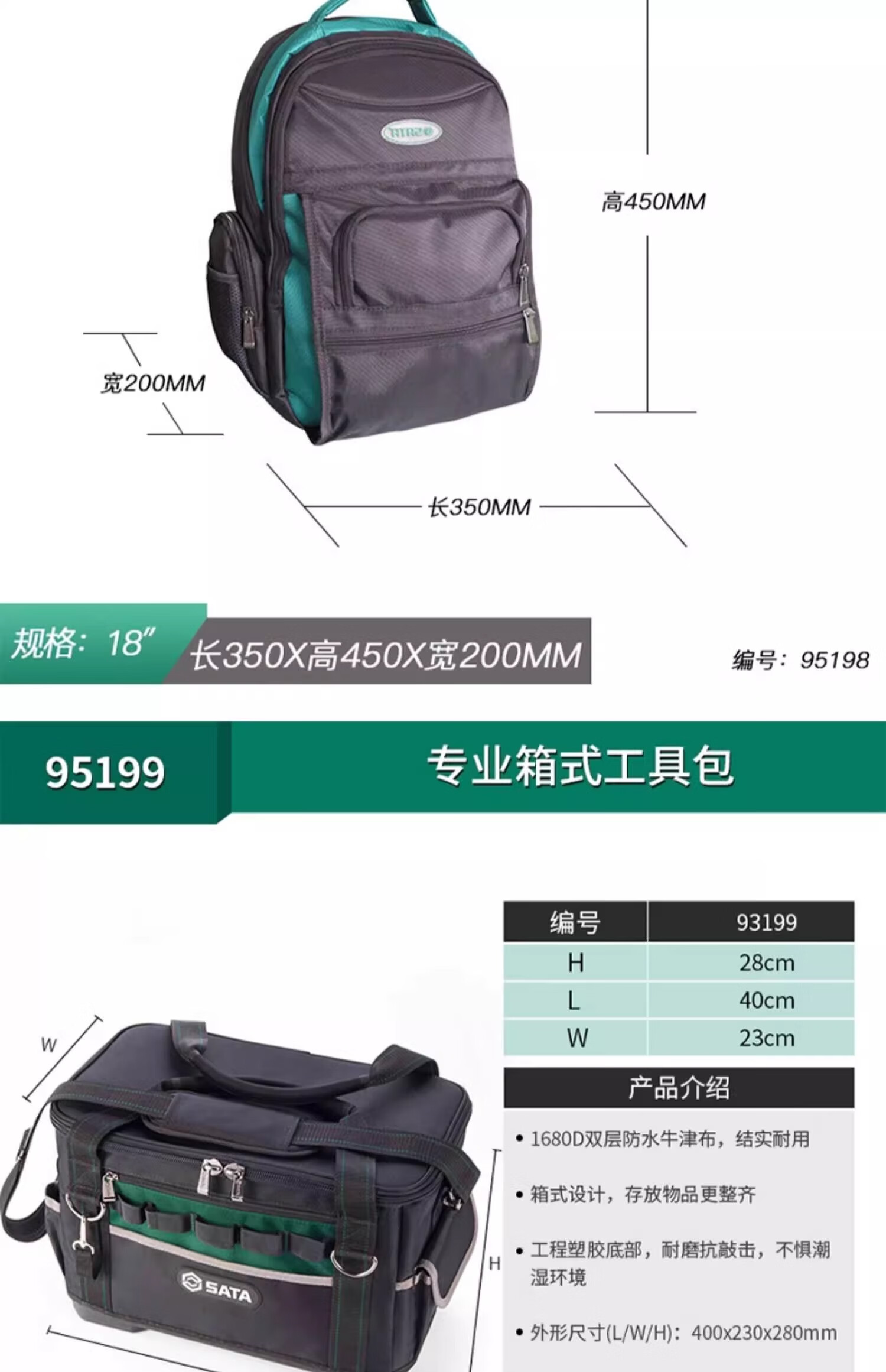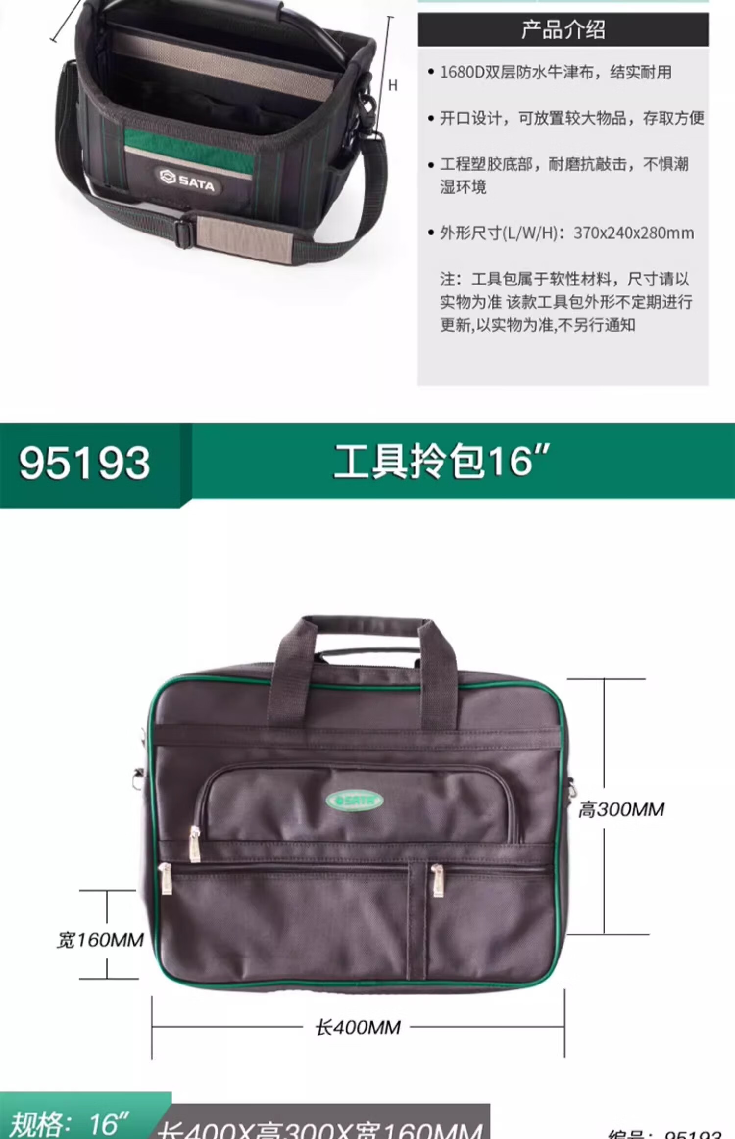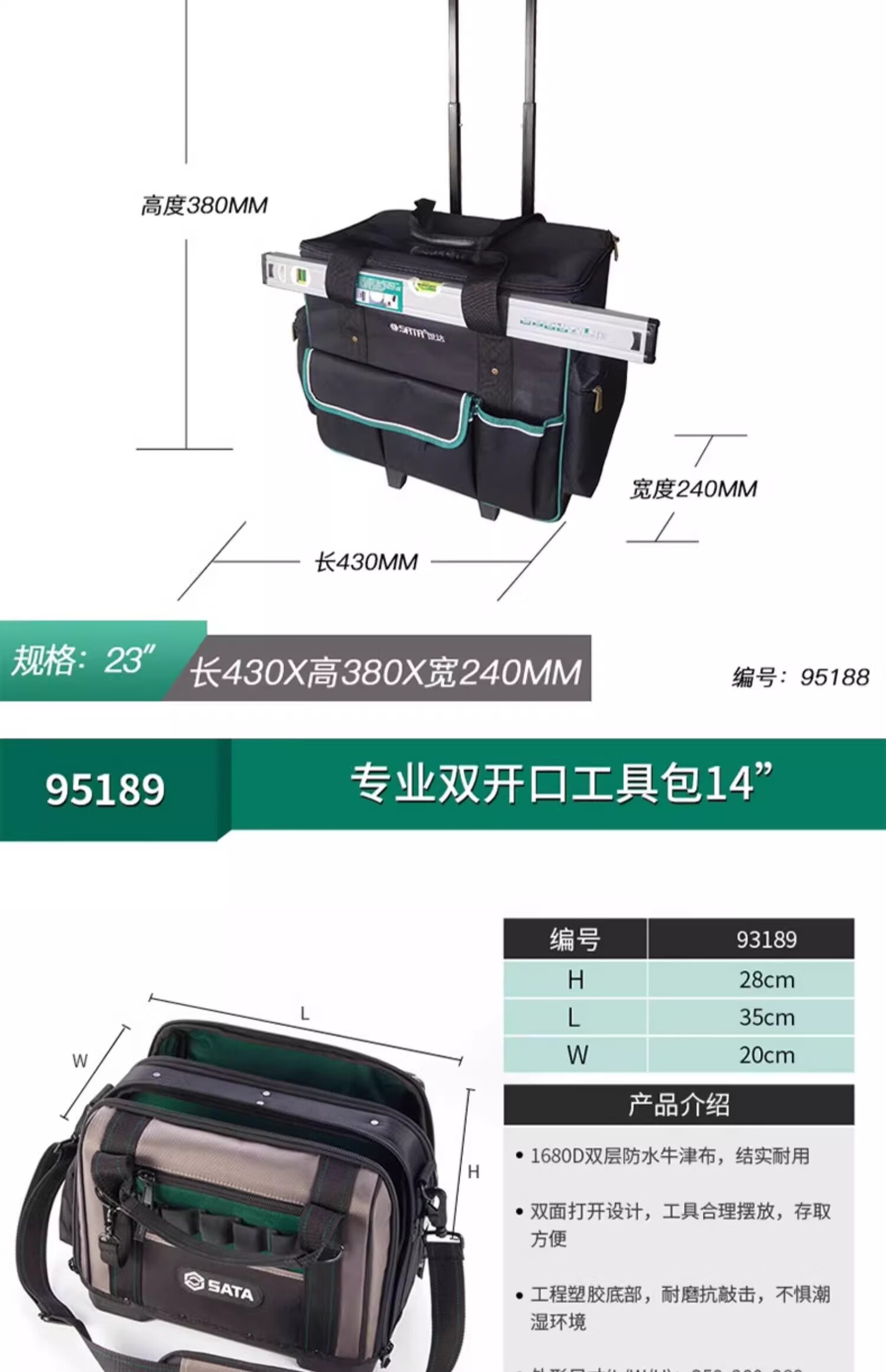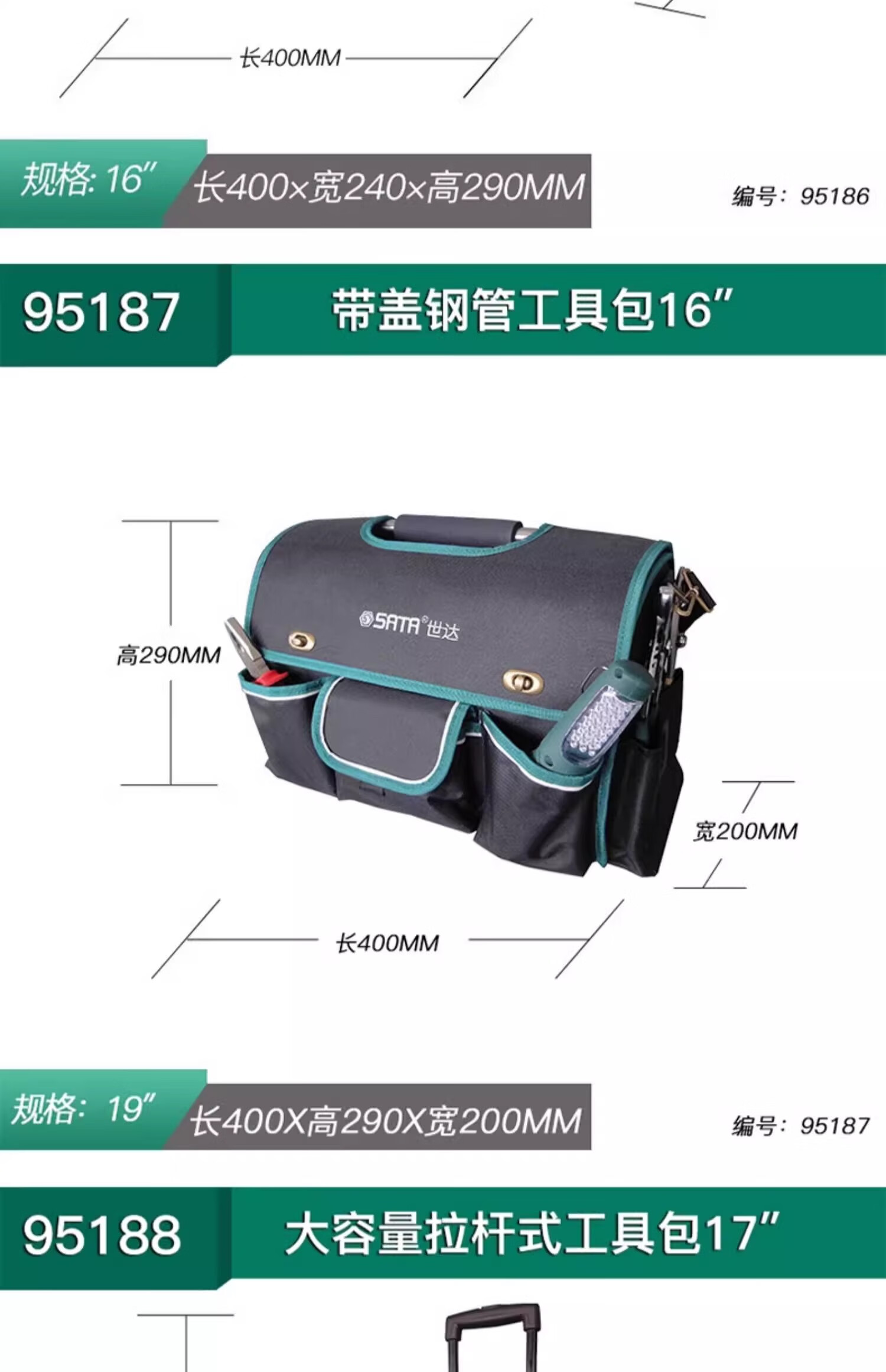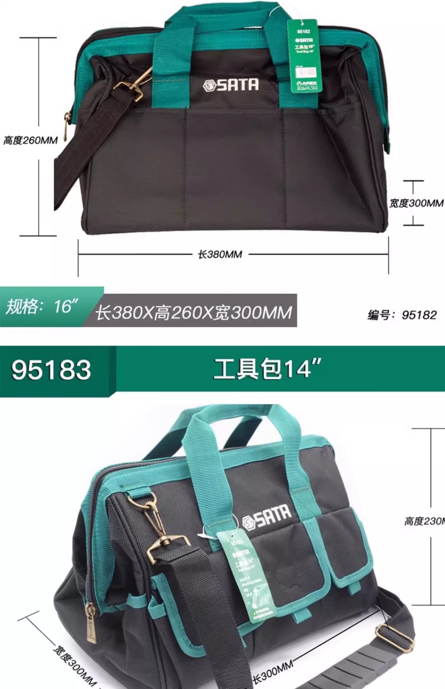 Shida multifunctional repair and installation plumber and electrician double shoulder carry large capacity tool bag portable trolley waist bag handbag 95181 tool bag 13 inches