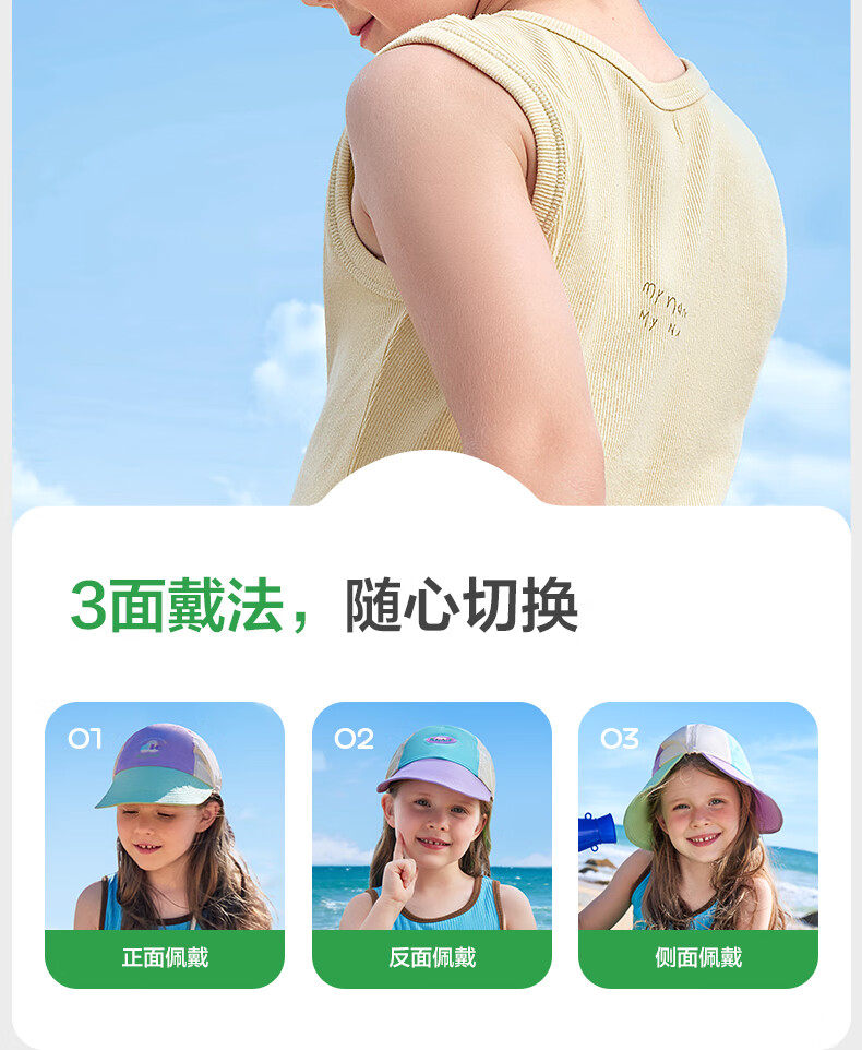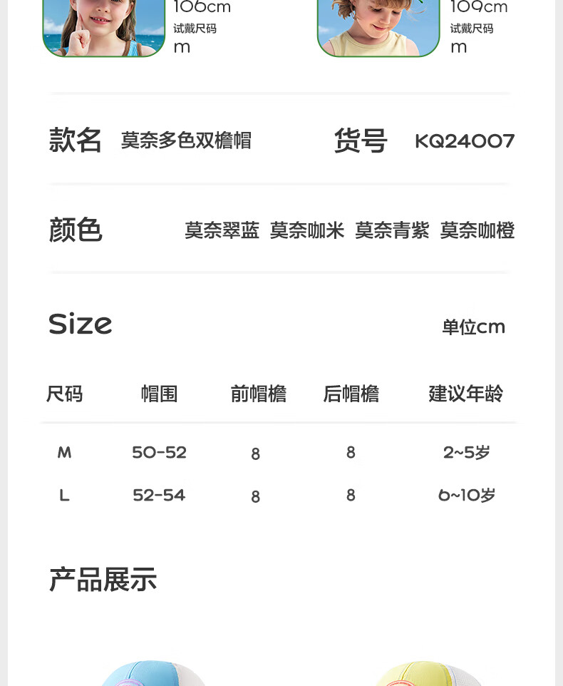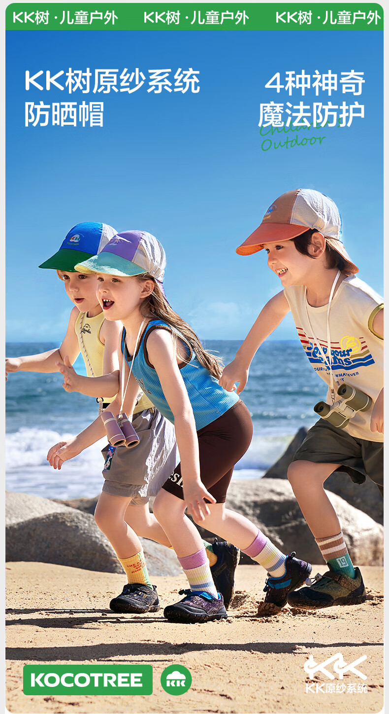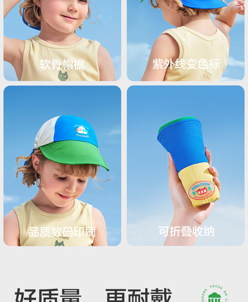 Kocotree children's hat sun protection baseball boys and girls baby peaked hat sunshade boys and girls soft brim Monet emerald blue original yarn efficient sun protection expert 170 M size recommended head circumference 48-50cm, 2-