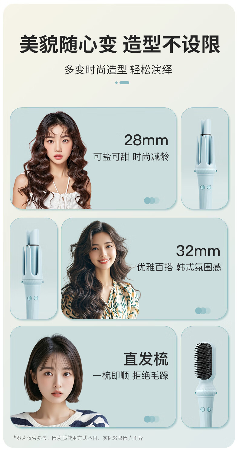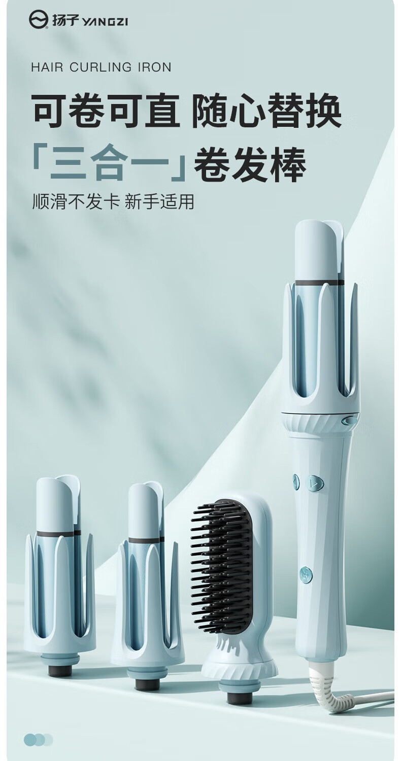 Yangzi fully automatic hair curling iron 32MM28MM big wave egg roll hair clip negative ion dormitory can be used with three-in-one straight hair comb 250 million negative ions + three-in-one + beep prompt