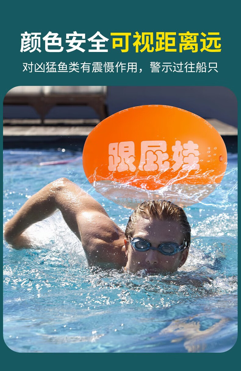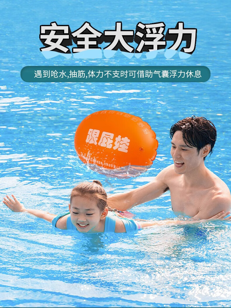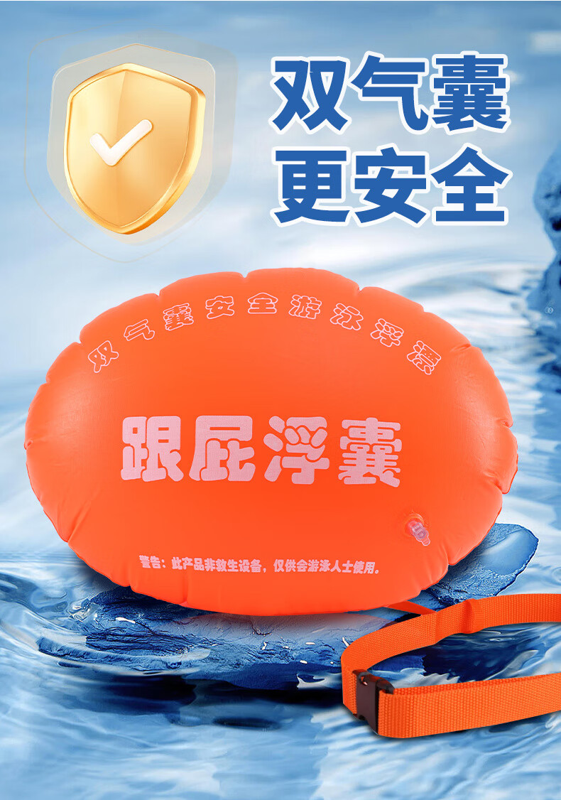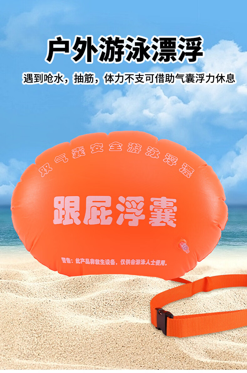 Baichao inflatable thickened follower swimming float special double air bag life-saving buoy adult anti-drowning artifact follower float bag + belt + nose clip earplugs + swimming cap extra large thickened adult universal style
