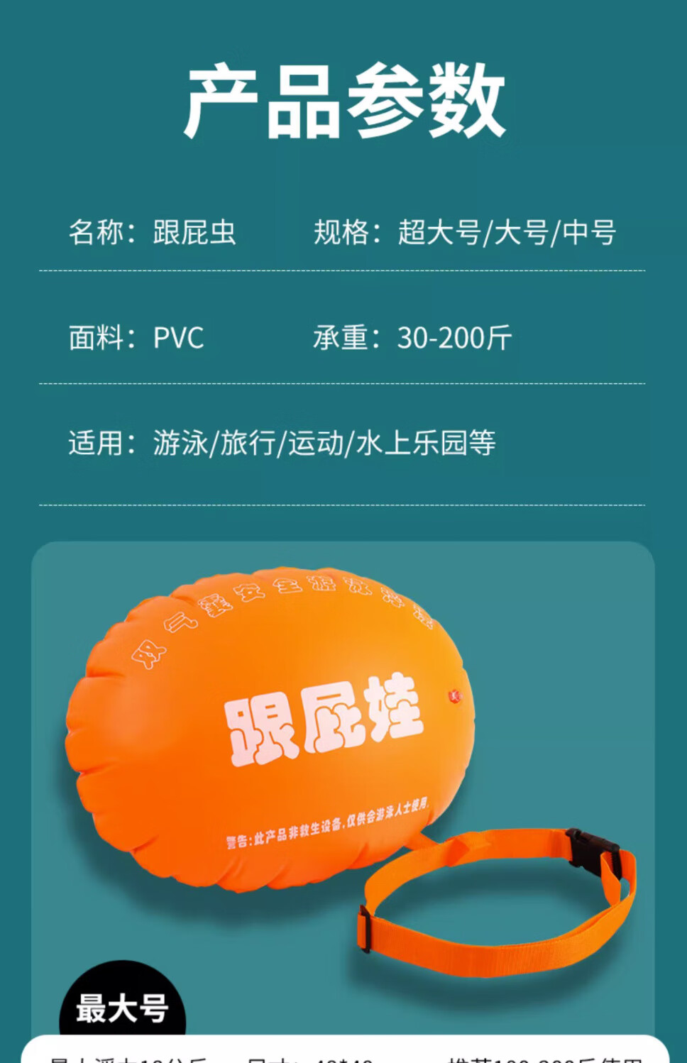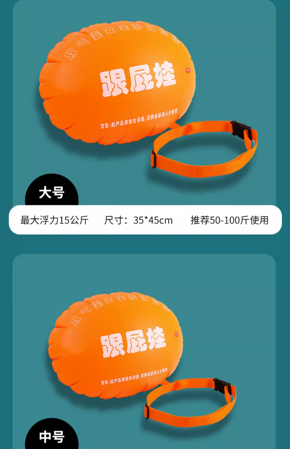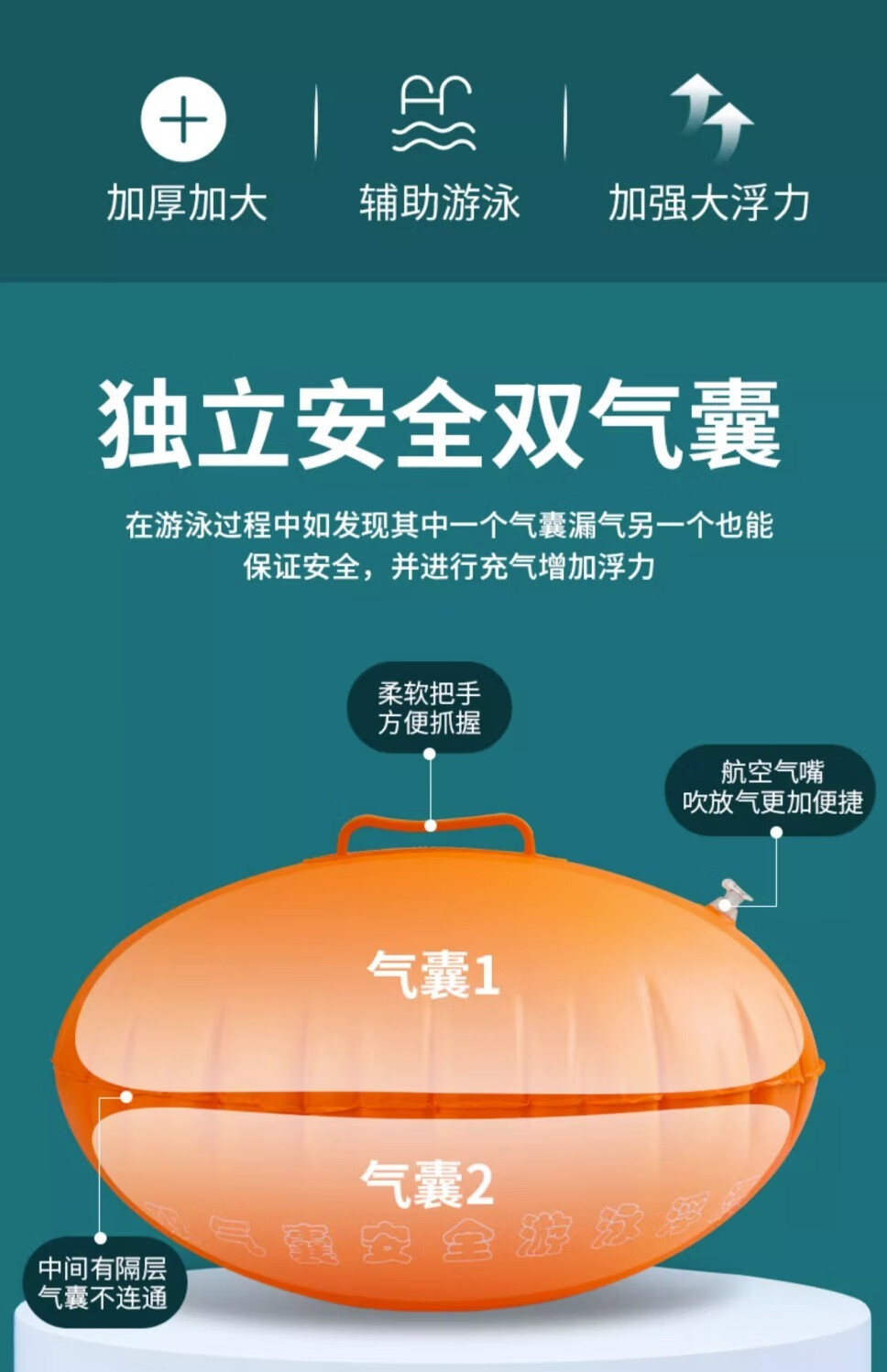 Baichao inflatable thickened follower swimming float special double air bag life-saving buoy adult anti-drowning artifact follower float bag + belt + nose clip earplugs + swimming cap extra large thickened adult universal style