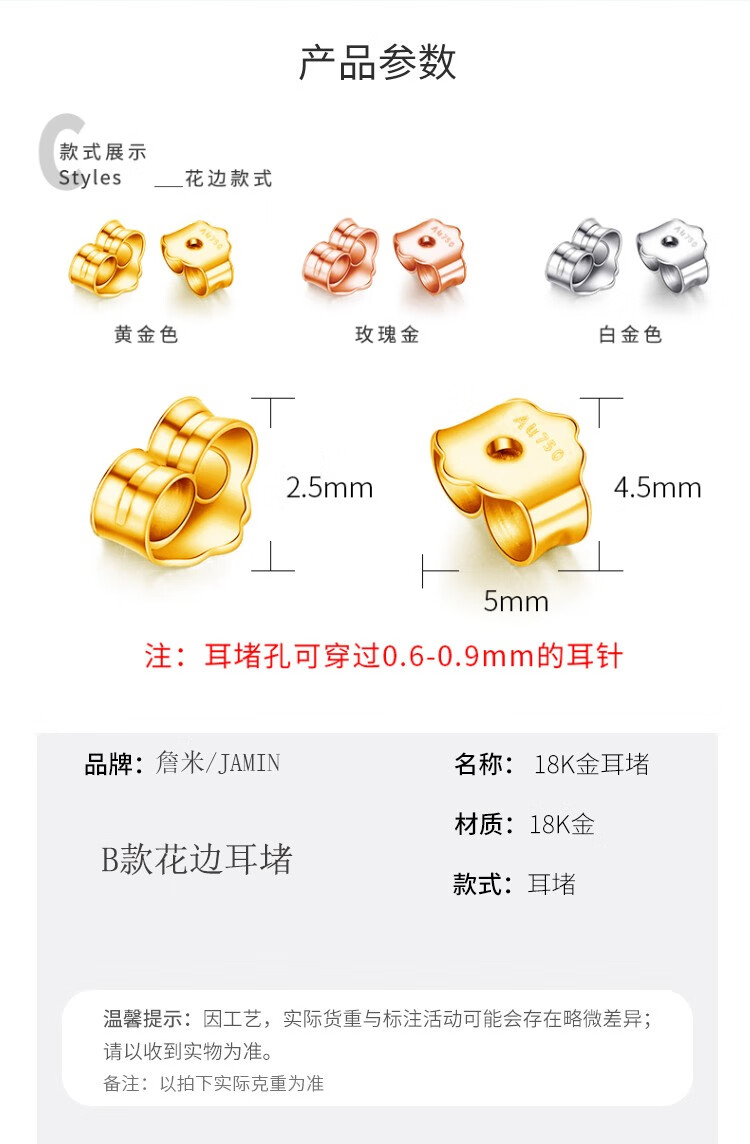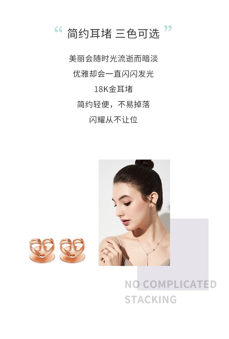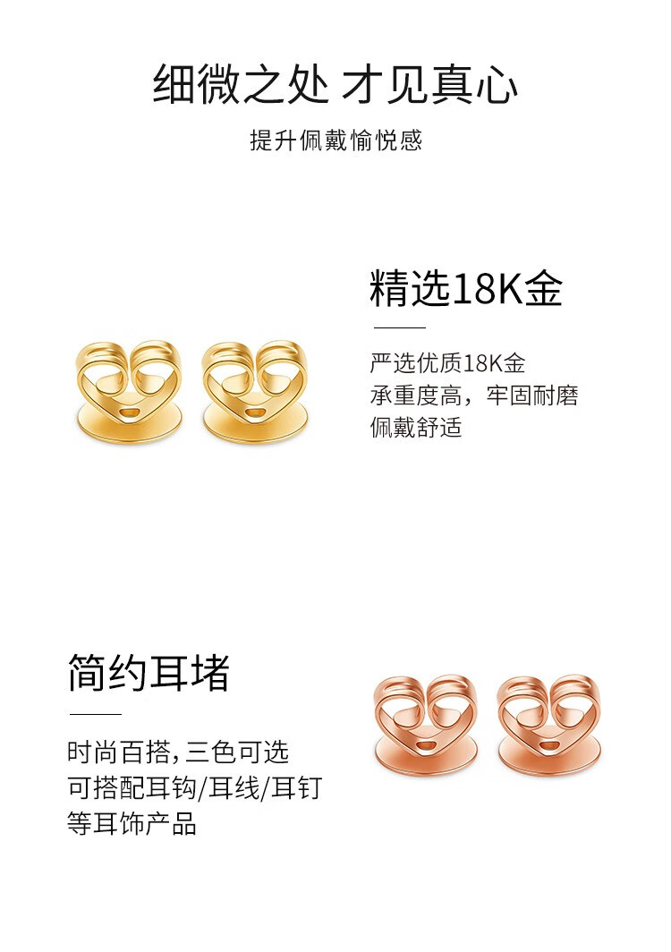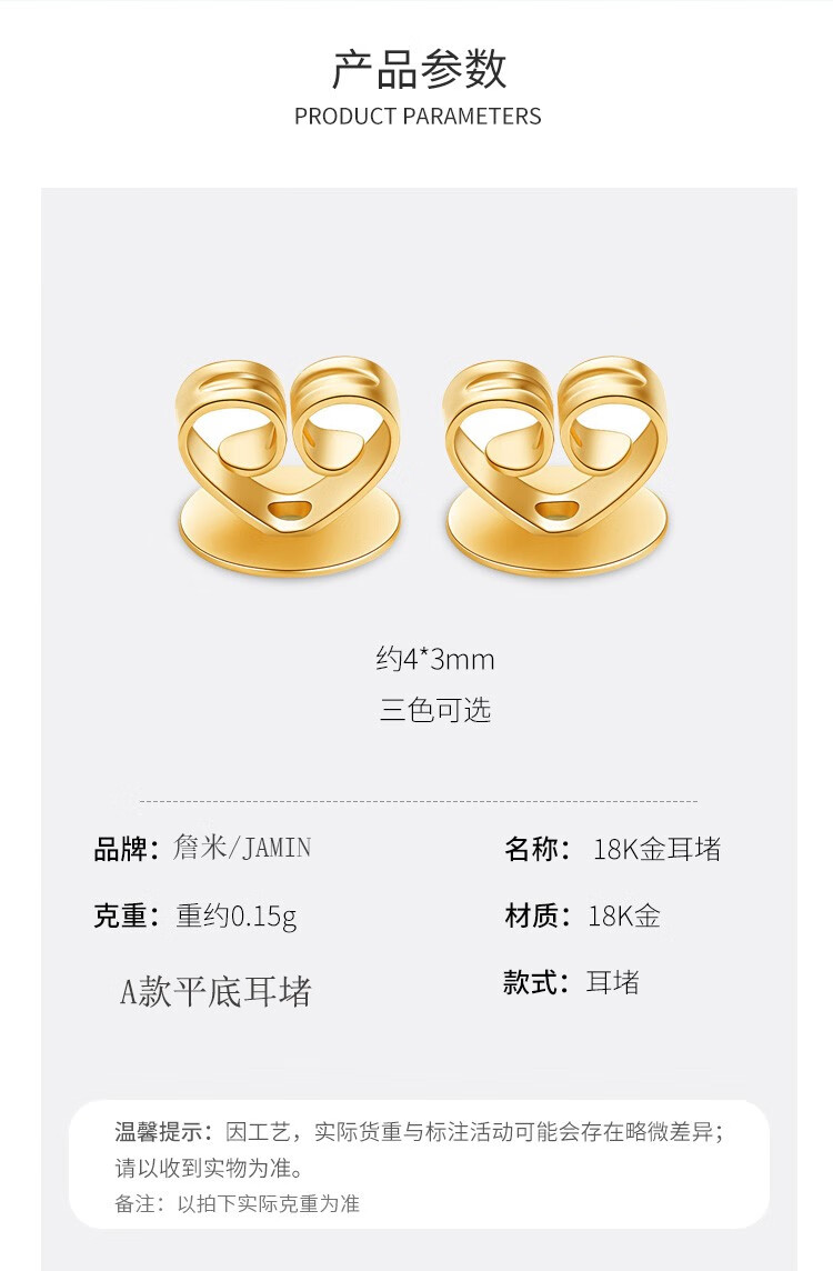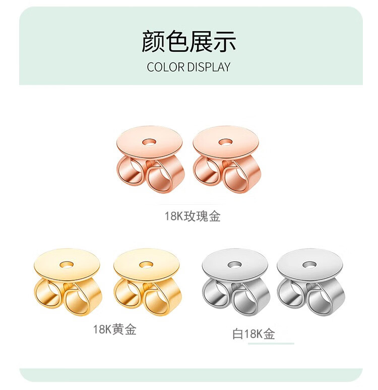 Beibeyou 18k gold ear plugs AU750 ear wall ear plugs, ear back ear buckles, anti-slip rear ear plugs, imported ear stud cap accessories, flat bottom pair, gold