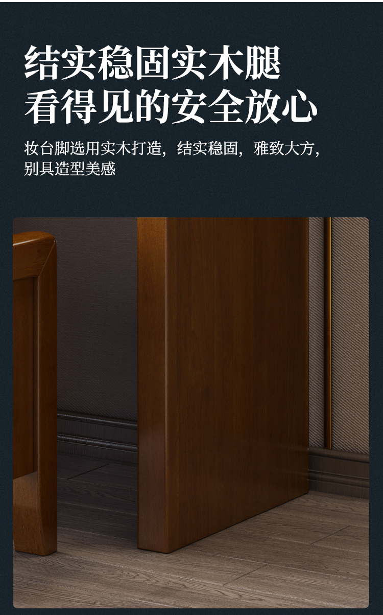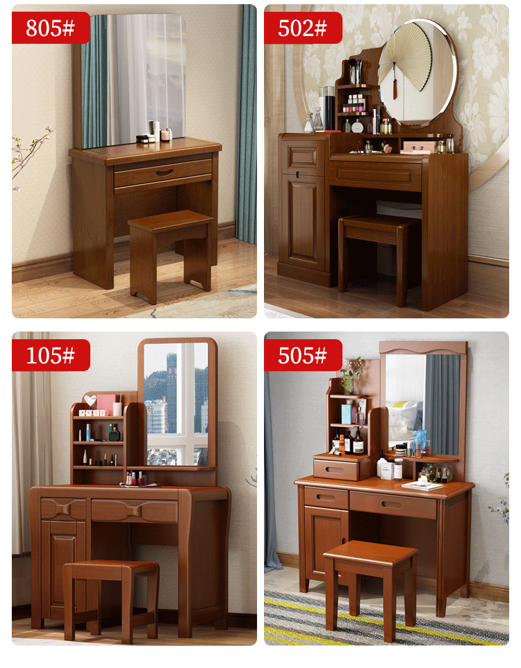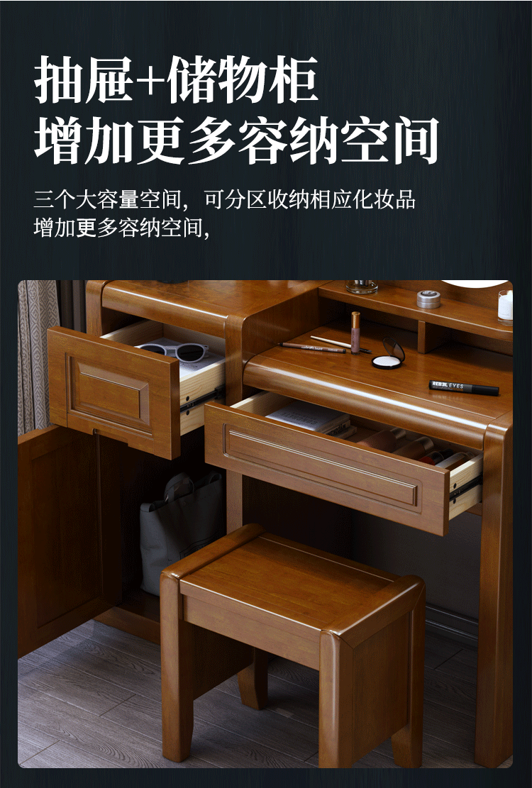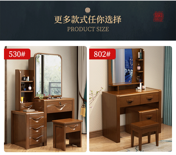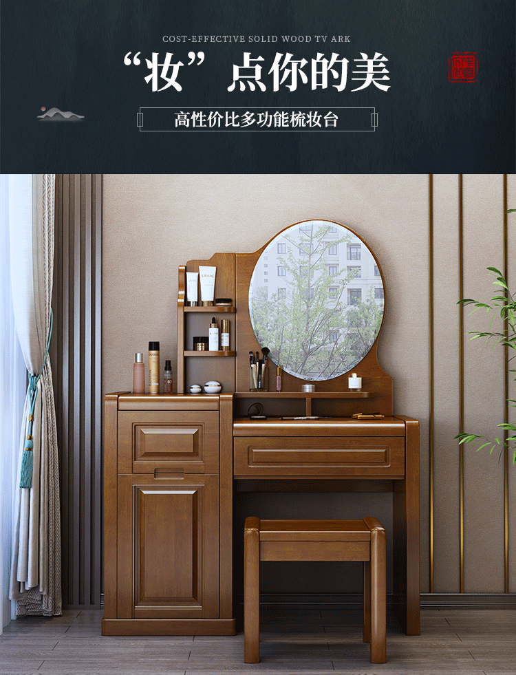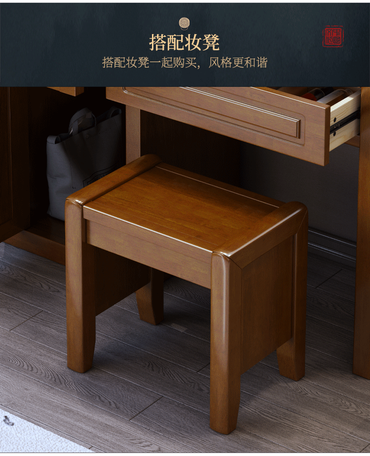 Chinese style solid wood dresser master bedroom high-end home wedding room walnut color bedroom dresser solid wood dresser cabinet 509 dresser gift stool