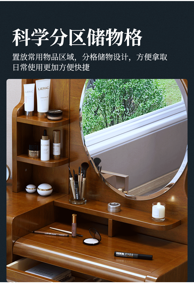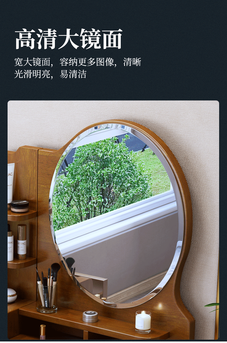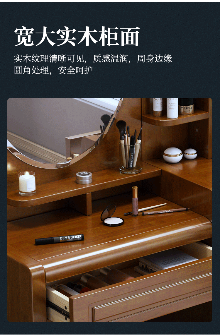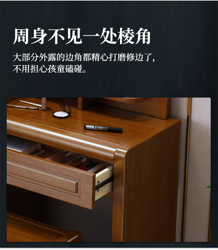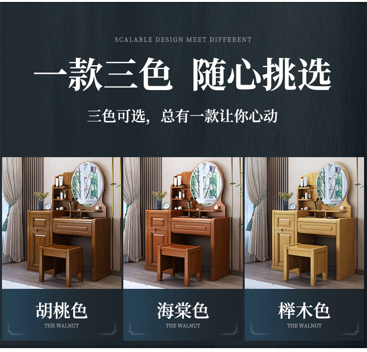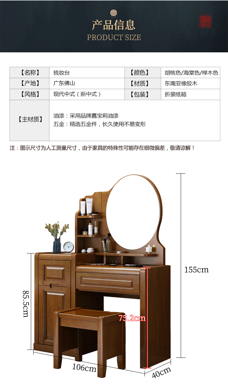 Chinese style solid wood dresser master bedroom high-end home wedding room walnut color bedroom dresser solid wood dresser cabinet 509 dresser gift stool
