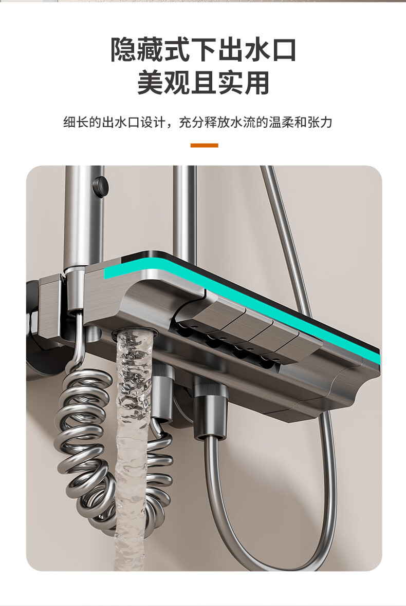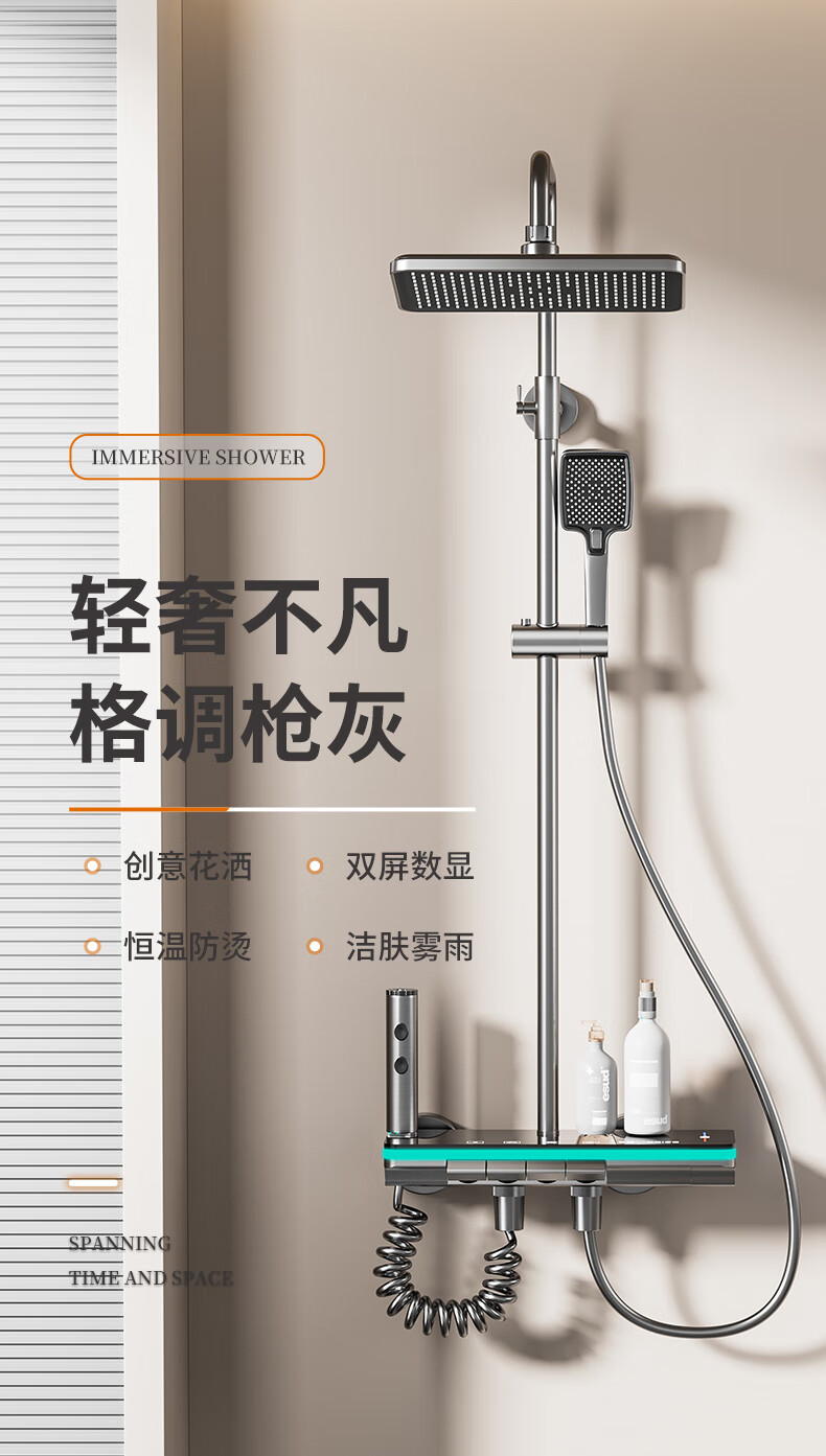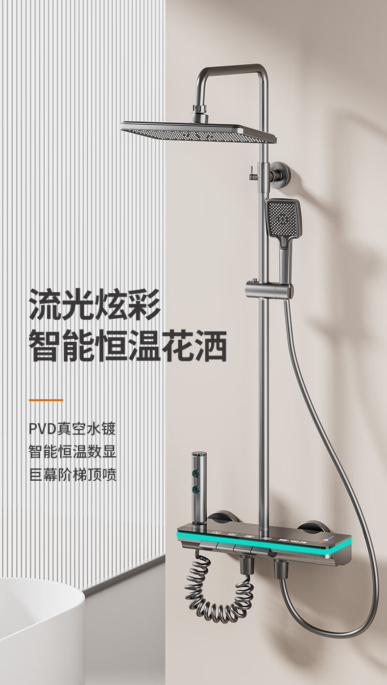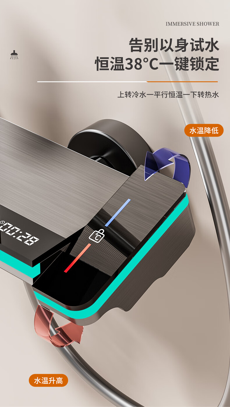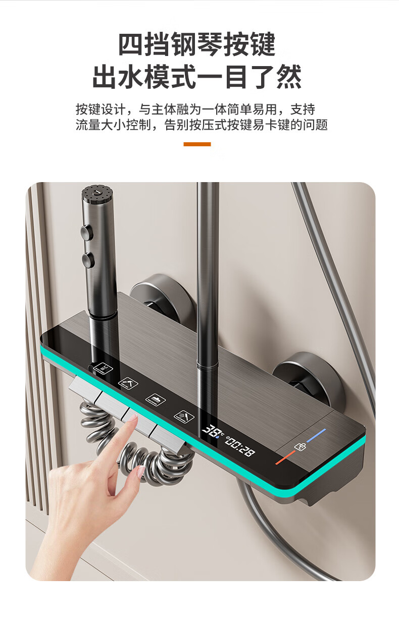 Shower full set of rain shower copper body set constant temperature intelligent digital display supercharged hand shower head piano key JM-275 gun gray hot and cold version