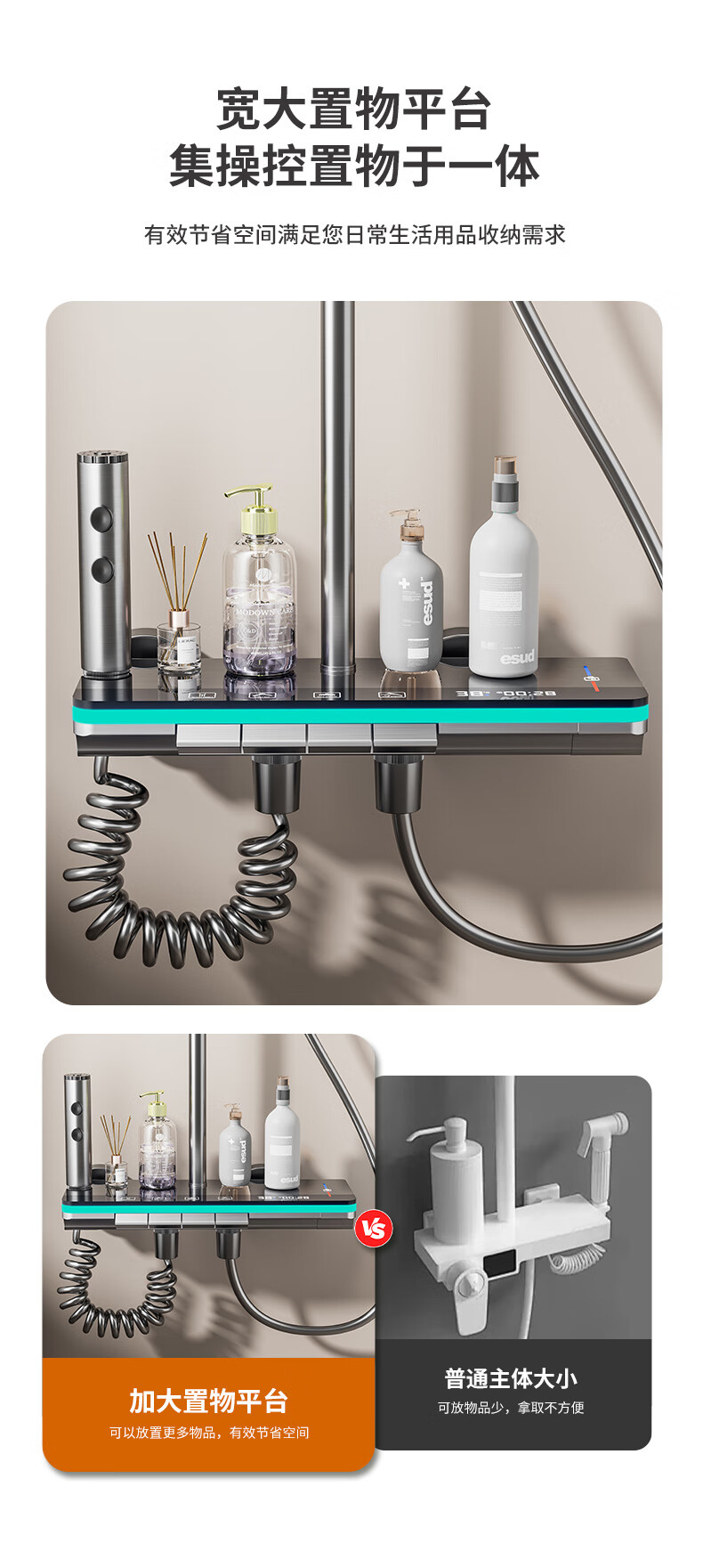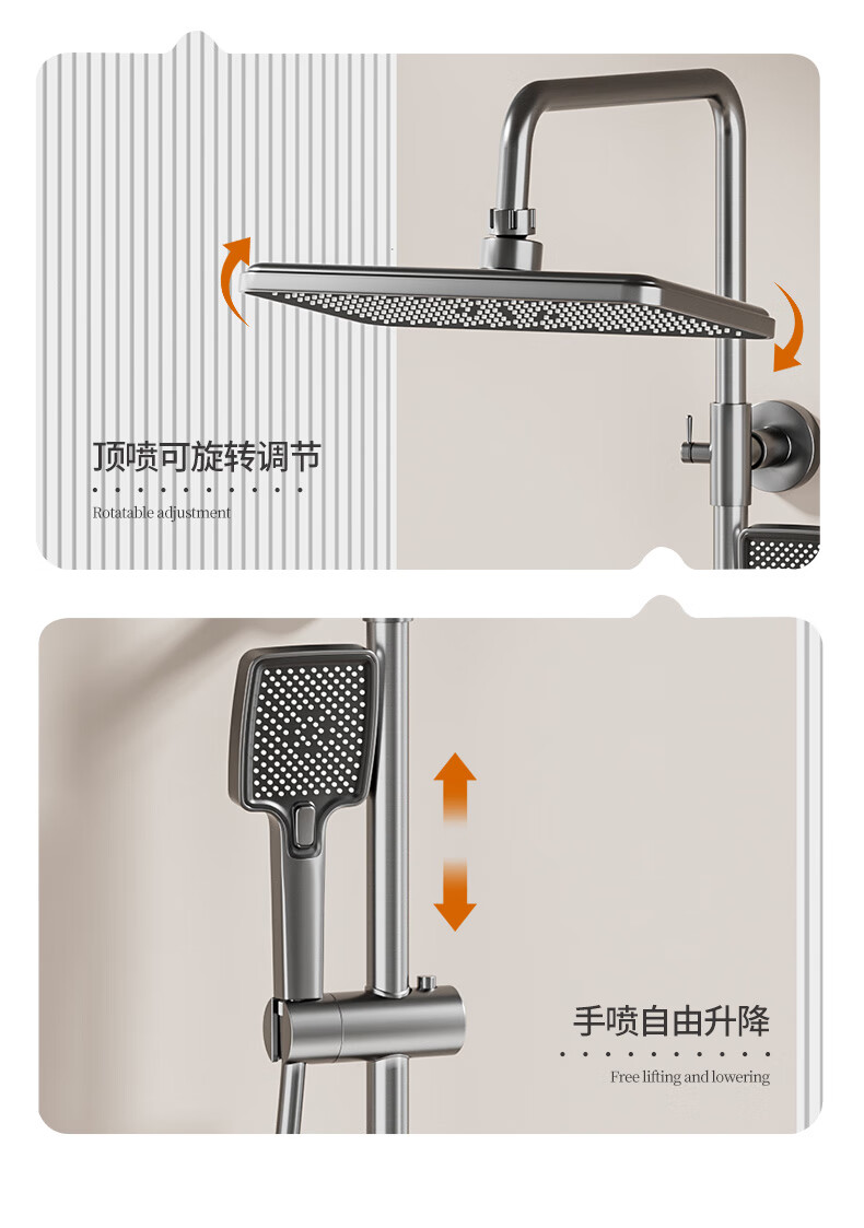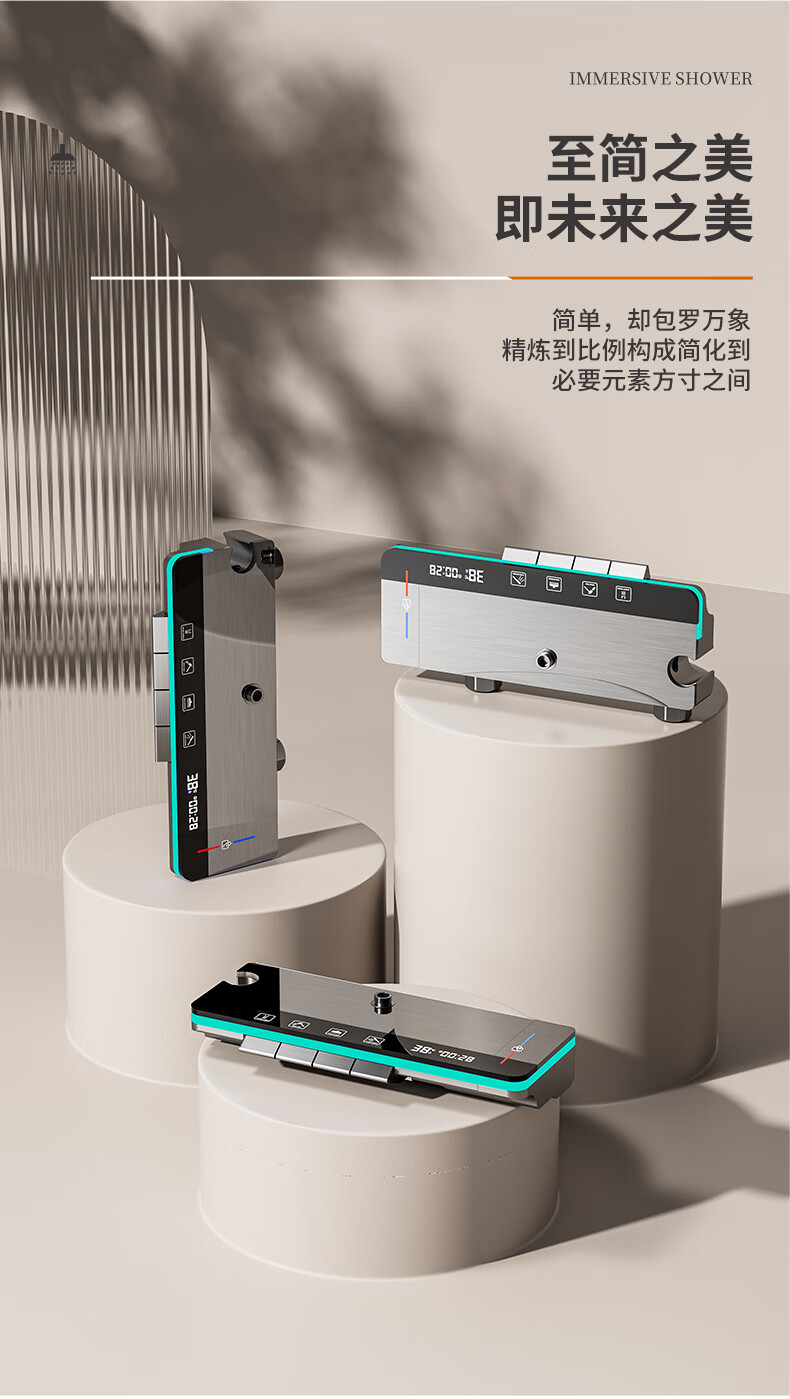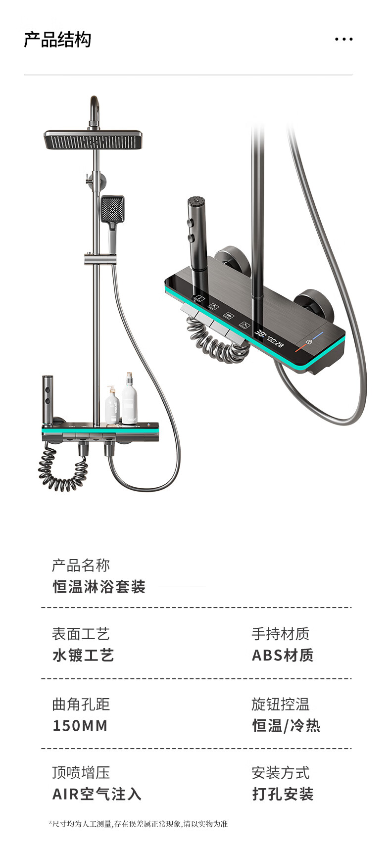 Shower full set of rain shower copper body set constant temperature intelligent digital display supercharged hand shower head piano key JM-275 gun gray hot and cold version