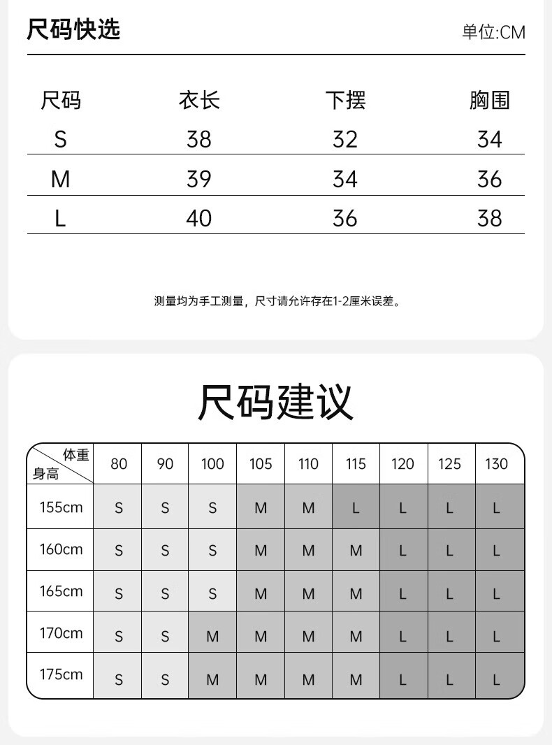 China (cm) 160-165/84-86 165-170 / 88-90 167-172 / 92-96 168-173 / 98-102 170-176 / 106-110