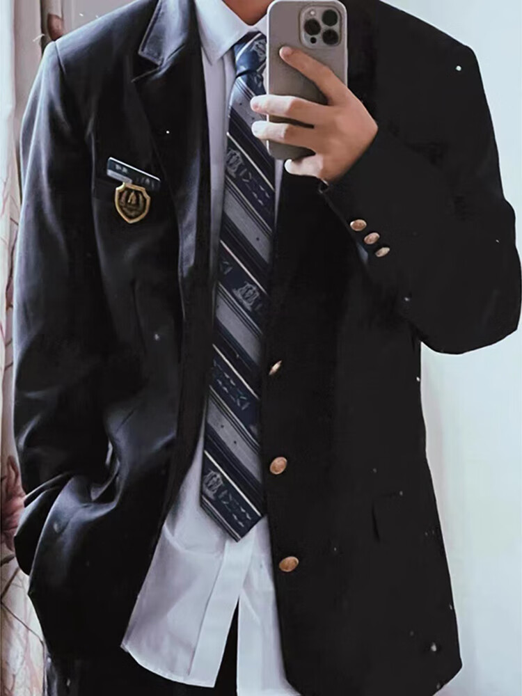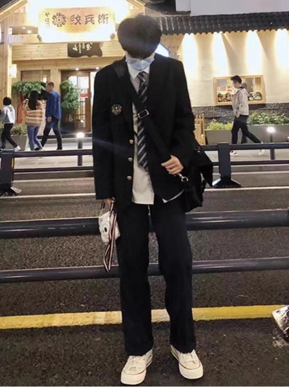 Xinghelai Japanese college style dk suit boy dress handsome three-piece Korean casual small suit navy suit + white shirt + black pants + tie XL 125-140Jin Jin equals 0.5 kg can be worn