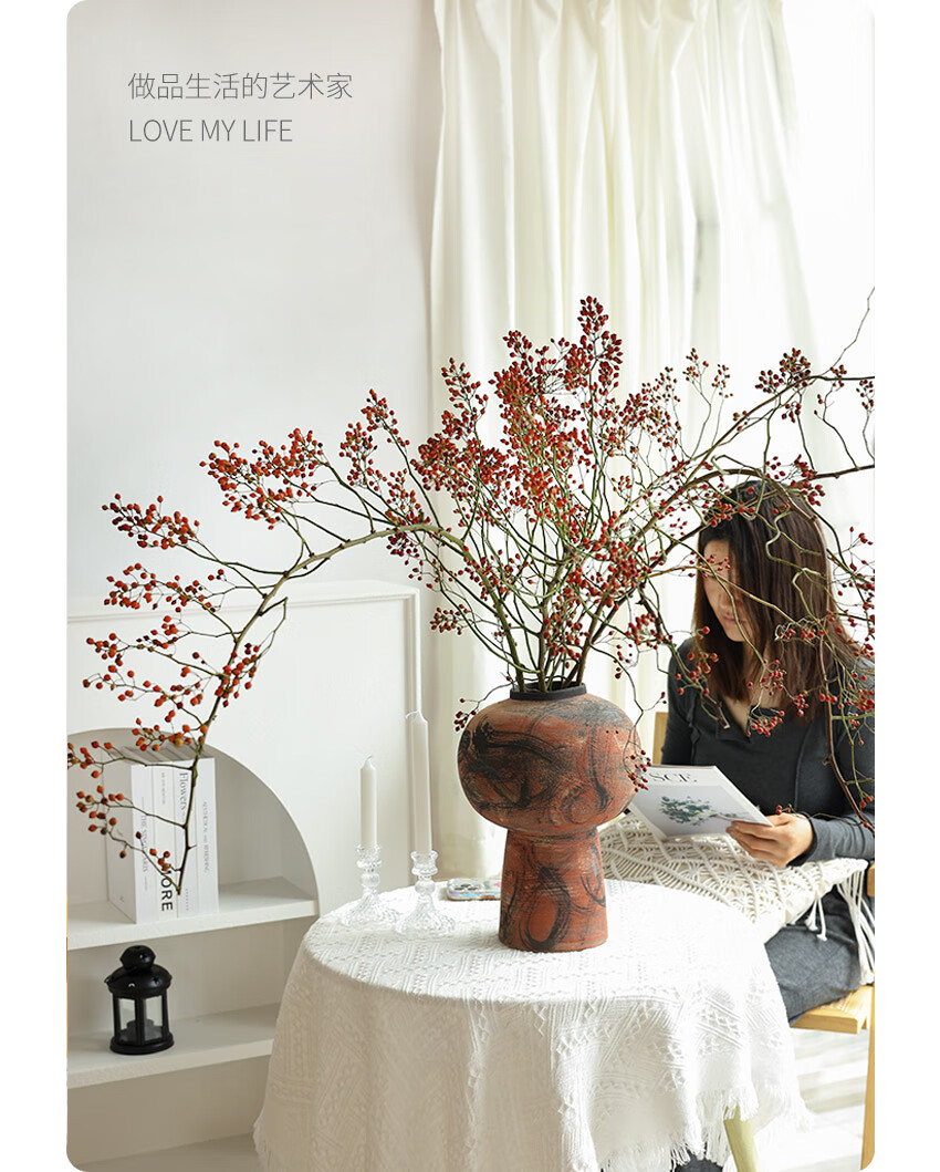 Wen Shi Ou Shan Return natural plant dried flower bouquet living room decoration wabi-sabi wind flower arrangement dry branches decorative ornaments dry branches Shan Return Light Branch No Fruit 3 dried flowers 100-115c