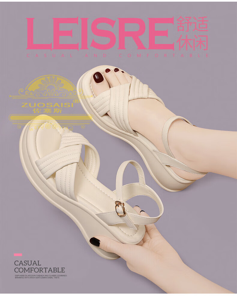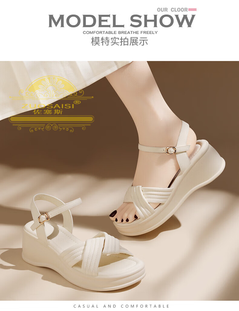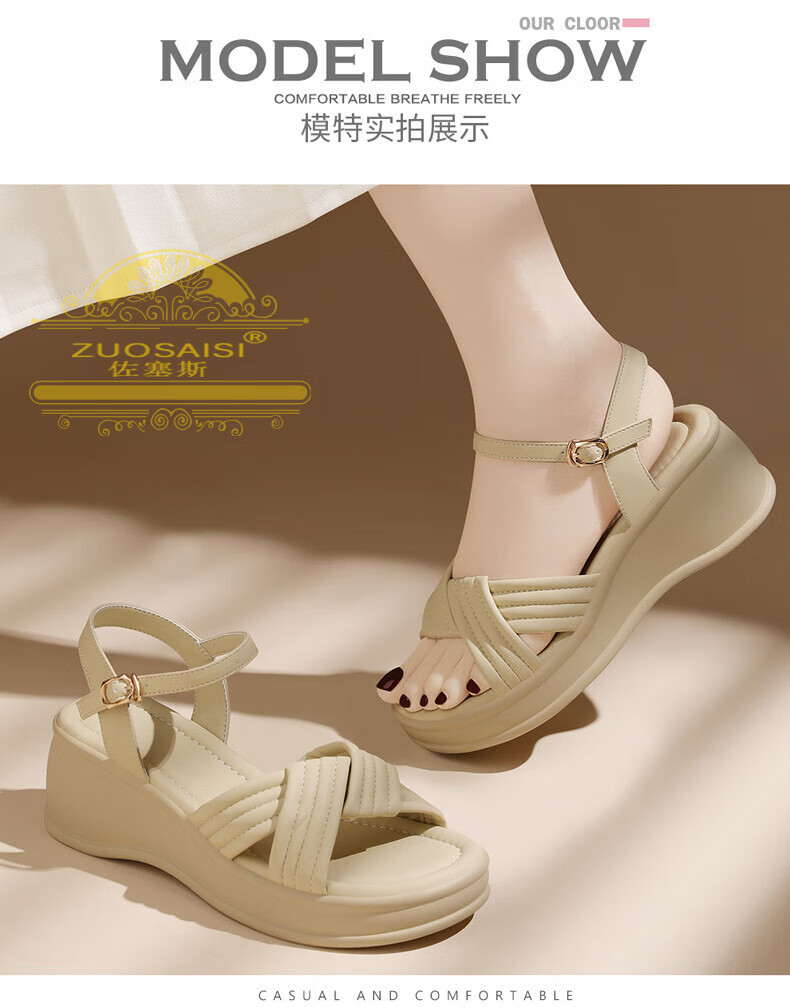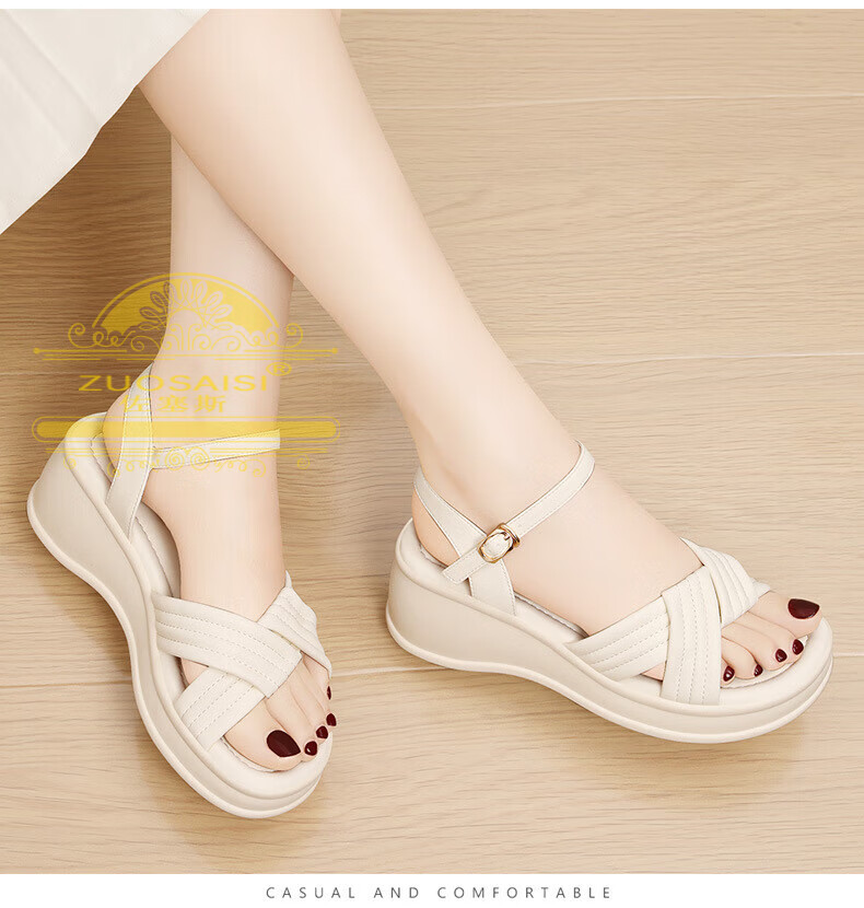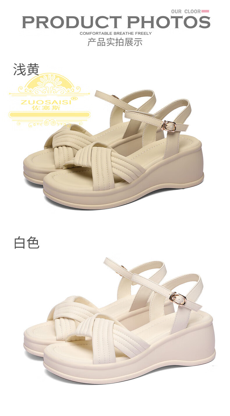 ZUOSAISI brand sandals for women, thick soles, medium heels, versatile, fashionable, soft soles, lightweight summer Roman wedge heel, strappy sandals for women, white 36