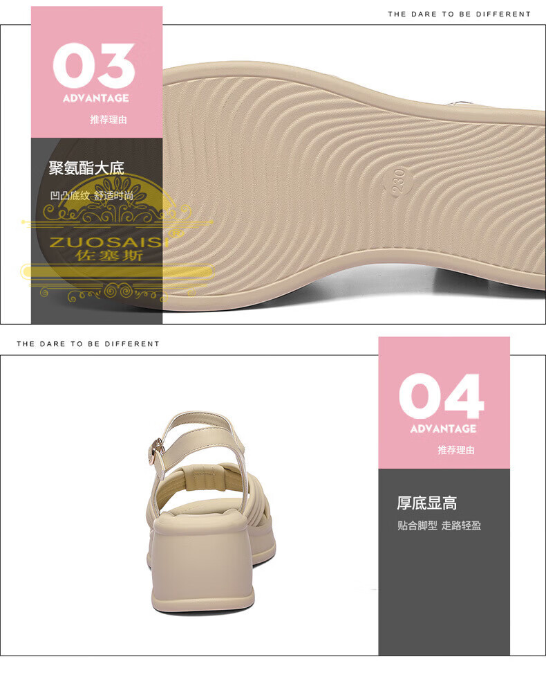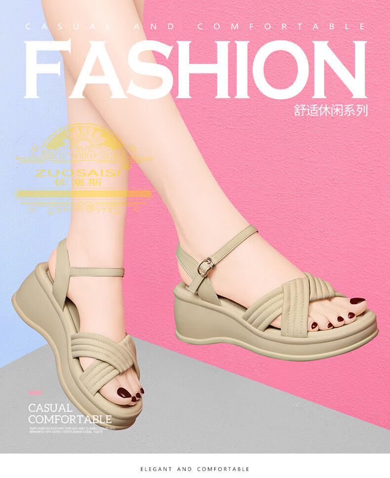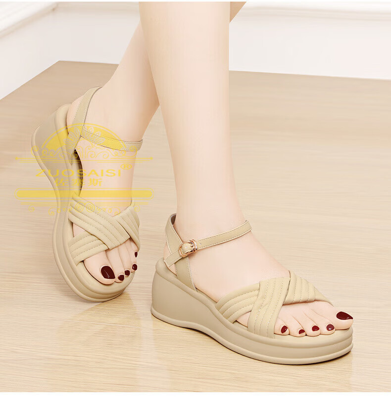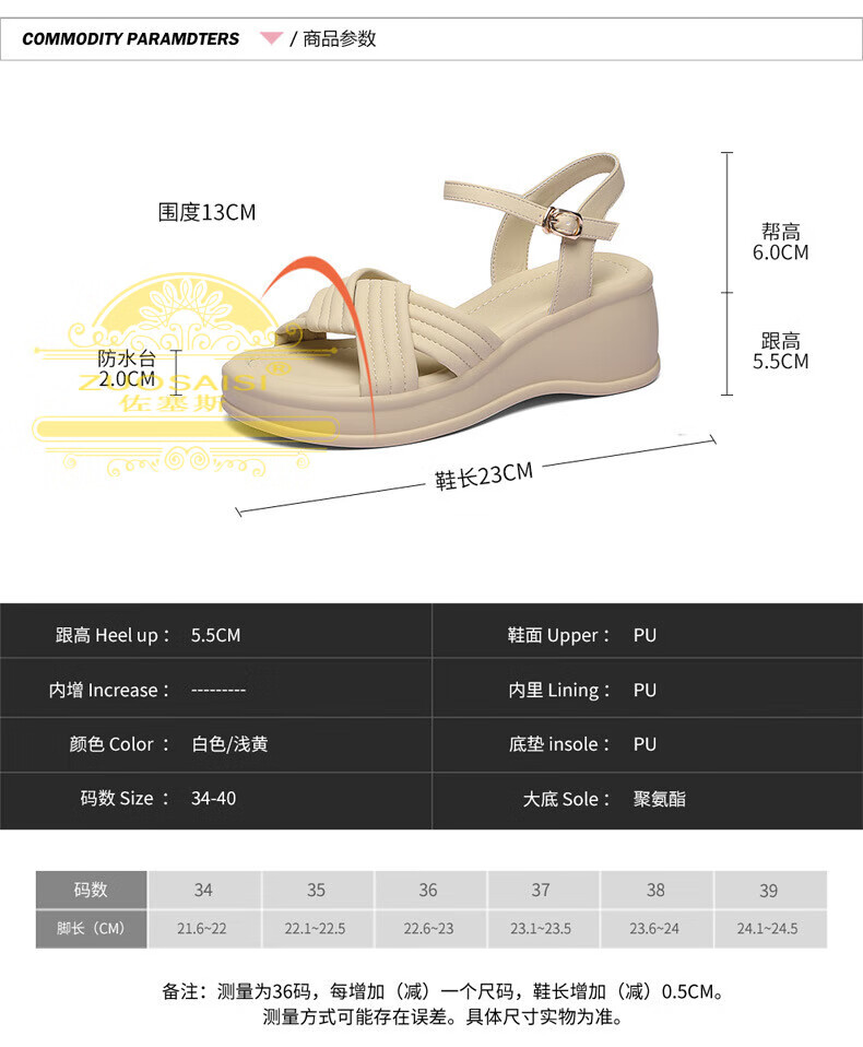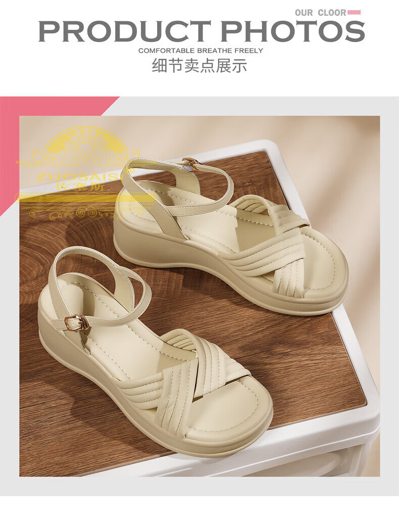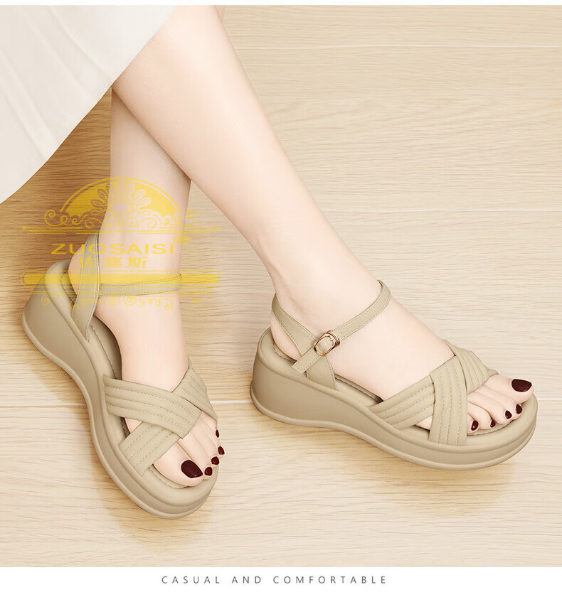 ZUOSAISI brand sandals for women, thick soles, medium heels, versatile, fashionable, soft soles, lightweight summer Roman wedge heel, strappy sandals for women, white 36