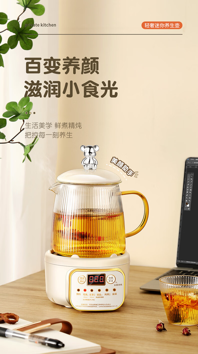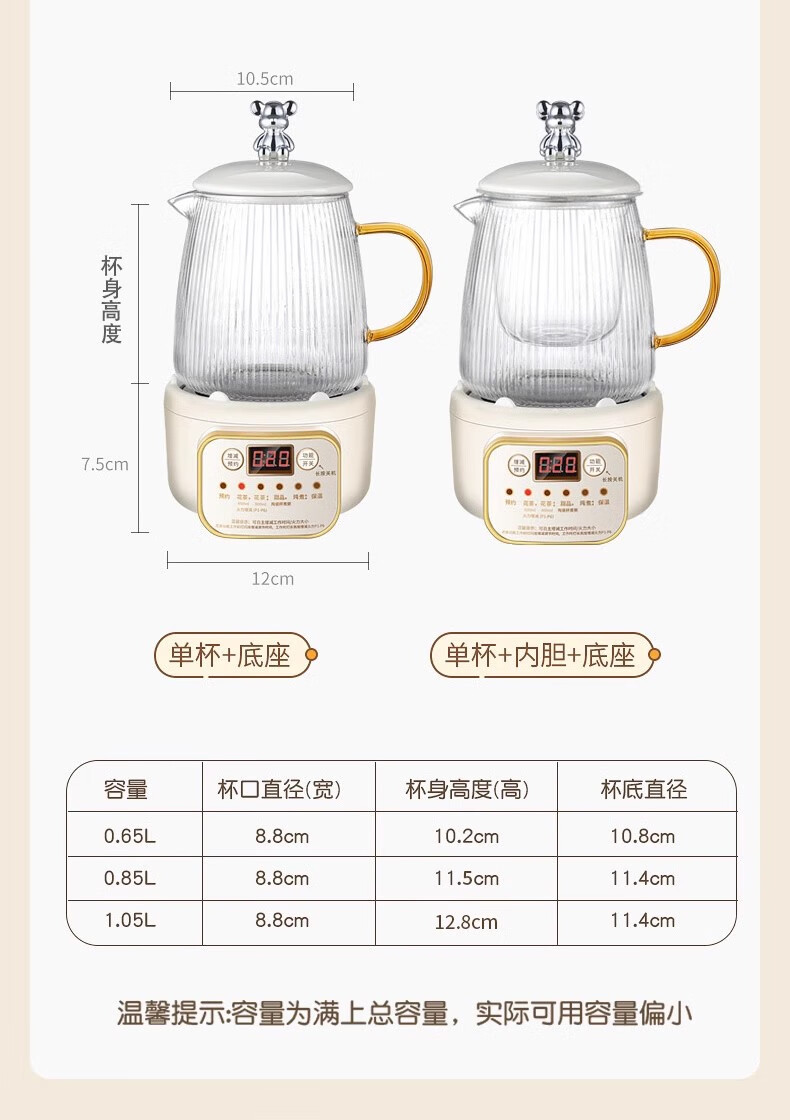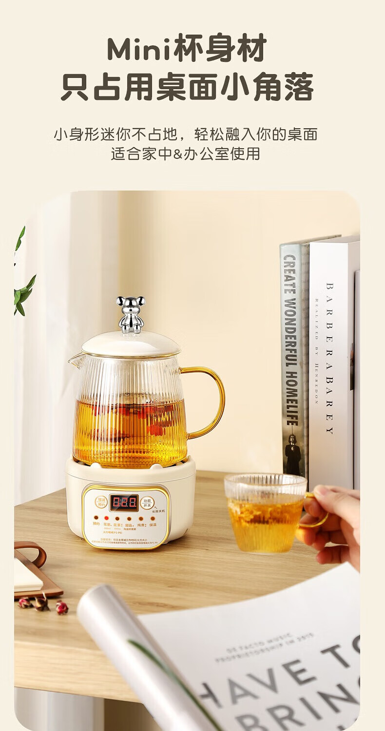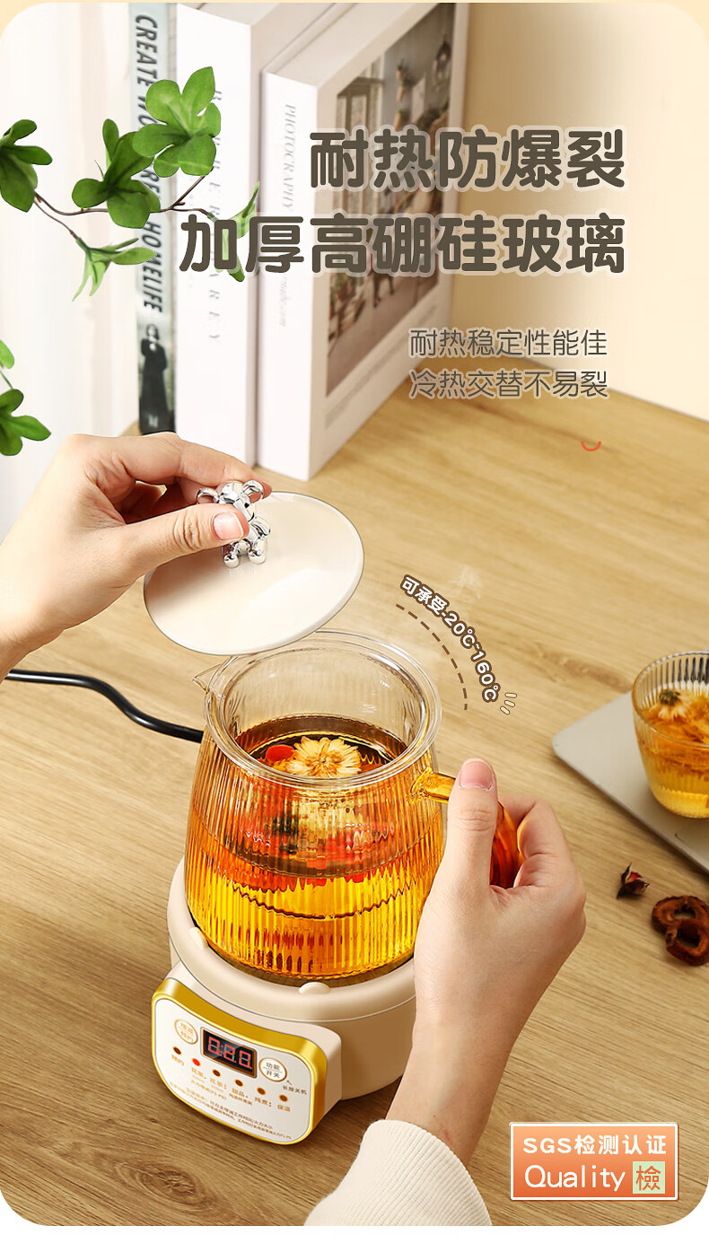 Good tool health pot full glass kettle multi-function teapot mini office teapot for one person filter separated insulation stewing pot health cup small tea flower teapot smart model 0.65L glass cup + glass tea drain