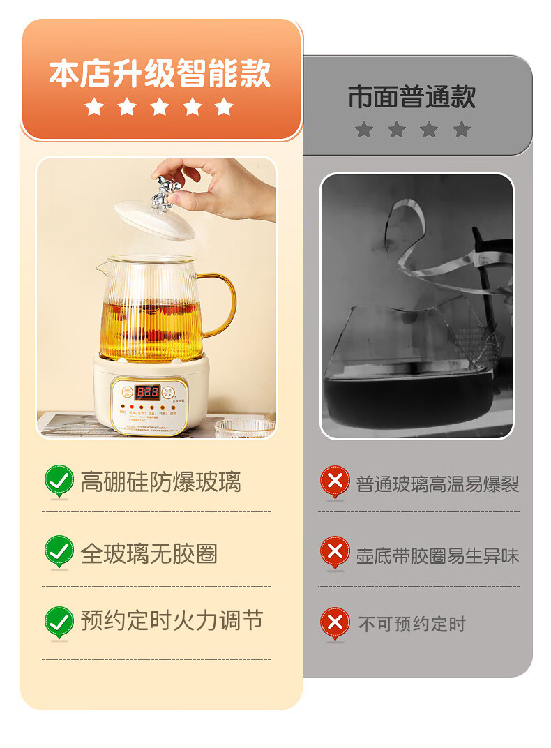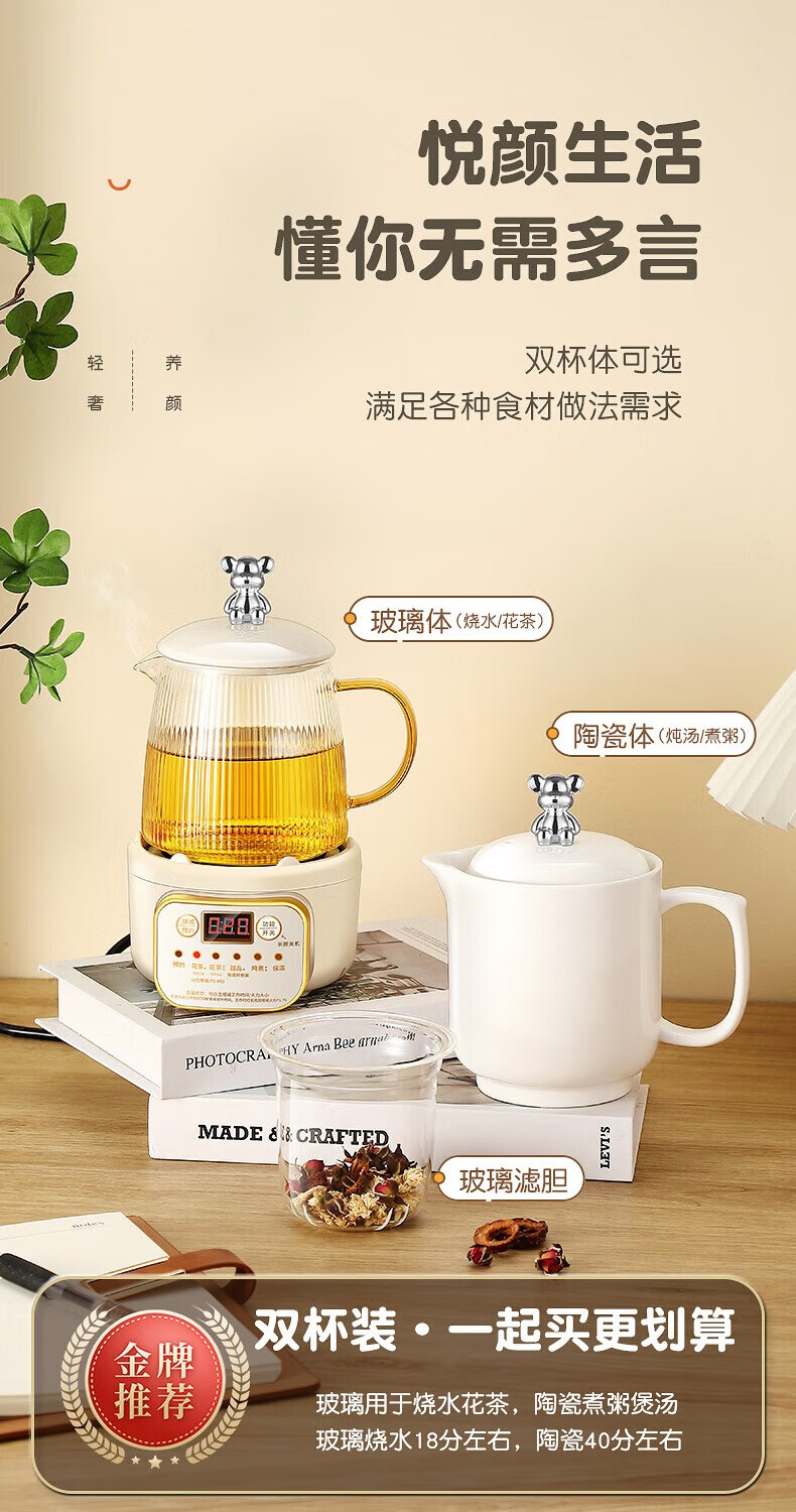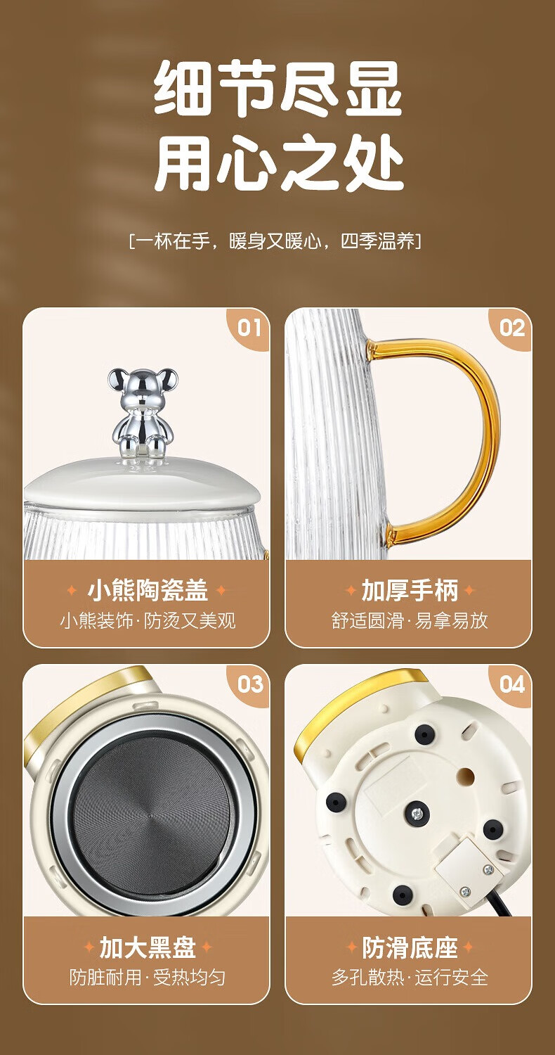 Good tool health pot full glass kettle multi-function teapot mini office teapot for one person filter separated insulation stewing pot health cup small tea flower teapot smart model 0.65L glass cup + glass tea drain