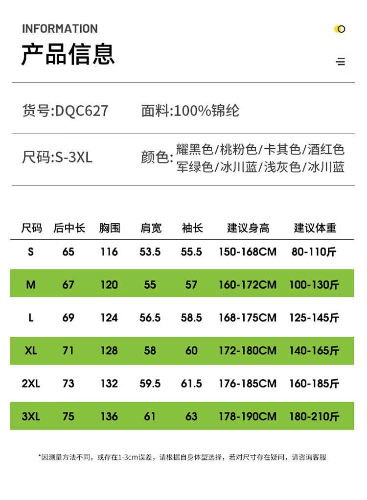 China (cm) 165 / 88-90 170 / 96-98 175 / 108-110 180 / 118-122 185 / 126-130