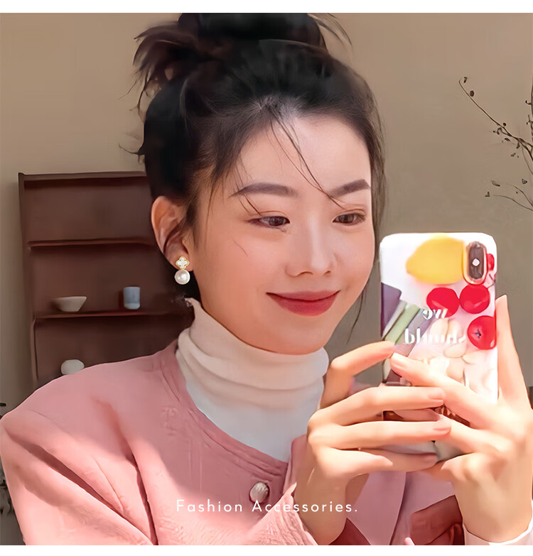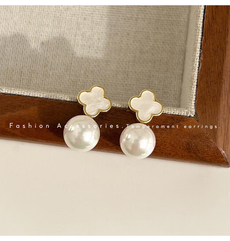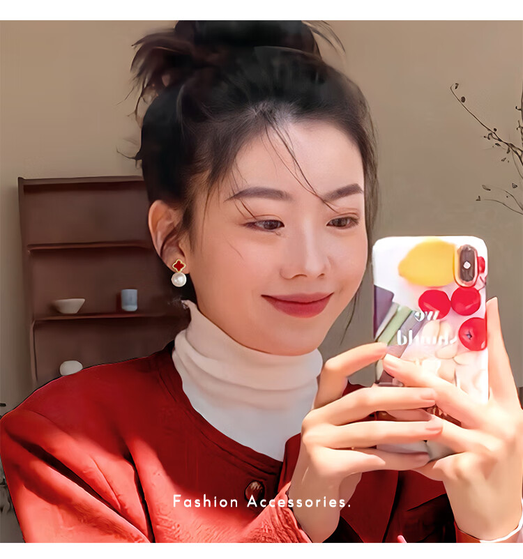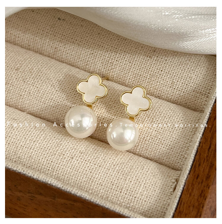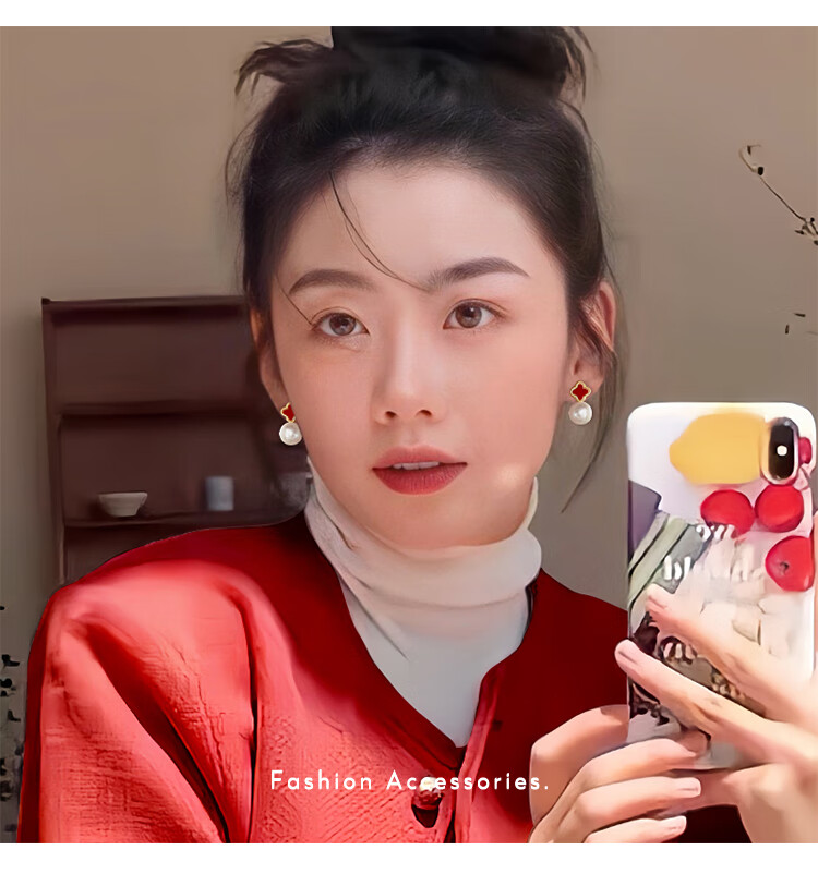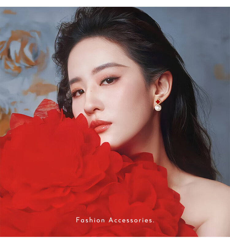 Flash engraved four-leaf clover earrings for women, light luxury niche earrings, new temperament French birthday gift, red four-leaf clover earrings s925 silver needle