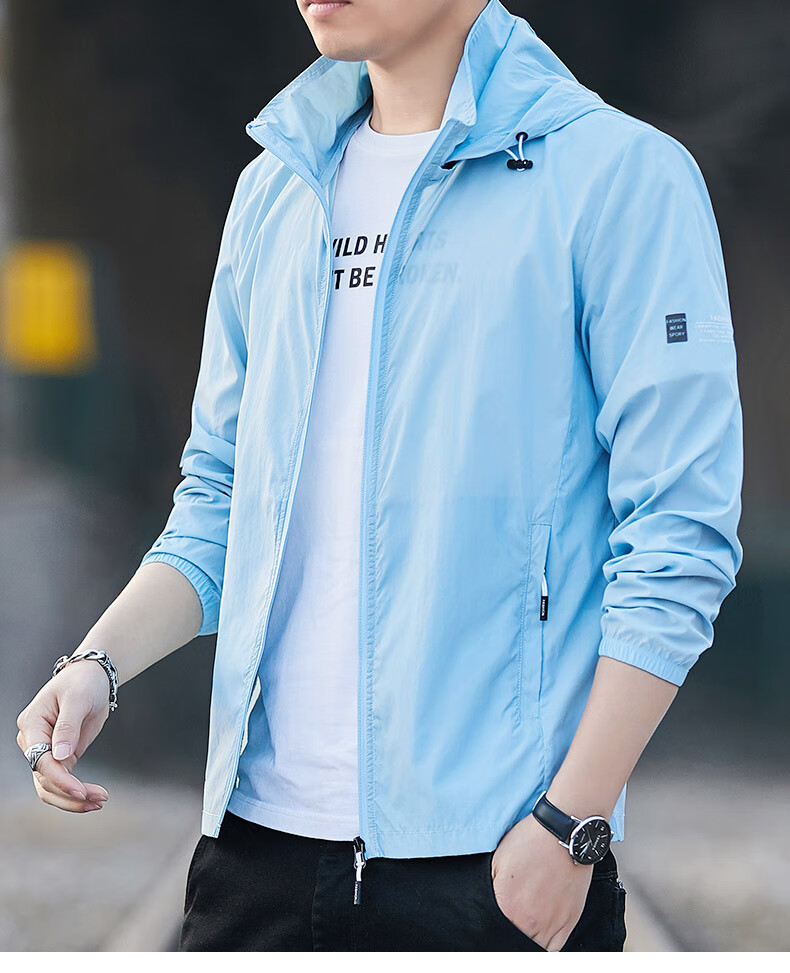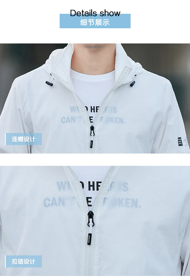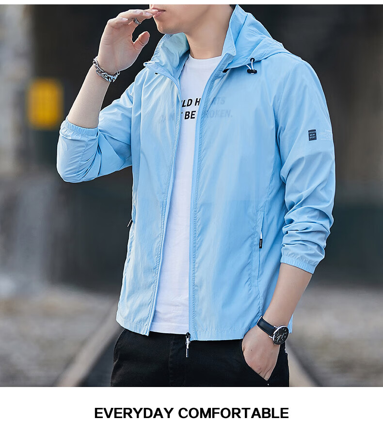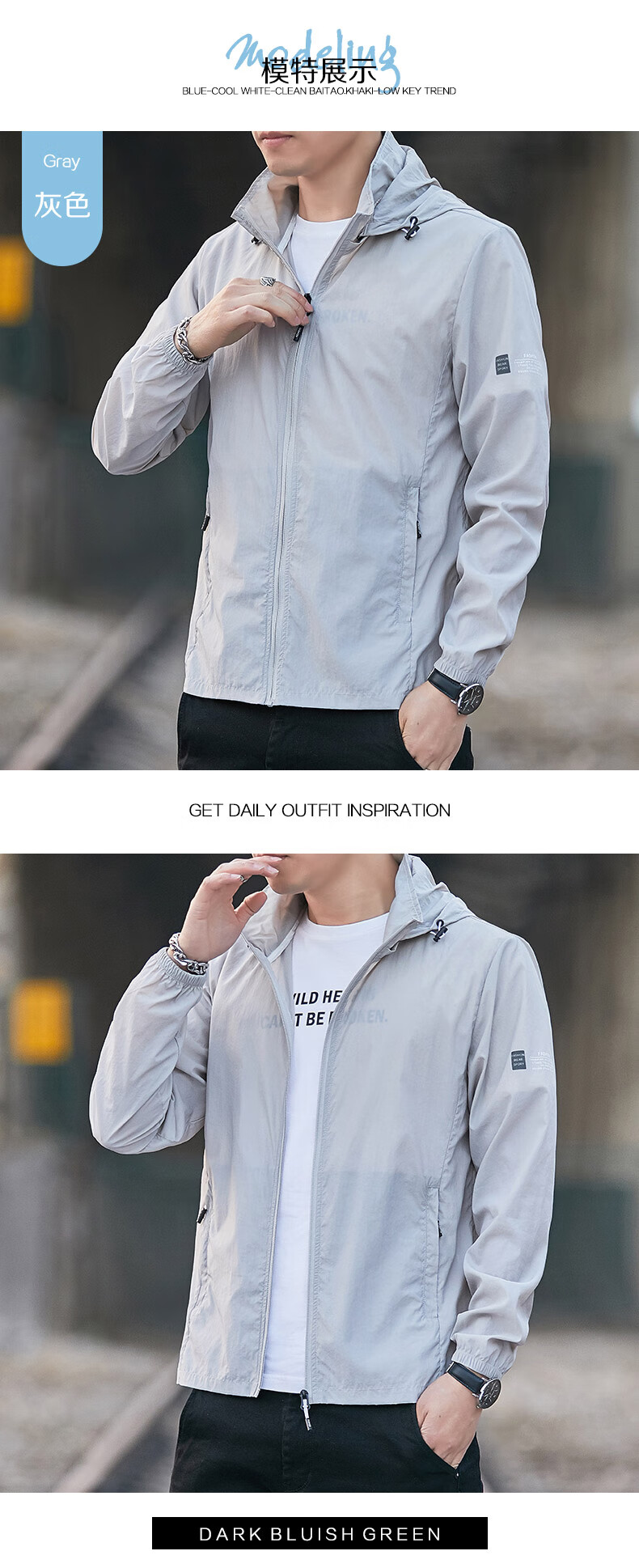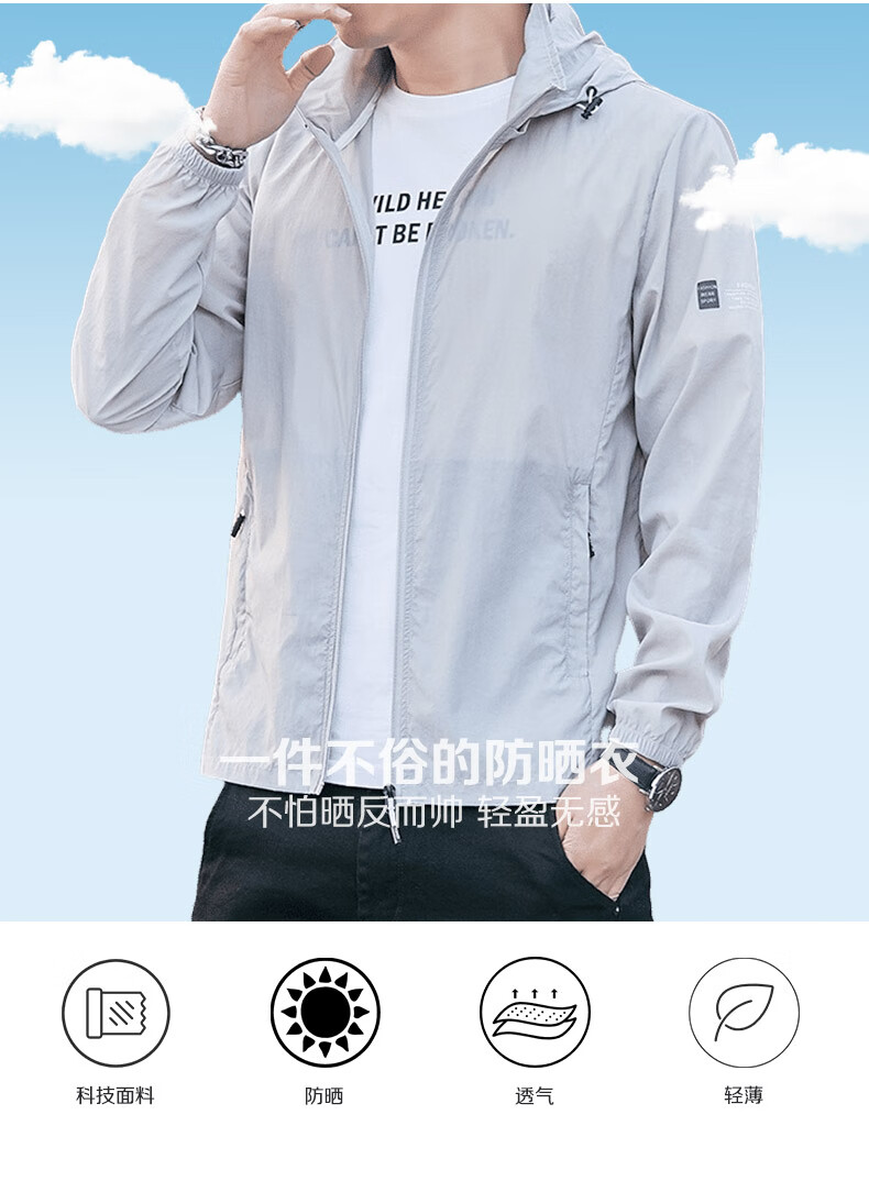 Jiaoxia Forest 2025 Summer New Sun Protection Clothes Men's Skin Clothing Breathable Ultra-Thin Hooded Jacket Men's Outdoor Sports Fishing Clothing 2297 Light Gray L
