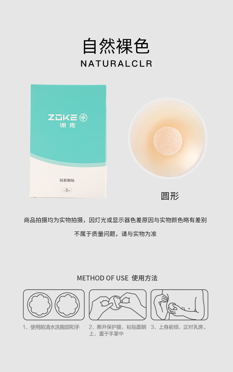 ZOKE swimming bra pads for racing swimsuits, waterproof zoke seamless breast pads, bikini push-up silicone breast pads, flesh color (5 pairs in a box), 6 cm in diameter, thin