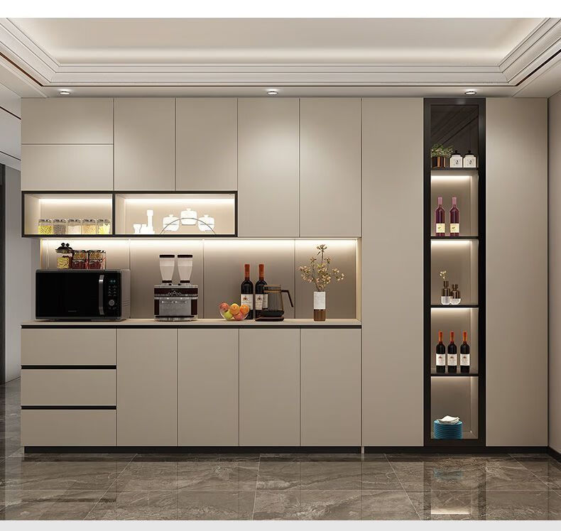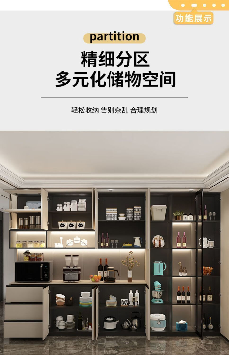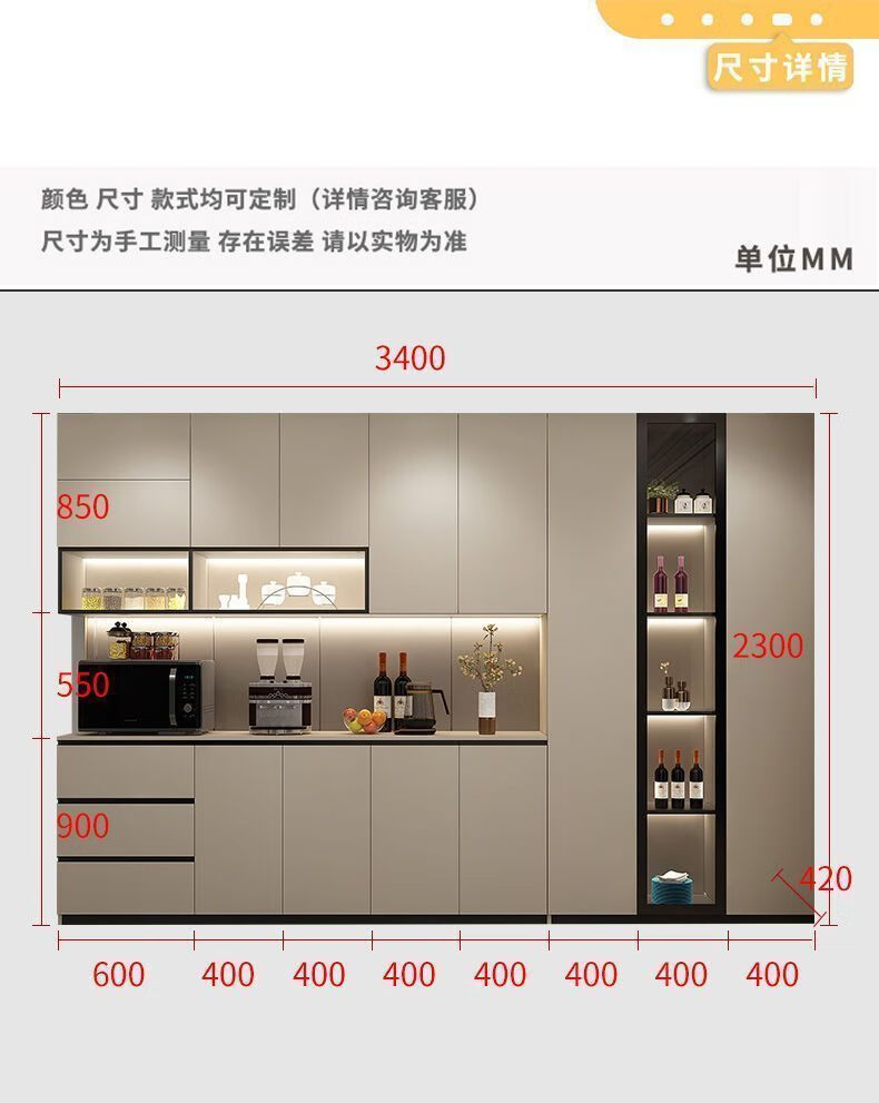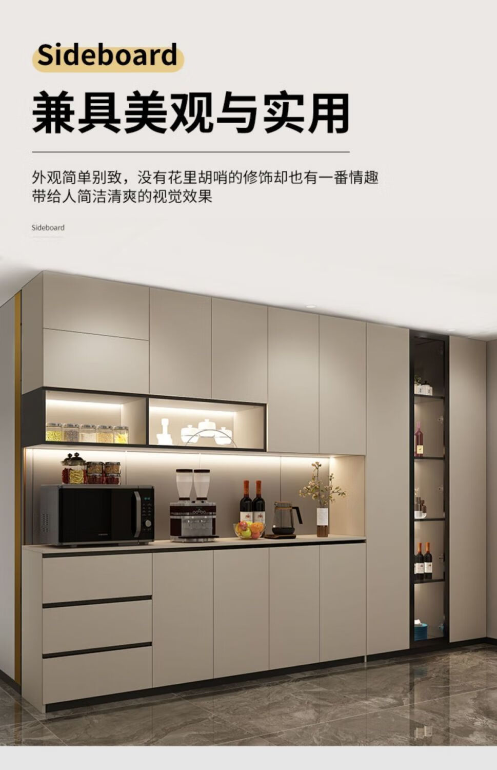 Mufenyun 2026 new style wine cabinet sideboard high-end all-in-one wall dining cabinet kitchen high cabinet cabinet multi-functional storage cabinet G type length 340 width 42 height 230 (with lights) (installation included)