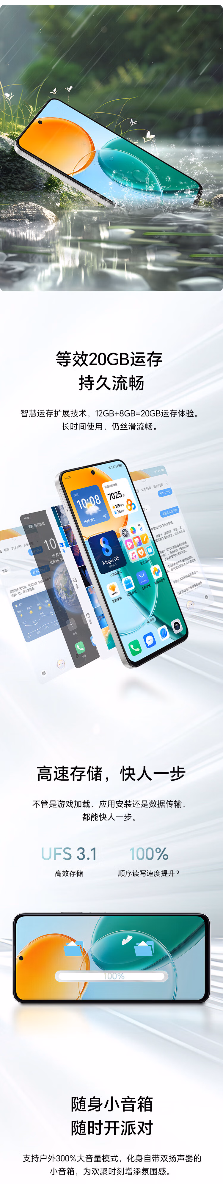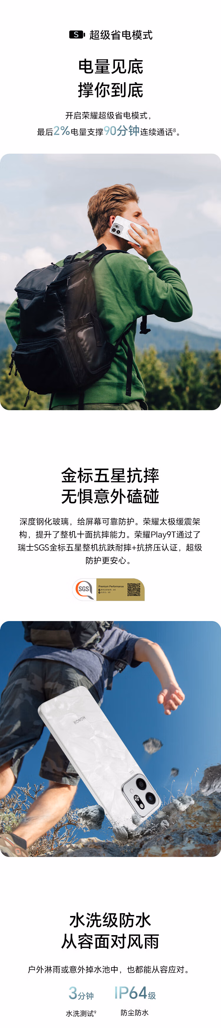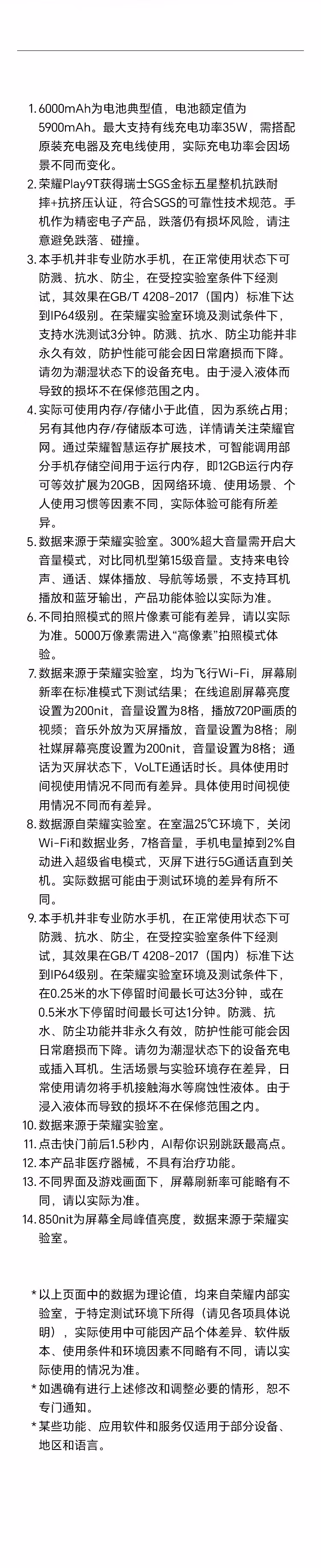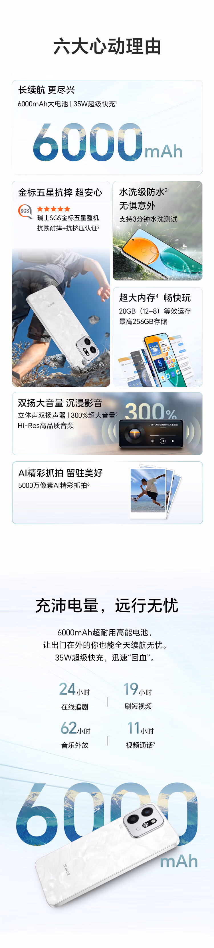 HONOR Play9T nuevo teléfono móvil 5G 6000mAh Batería grande ultraduradera 300% altavoz dual Alto volumen Teléfono inteligente 5G AI Moon Shadow White 8GB+256GB