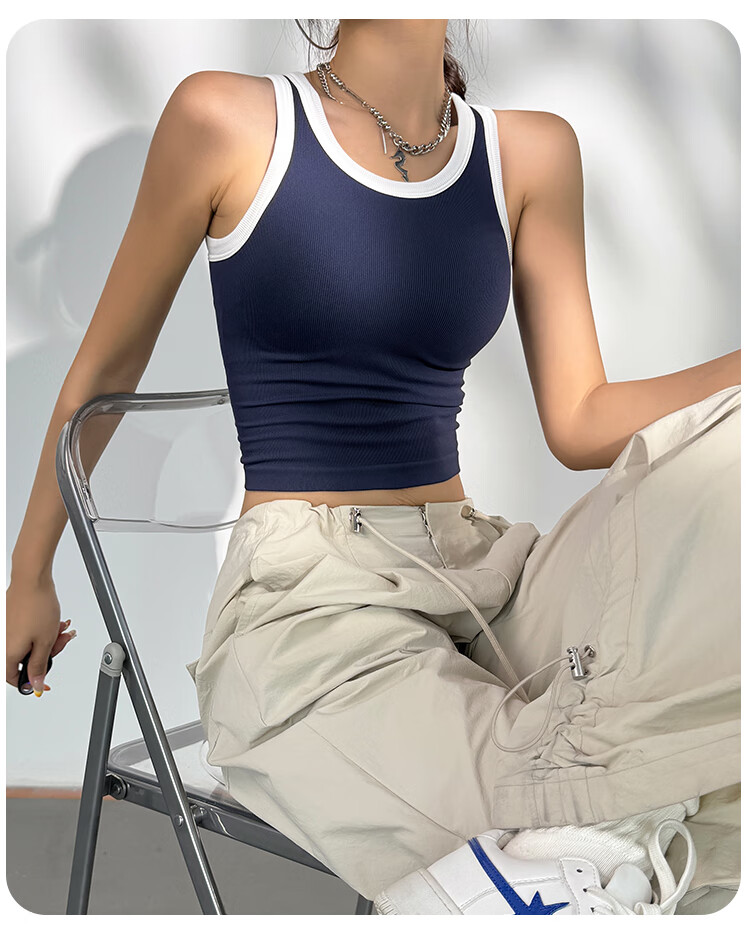 KEJIMITAO European and American ins sports bra all-in-one shockproof yoga vest new running training Pilates fitness bra Sky Blue L