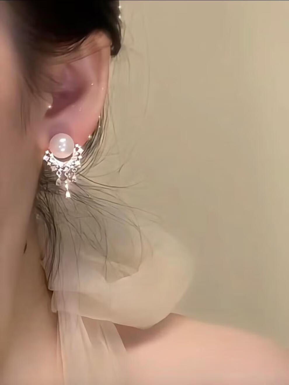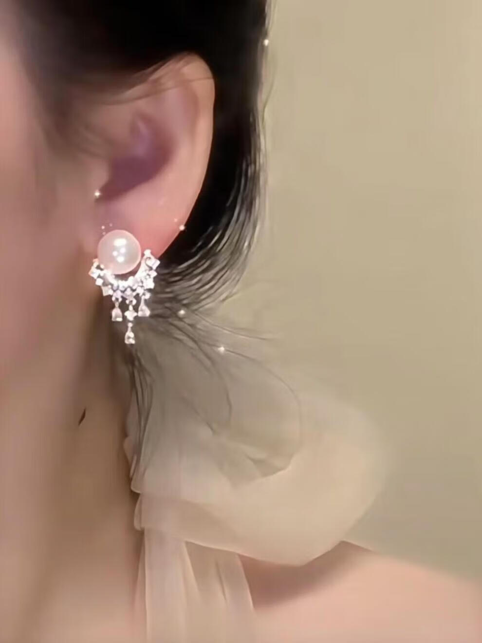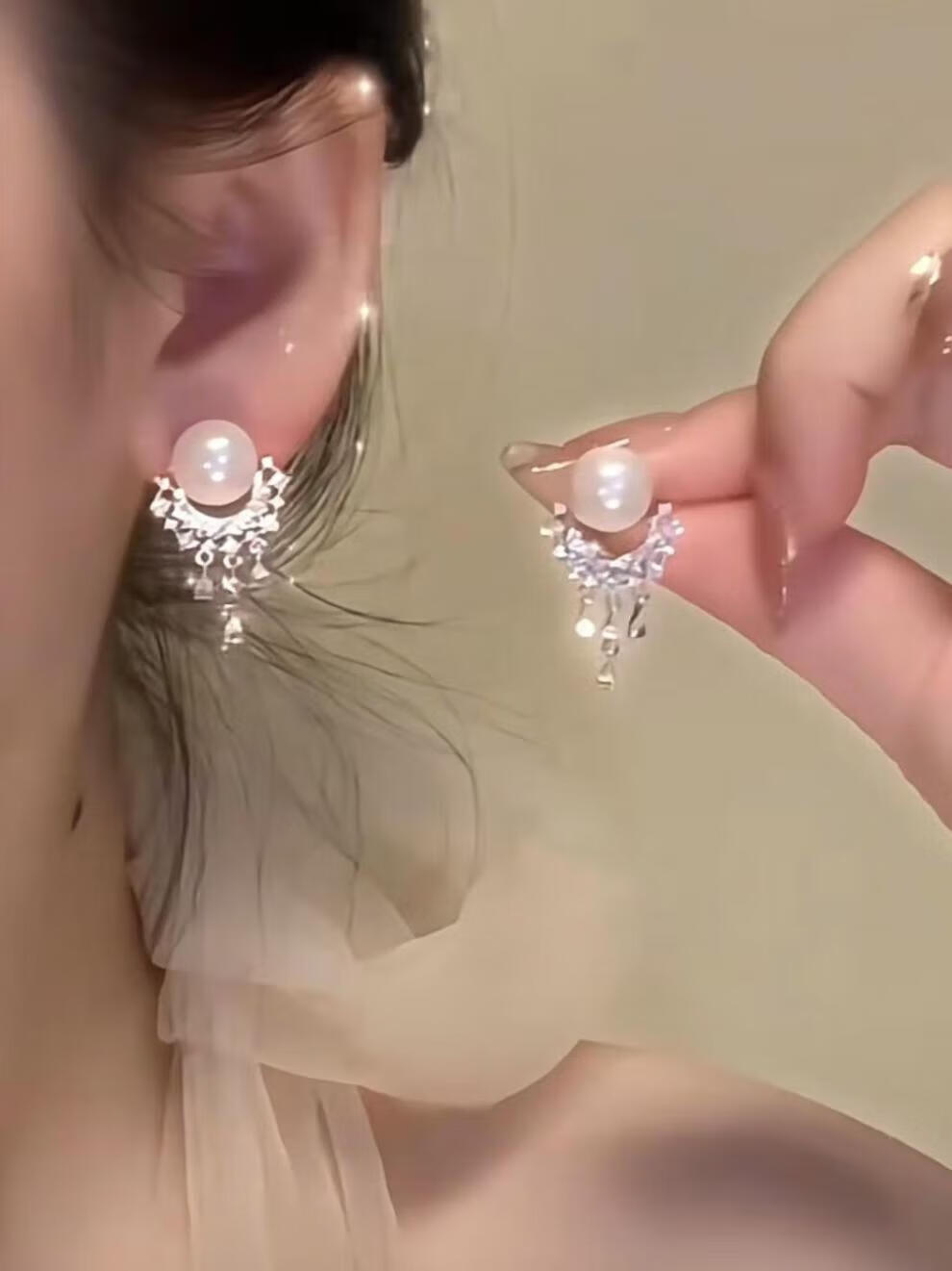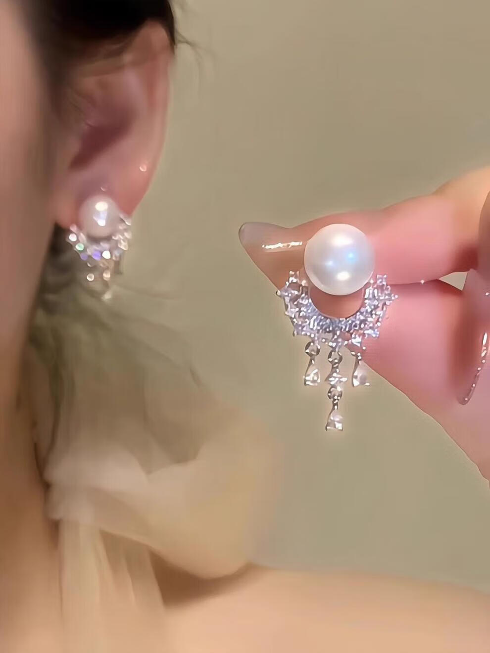 KZD999 sterling silver gentle rich girl pearl tassel earrings women light luxury temperament 2025 new pure silver earrings pearl tassel zircon earrings Lao Fengxiang