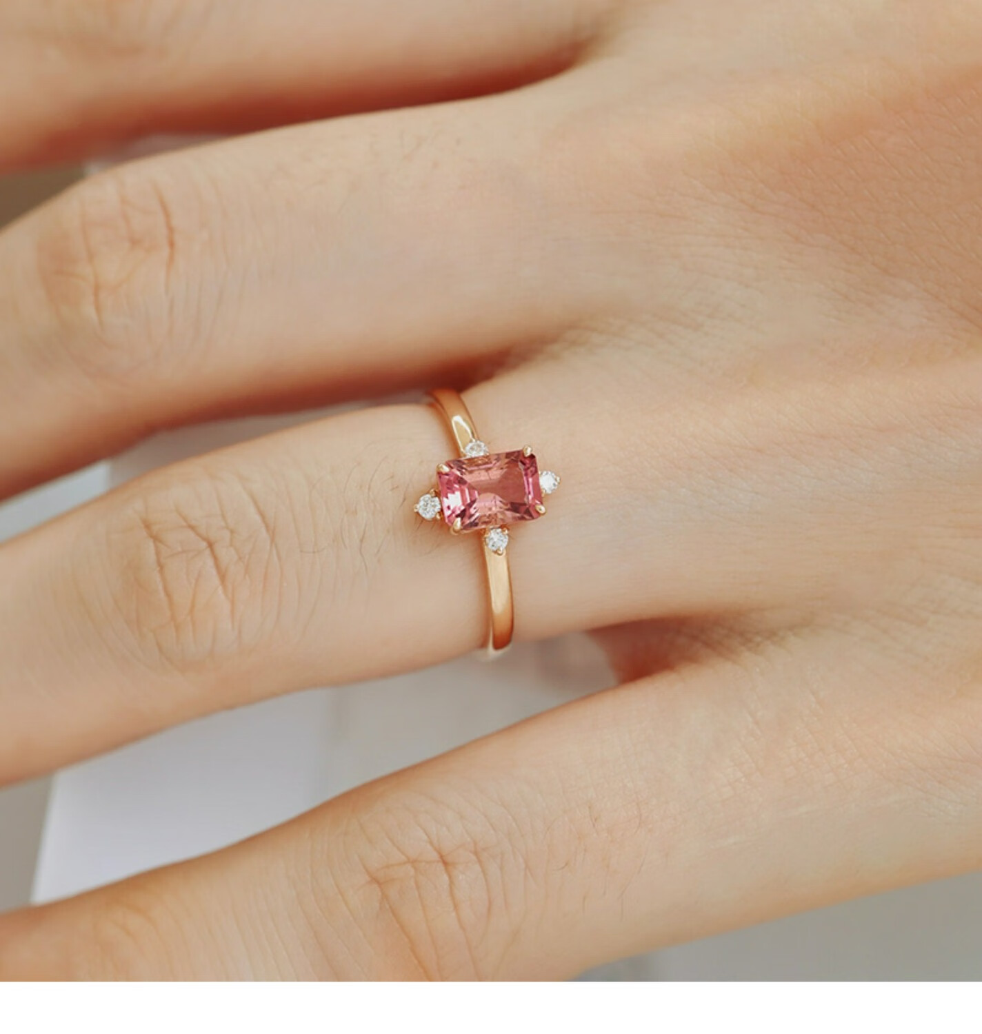 HEK 18K rose gold pink tourmaline ring small octagonal colored gemstone ring set with diamonds 18k gold