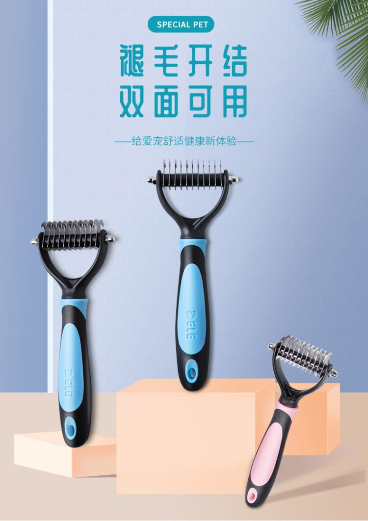 Dele dog comb Teddy Bichon Schnauzer Poodle Corgi hair knotted special shaver fluffy knotting artifact knotting rake comb blue-large size