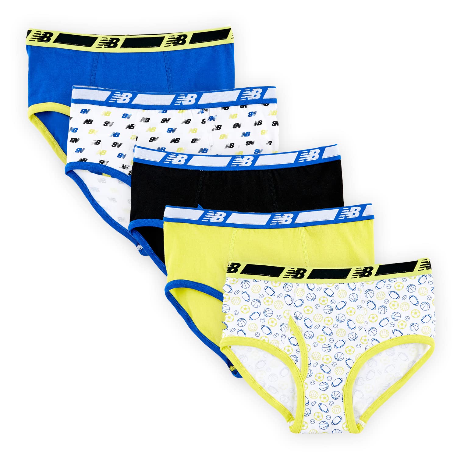 NEW BALANCE Boys' Soft Cotton Tagless Briefs (5-Pack) Royals/Shoe Red/Team Red/Stripes/White Large