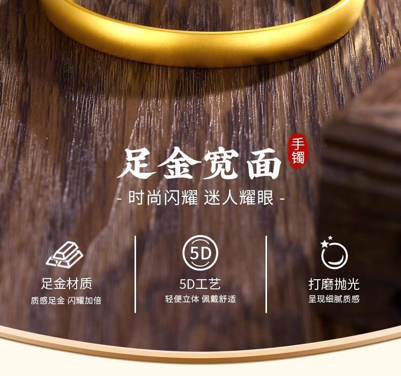 China Gold (CHINA GOLD) wide gold bracelet for women, loach back, pure gold bracelet, birthday gift for girlfriend and wife, gold weight about 9.7g, pure gold bracelet #56, bracelet ring
