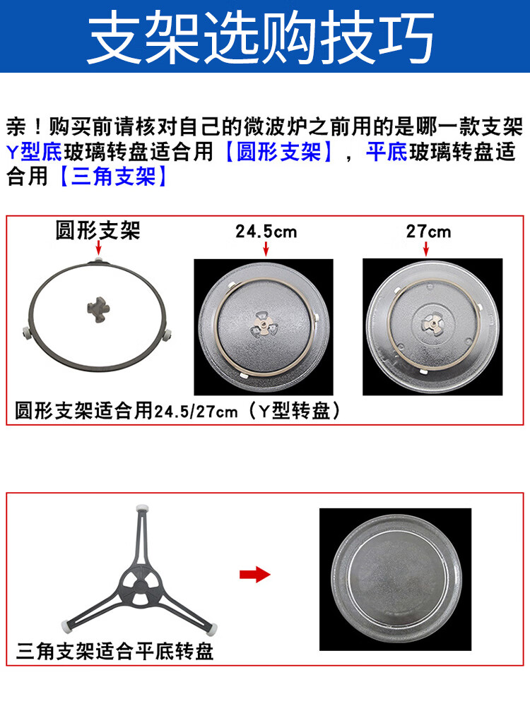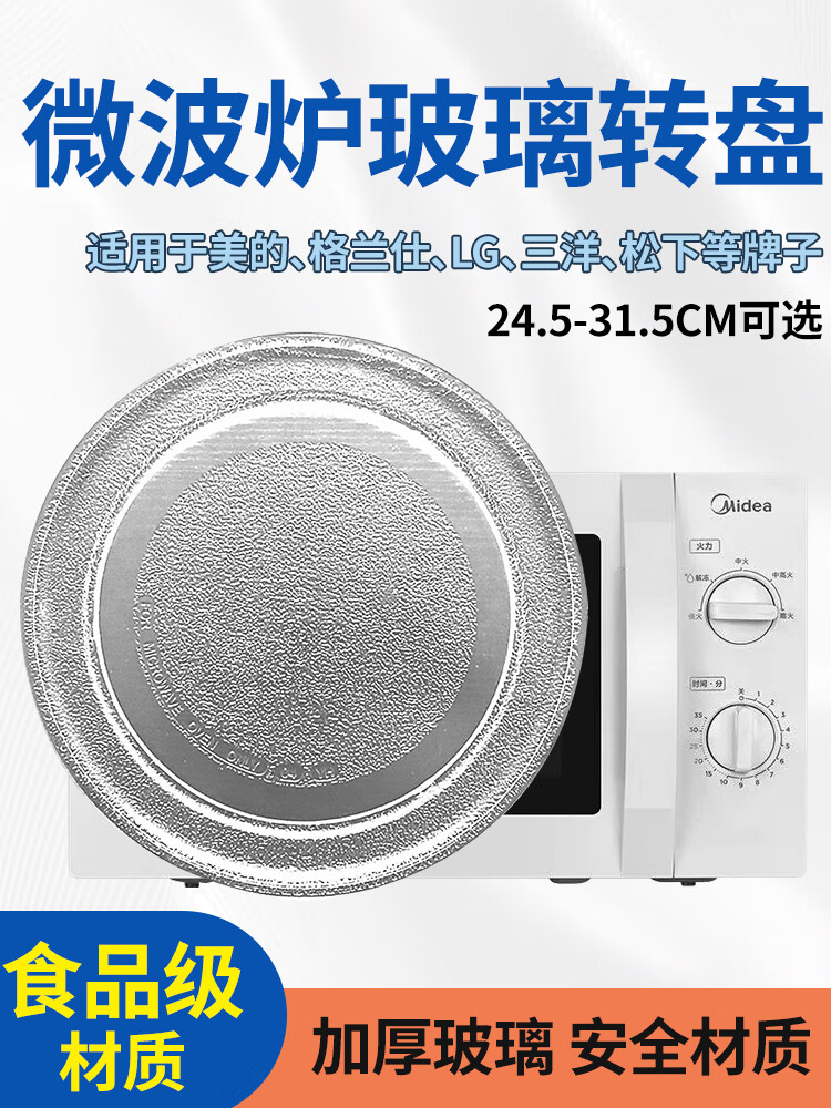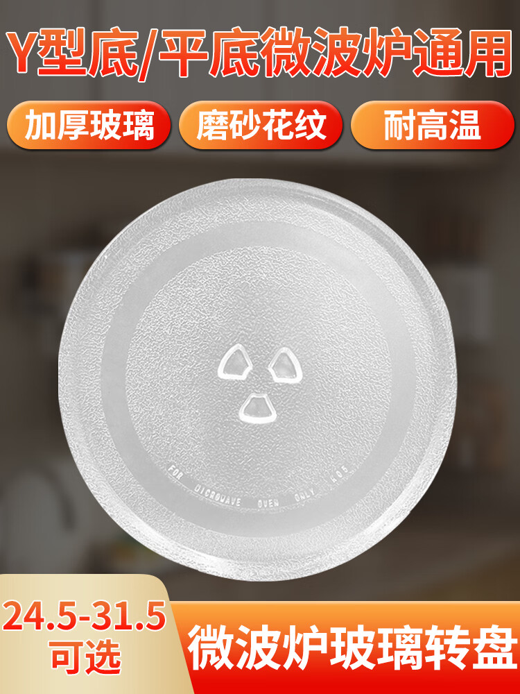 Microwave oven glass turntable suitable for Midea Galanz Panasonic bracket m1-l213b flat bottom heat-resistant 24.5CMY bottom special tray round 25.5CM heating plate universal 24.5cm Y bottom (high quality thickening)