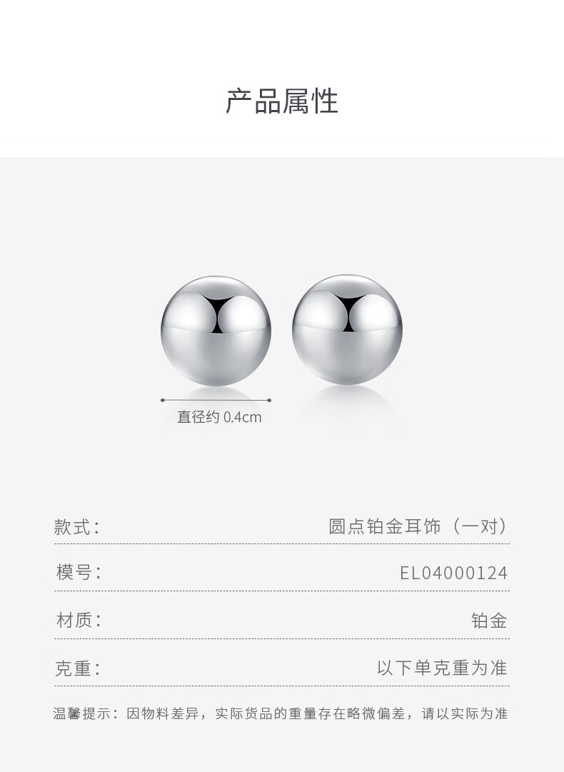 3DG Jewelery platinum pt950 simple round bead earrings as a gift for your girlfriend. Priced by the gram: 1.09 grams (93 yuan including labor costs)