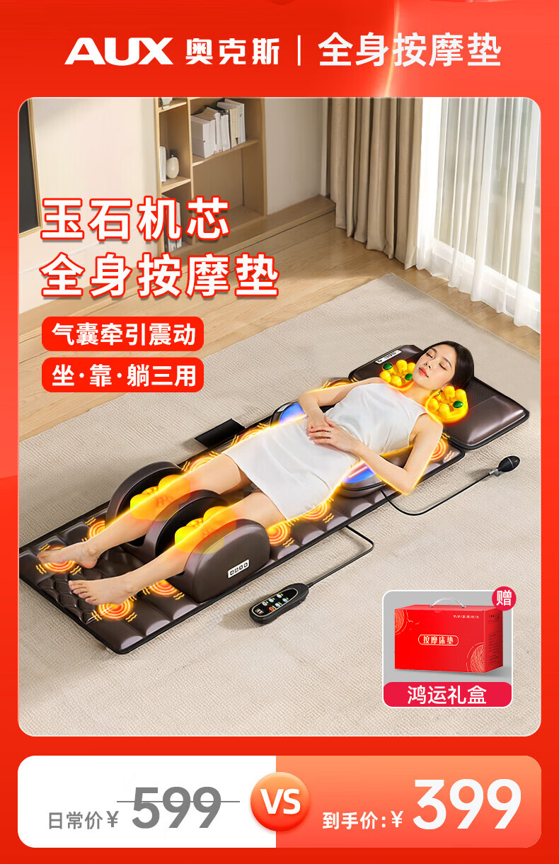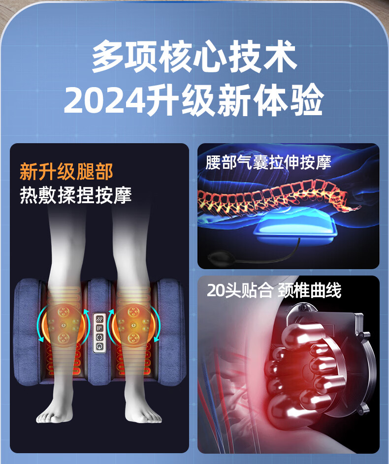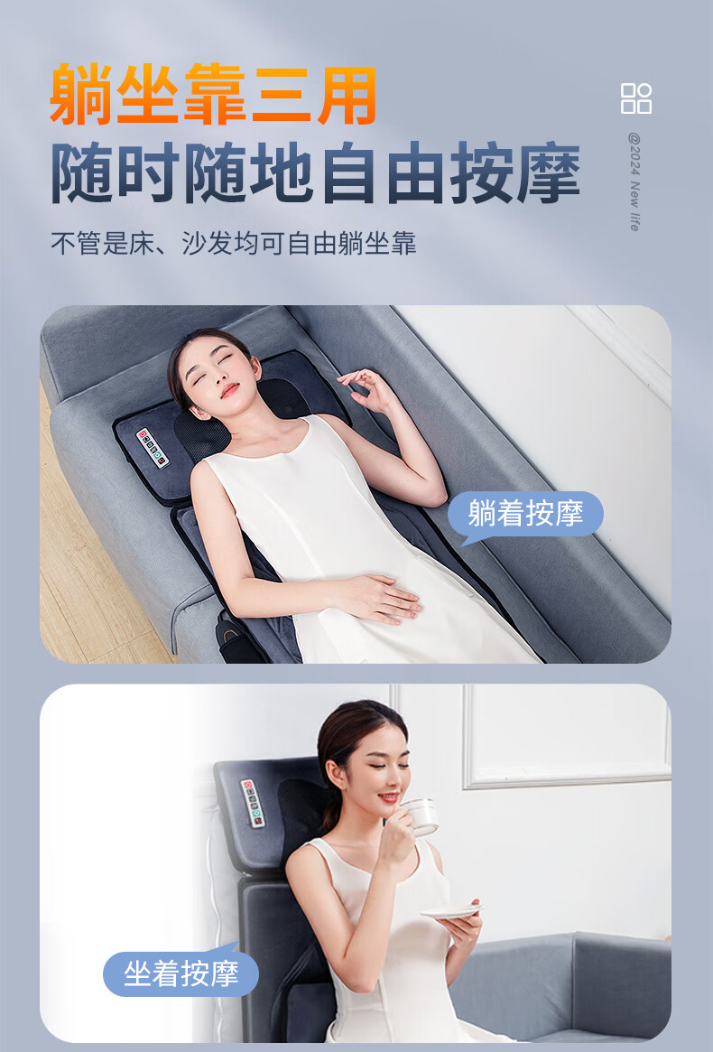 AUX massage cushion, full body lying cushion, cervical vertebra massager, shoulder, neck, waist and back, multifunctional home massage chair, portable birthday and New Year gift for parents and elders of boys and girls, Zunyao leather, upgraded jade movement + electric lumbar support + double Tai Chi roller