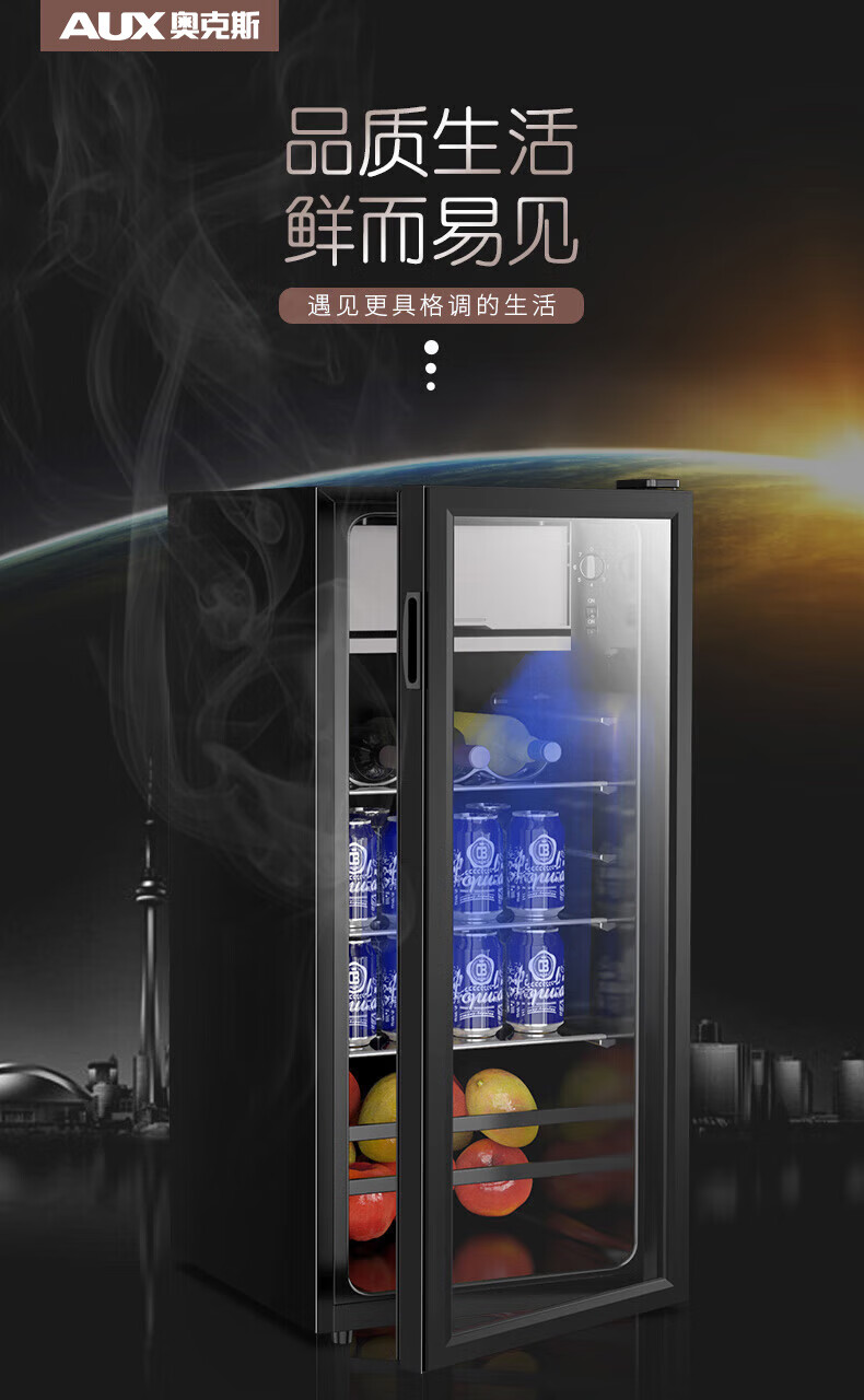 Oaks Ice Bar Refrigerator Constant Temperature Display Cabinet Hotel Household Transparent Glass Refrigerator Small Mini Single Door Office Red Wine Cabinet Tea Beverage Refrigerator 58 Upgraded Full Refrigeration + White Light + Wine Rack 32L