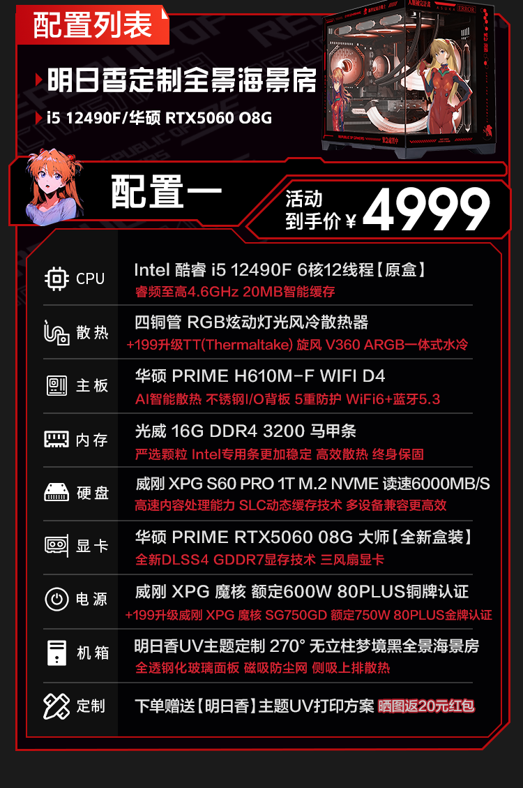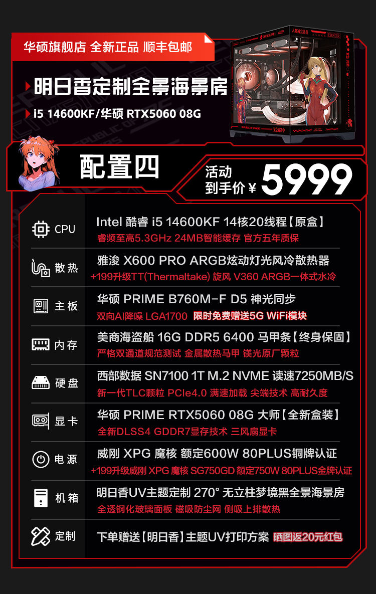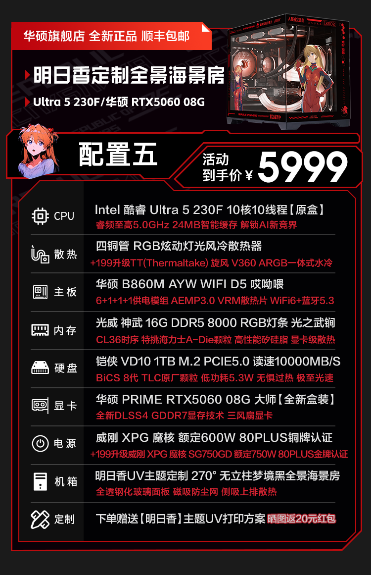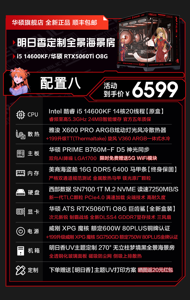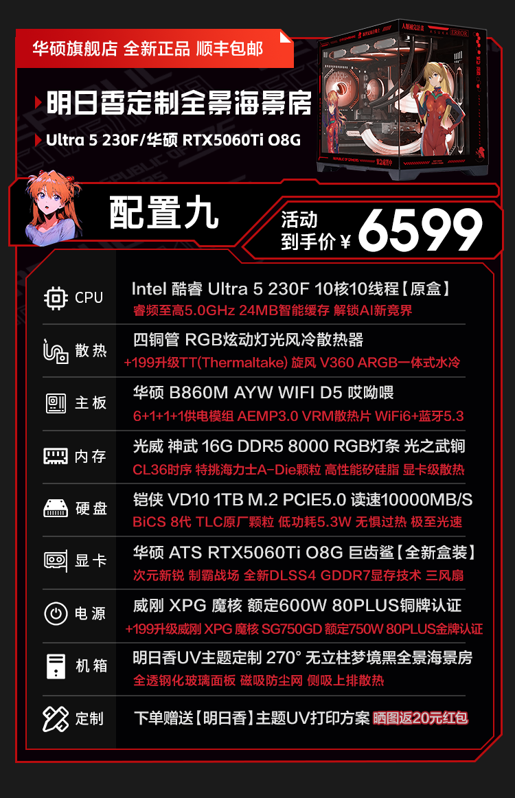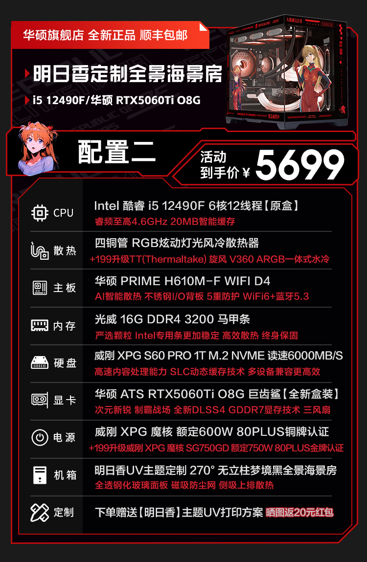 ASUS RTX5060ti/5060 graphics card 14600KF/245KF/230F assembled computer 3D e-sports game console DIY desktop complete machine Asuka customized chassis sea view room i5 12490F+ASUS RTX5060Ti configuration two