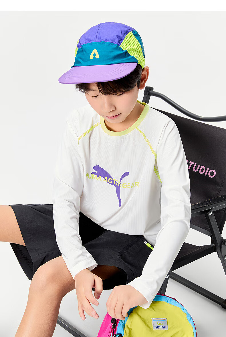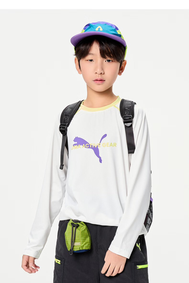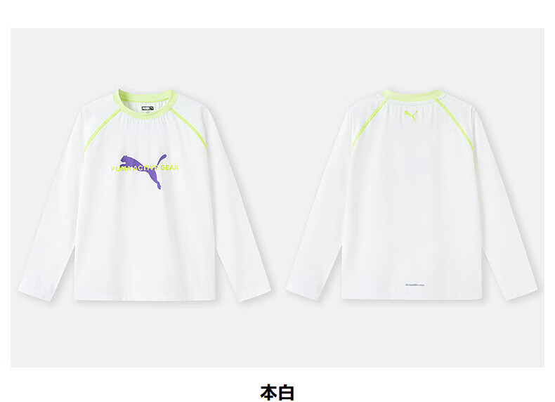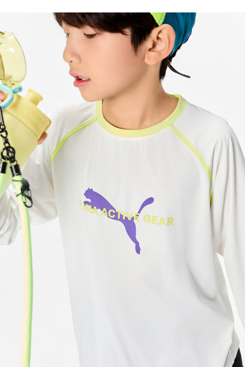 PUMA official authentic new children's summer long-sleeved T-shirt moisture-absorbent, quick-drying, breathable and comfortable, original white 10101 110